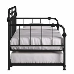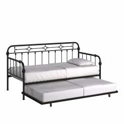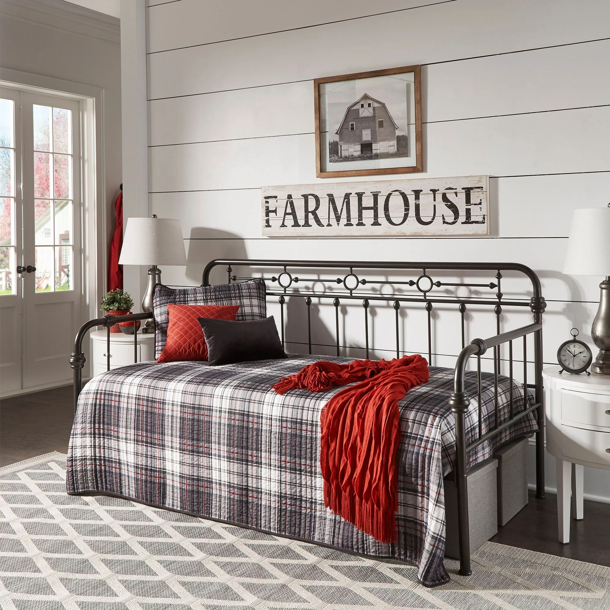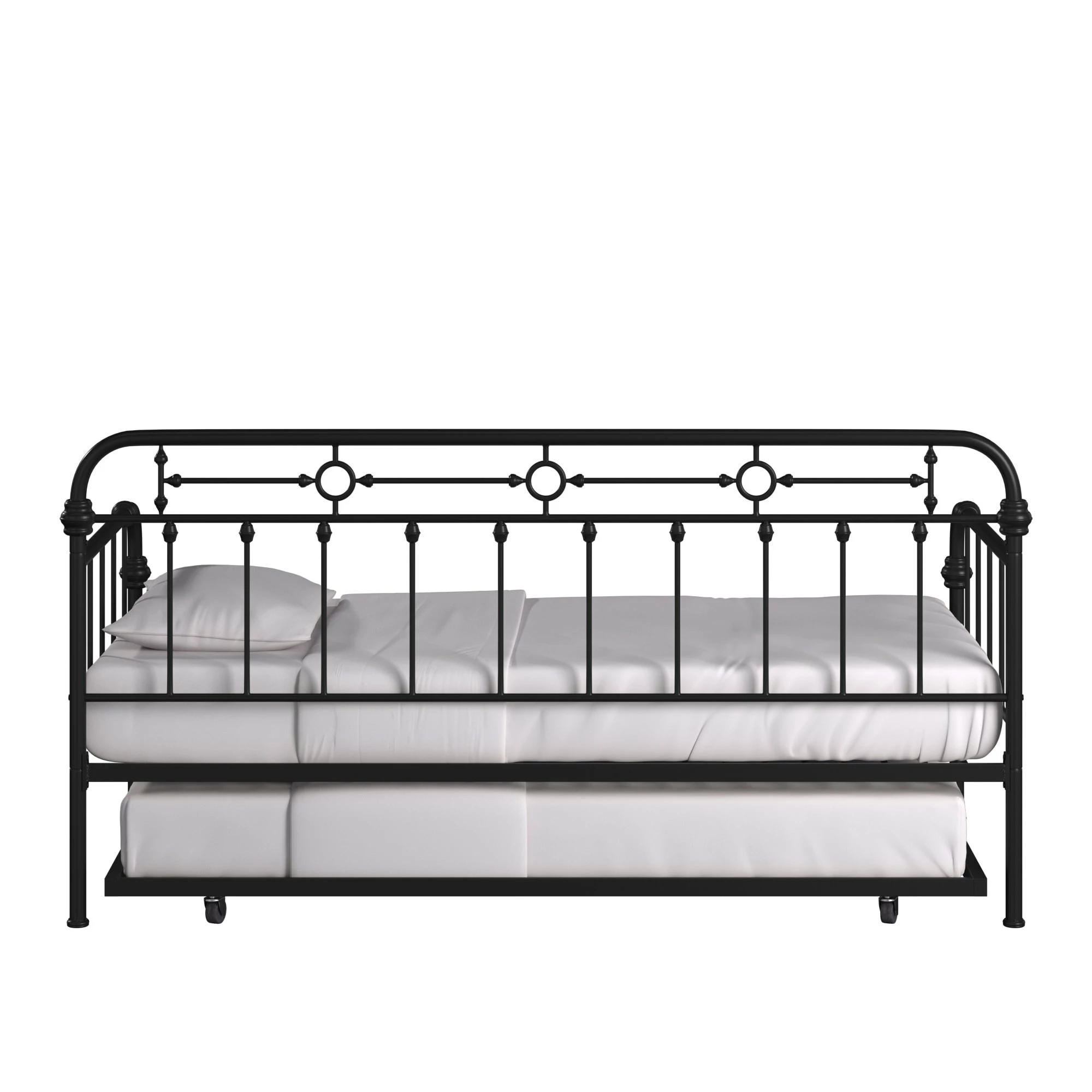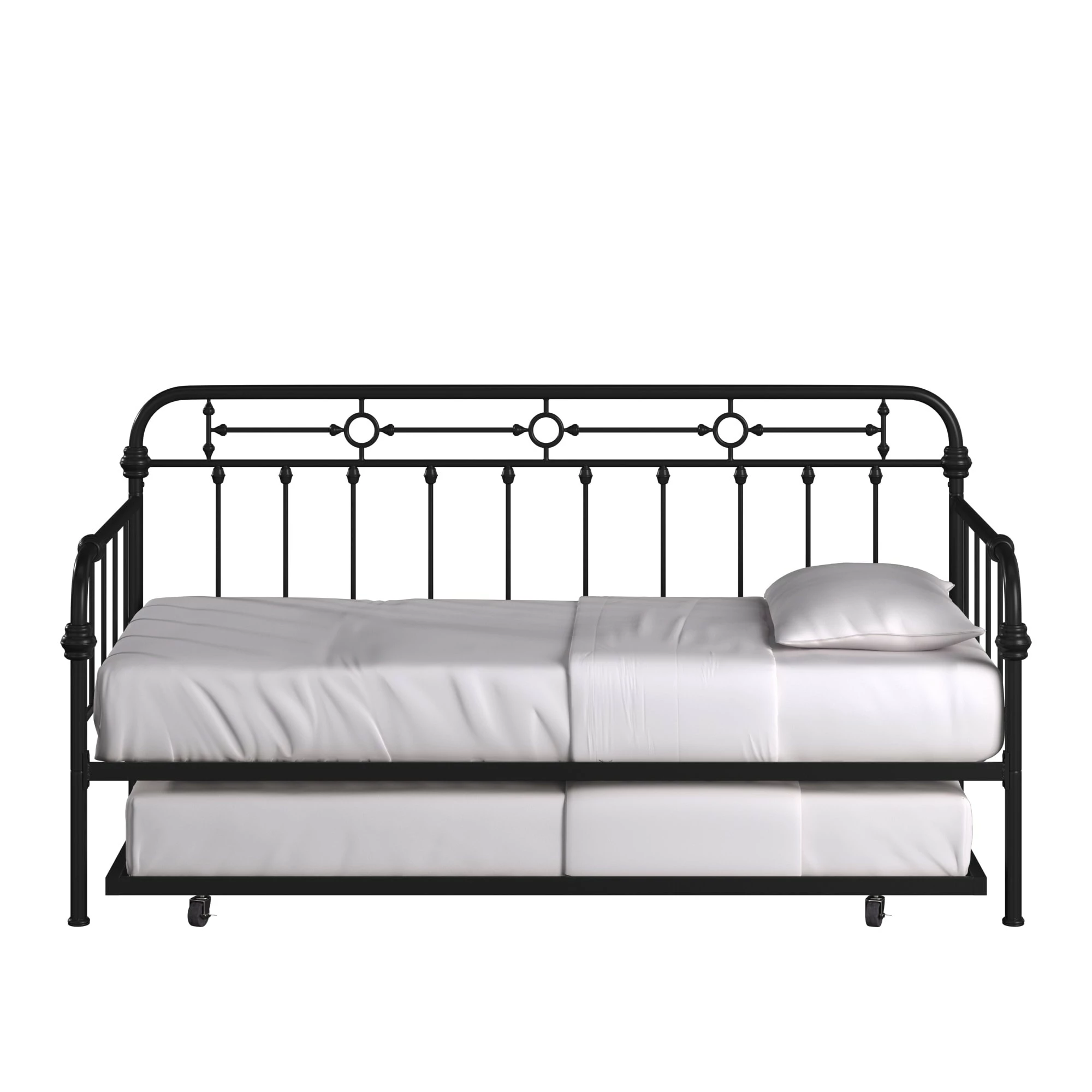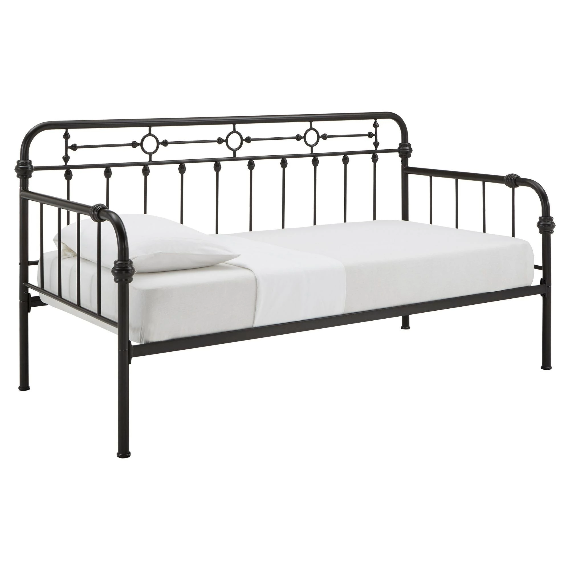 Providing your home with the perfect spot for a midday snooze, the Darren antique bronze metal daybed is both styled and multifunctional. This beds frame features classic curves and spindle detailing, while decorative metal accenting adds to the piece’s traditional charm. This daybed’s open and inviting design provides your living room with a place to lounge throughout the day and a spot to sleep at night. The antique dark bronze color pairs perfectly with a farmhouse styled space.