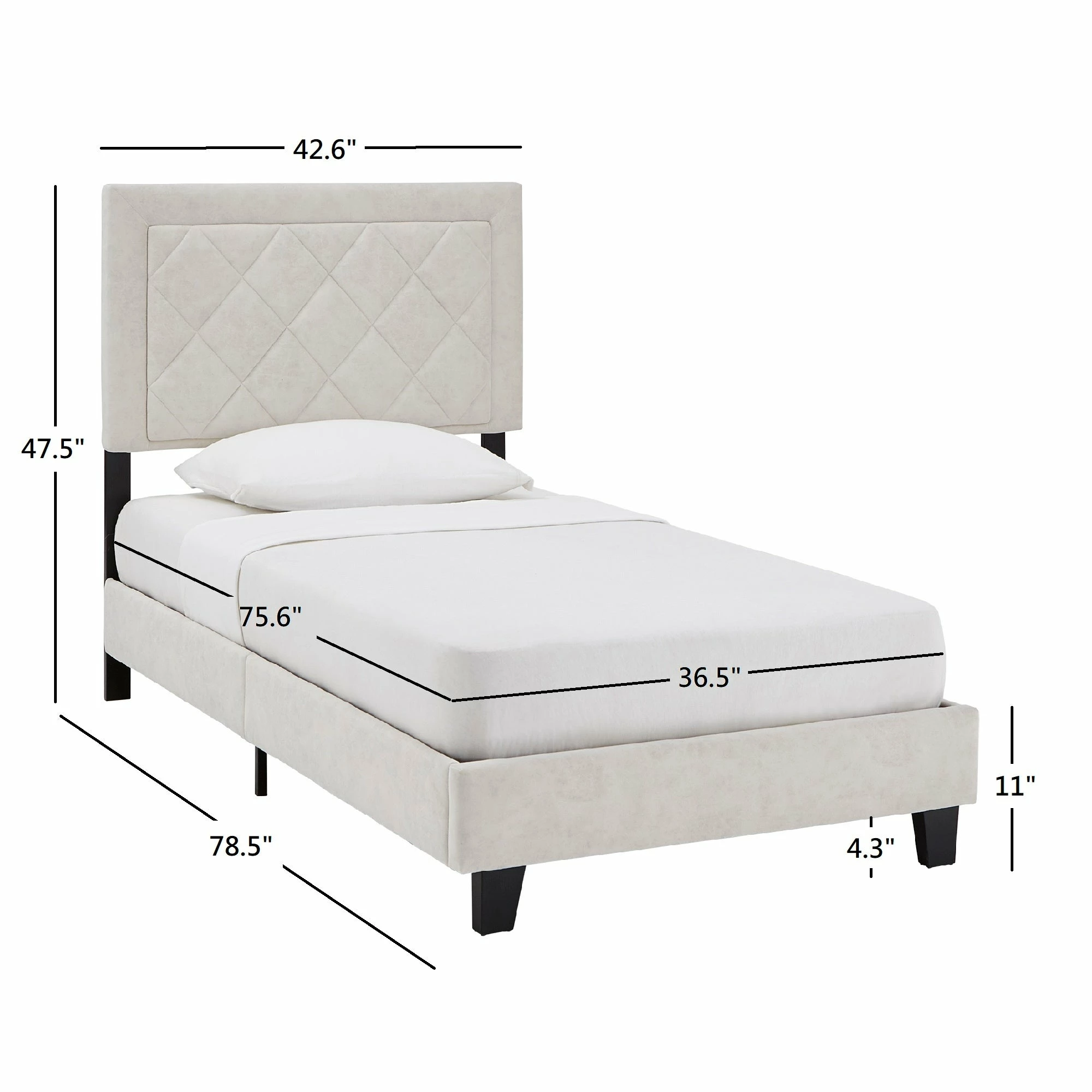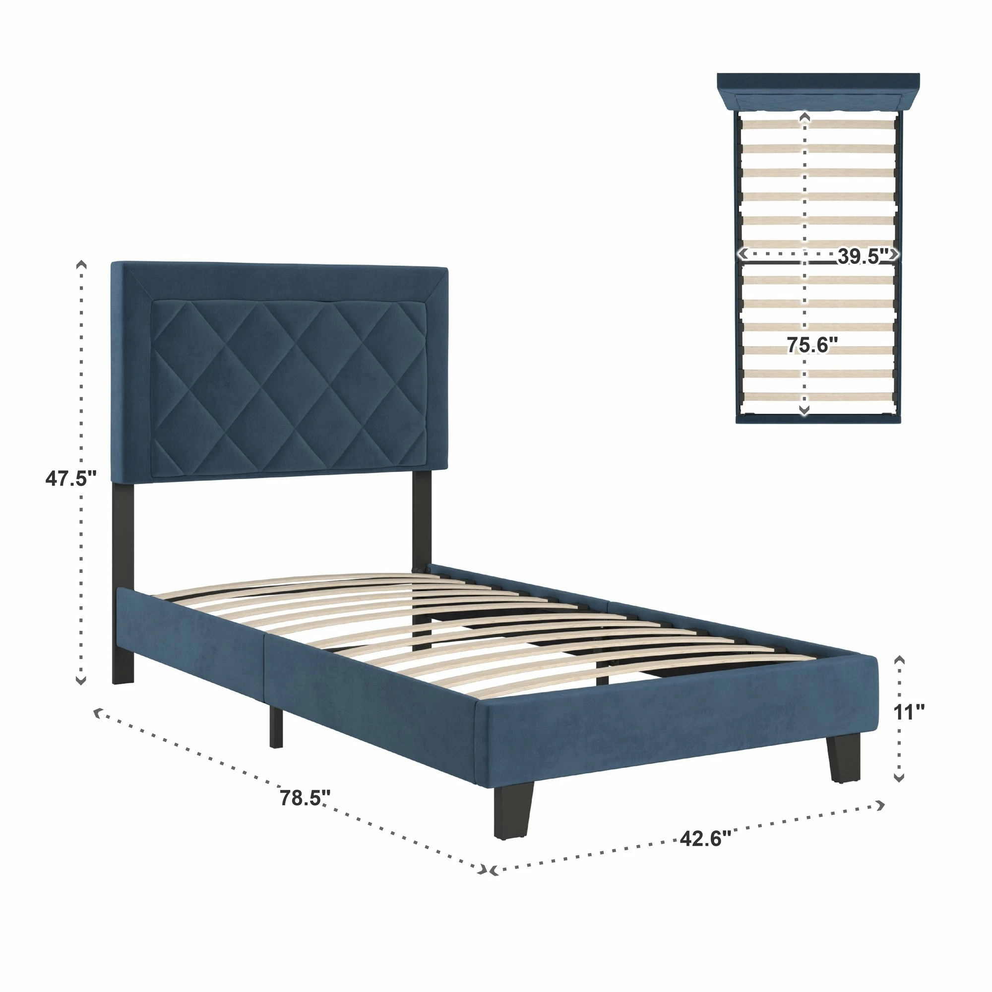 - Headboard dimensions: 47.5 in. height