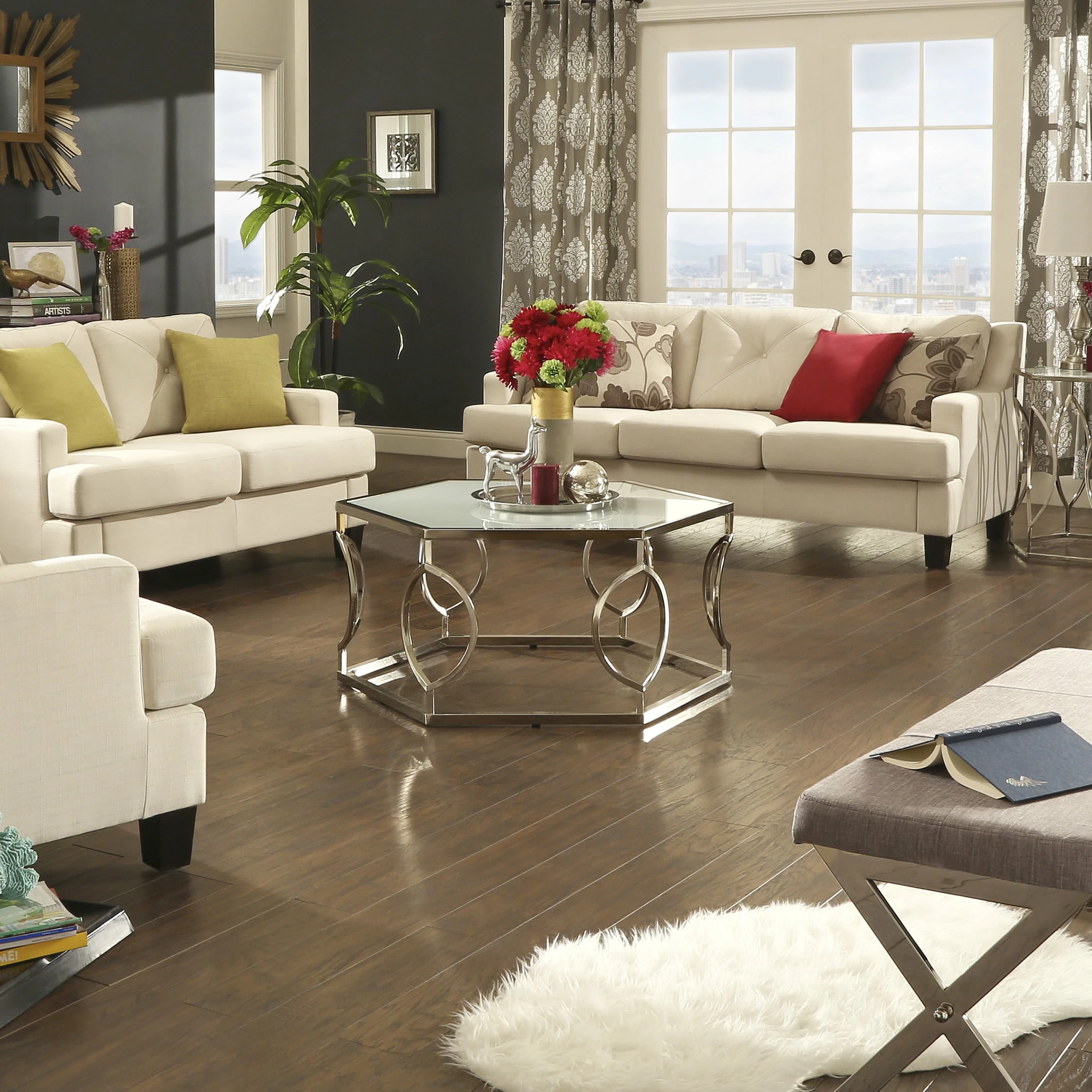 Featuring a polished chrome frame and a frosted-glass top, the Davlin cocktail table from iNSPIRE Q® Bold enhances your living space with its sophistication. The wave-shaped base of the accent table translates into sturdiness. The Davlin Cocktail Table from iNSPIRE Q® Bold is designed for modern living. It features clean lines as well as a simple, elegant touch. With an open design, the contemporary table displays an inviting look which makes it a perfect fit for any place. This stunning table is crafted with a wave-shaped base to ensure extra stability. The gorgeous nickel finish that mixes well with a myriad of modern design themes.