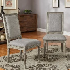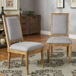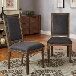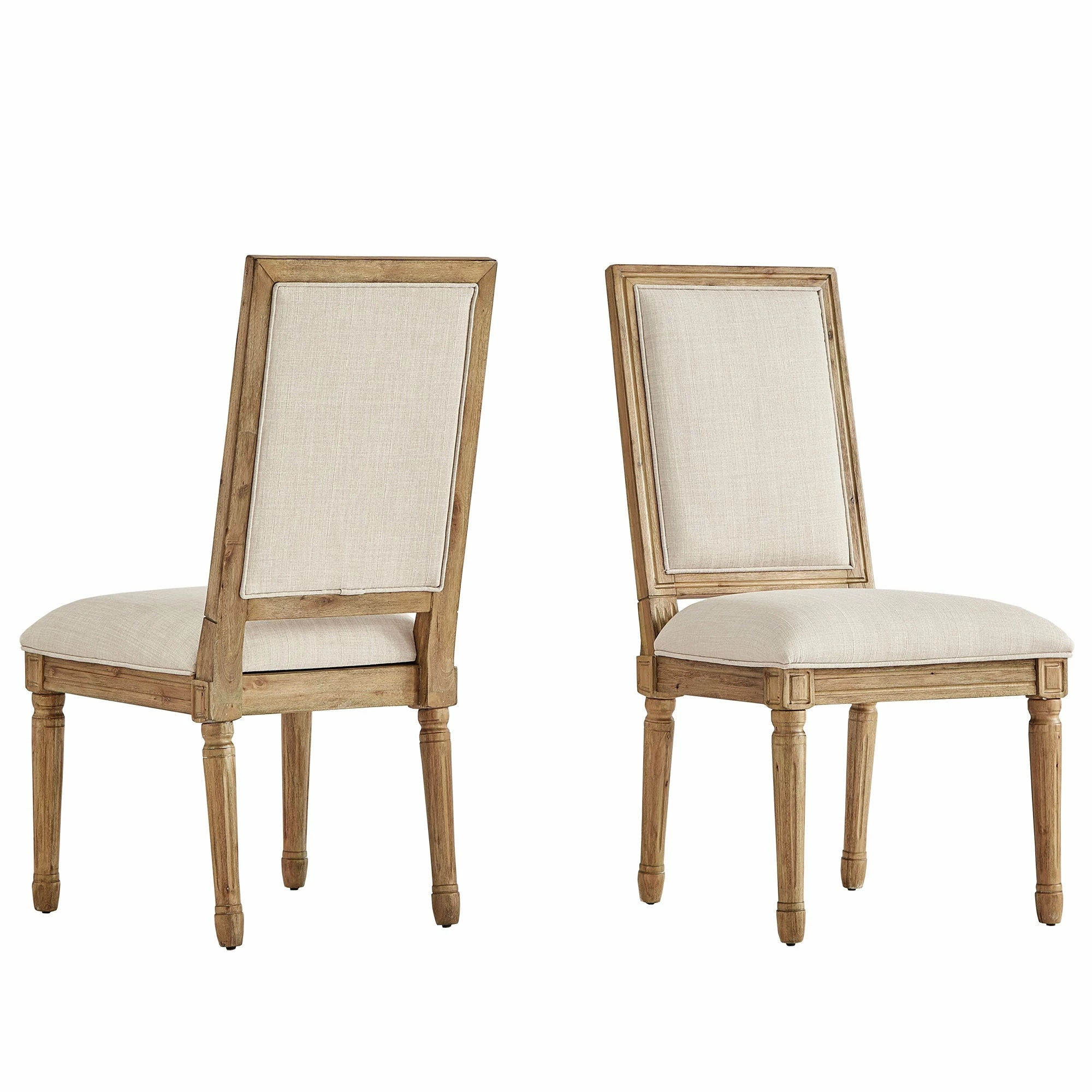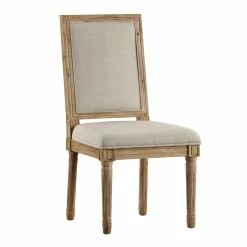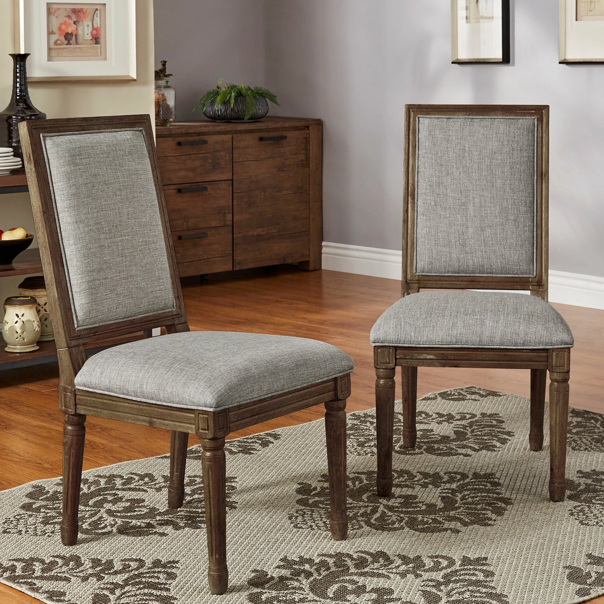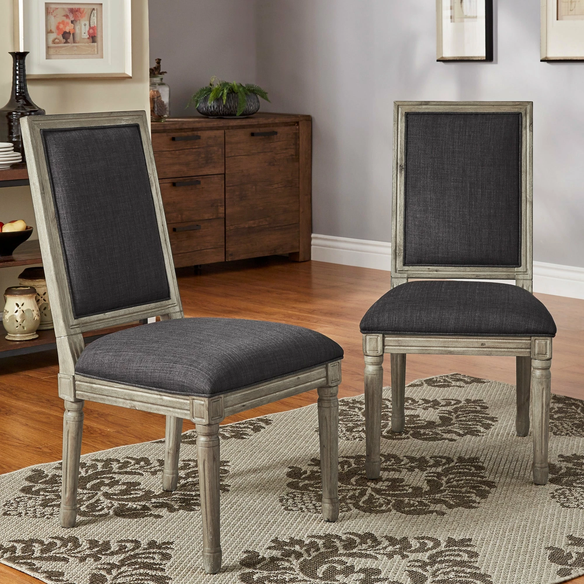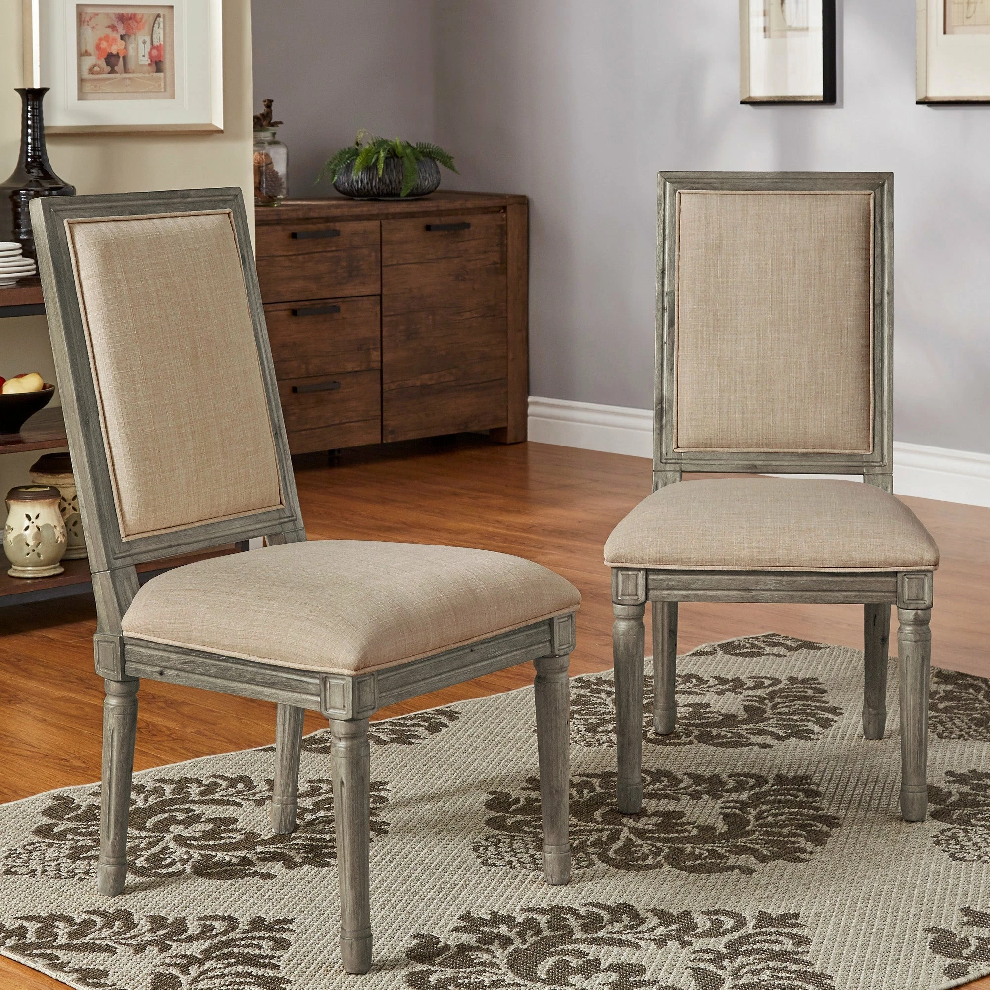 Add classic, timeless style to your dining space with the Deana Linen Dining Chairs by iNSPIRE Q® Artisan. With traditional elements like the carved wood framing and an elongated rectangular chair back, this dining chair is sure to perfectly a variety of styles from modern farmhouse to French country. The rustic wood finish pairs perfectly with your choice of linen upholstery. Available in beige, grey, and dark grey linen, these chairs are sure to match any color scheme.