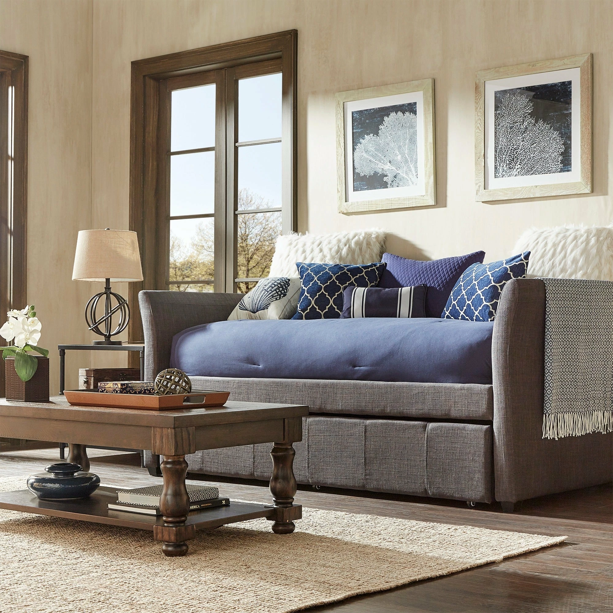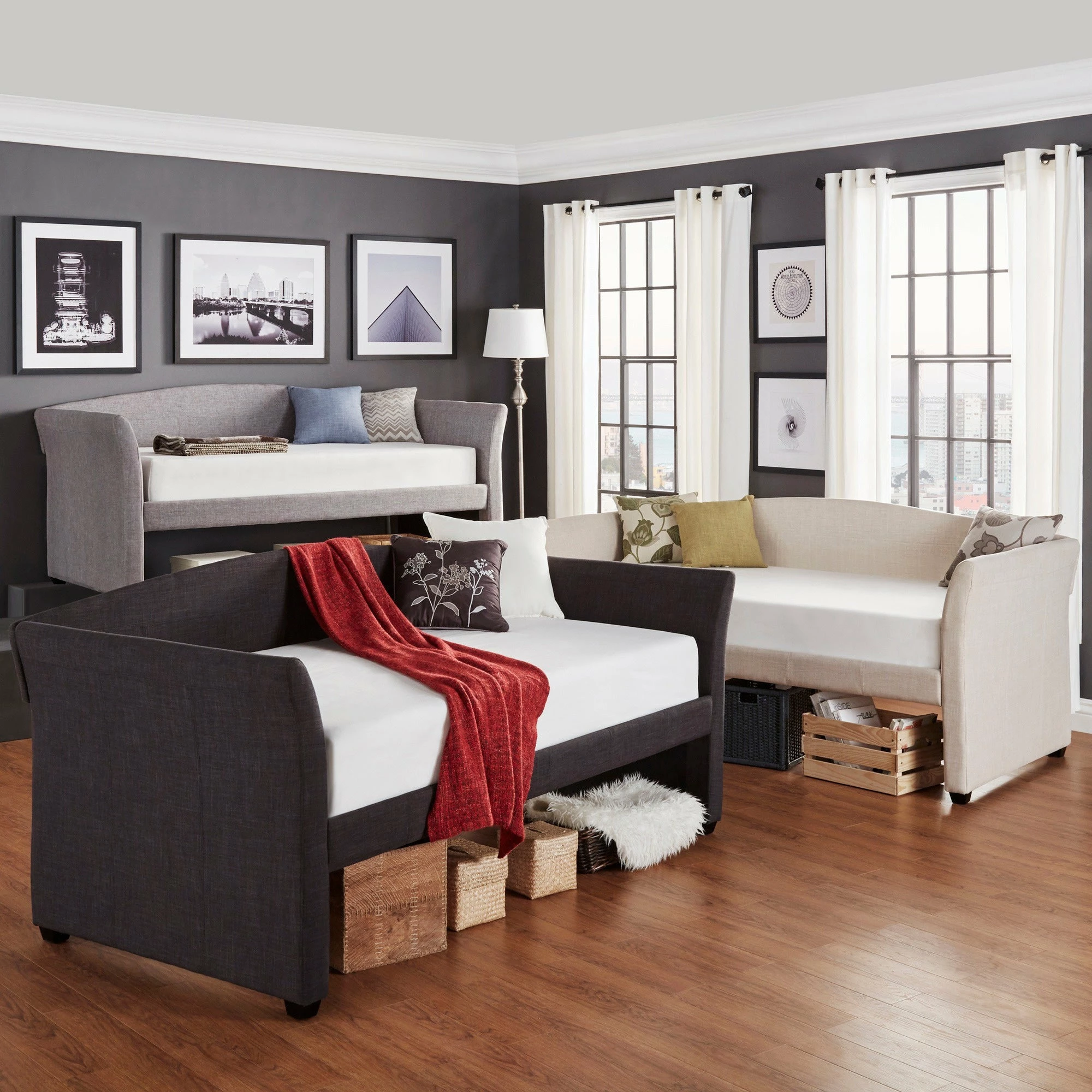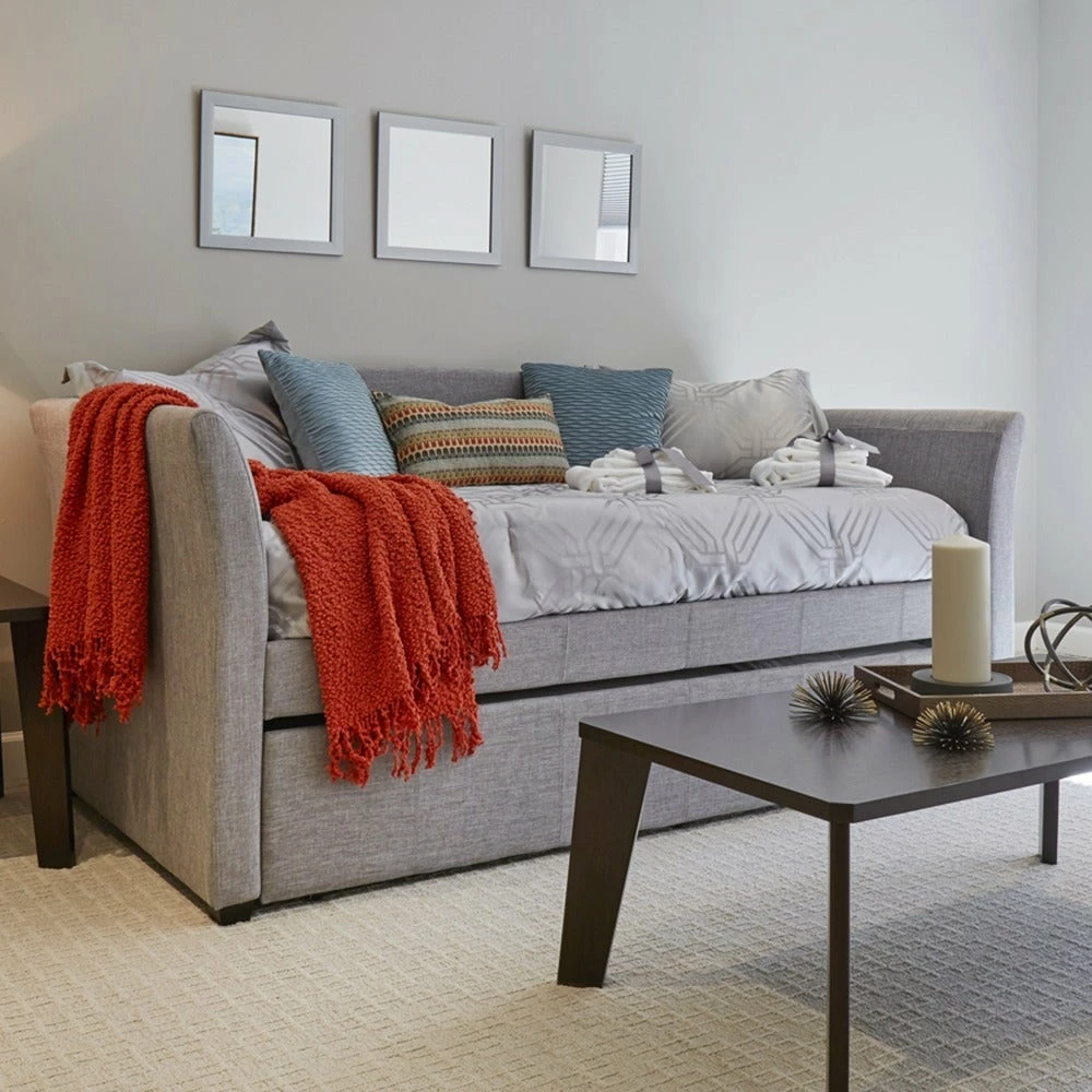 With an optional pull out trundle, this daybed means that you’ll have ample space for overnight guests, and the rolled arms, linen upholstery and range of subtle colors ensures a neutral look that blends with your decor. When guests aren’t using the bed, throw pillows and blankets turn the bed into a comfortable seat like a traditional sofa.