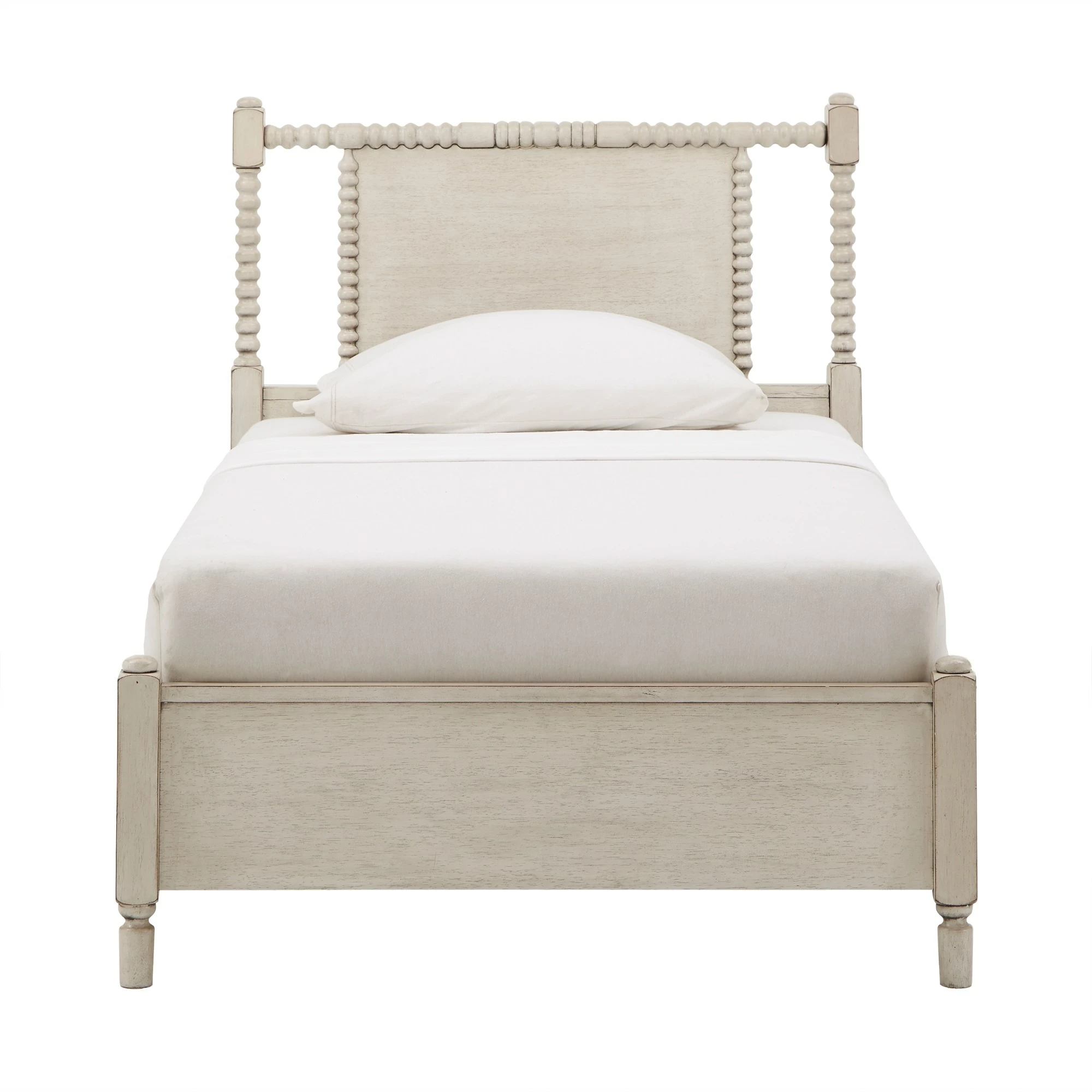 Escape to serenity every night with the Demetria Antique Finish Beaded Wood Platform Bed. Uniting contemporary and classic elements, this charming bed is constructed with wood for lasting reliability and boasts a neutral antique wood grain finish for timeless character. The rectangular headboard features lovely, beaded styling and turned legs, creating a look perfect for any kids’ room.