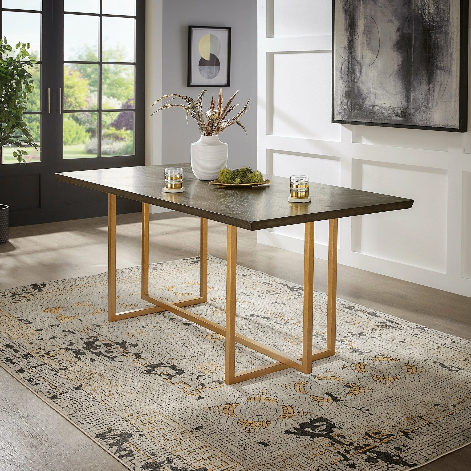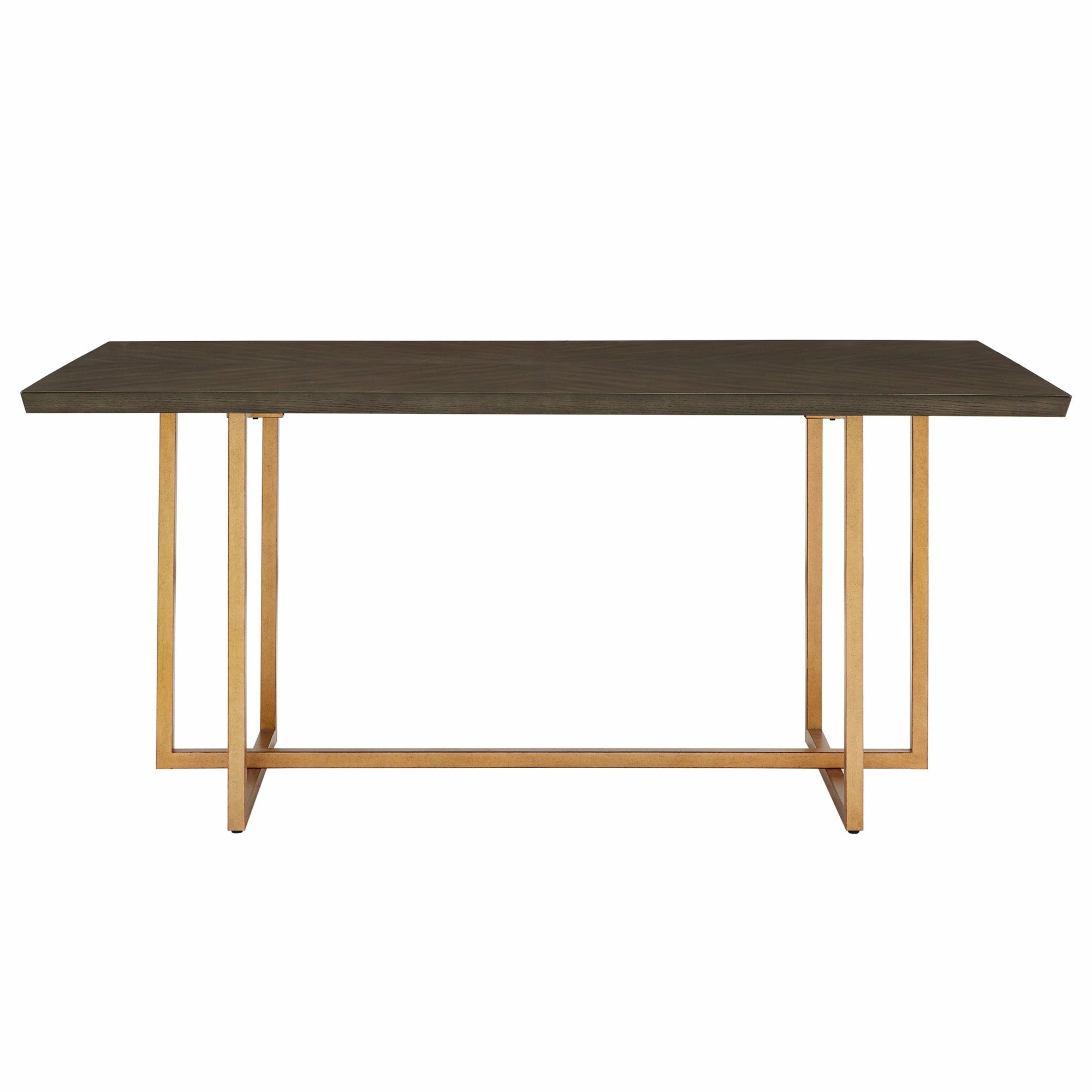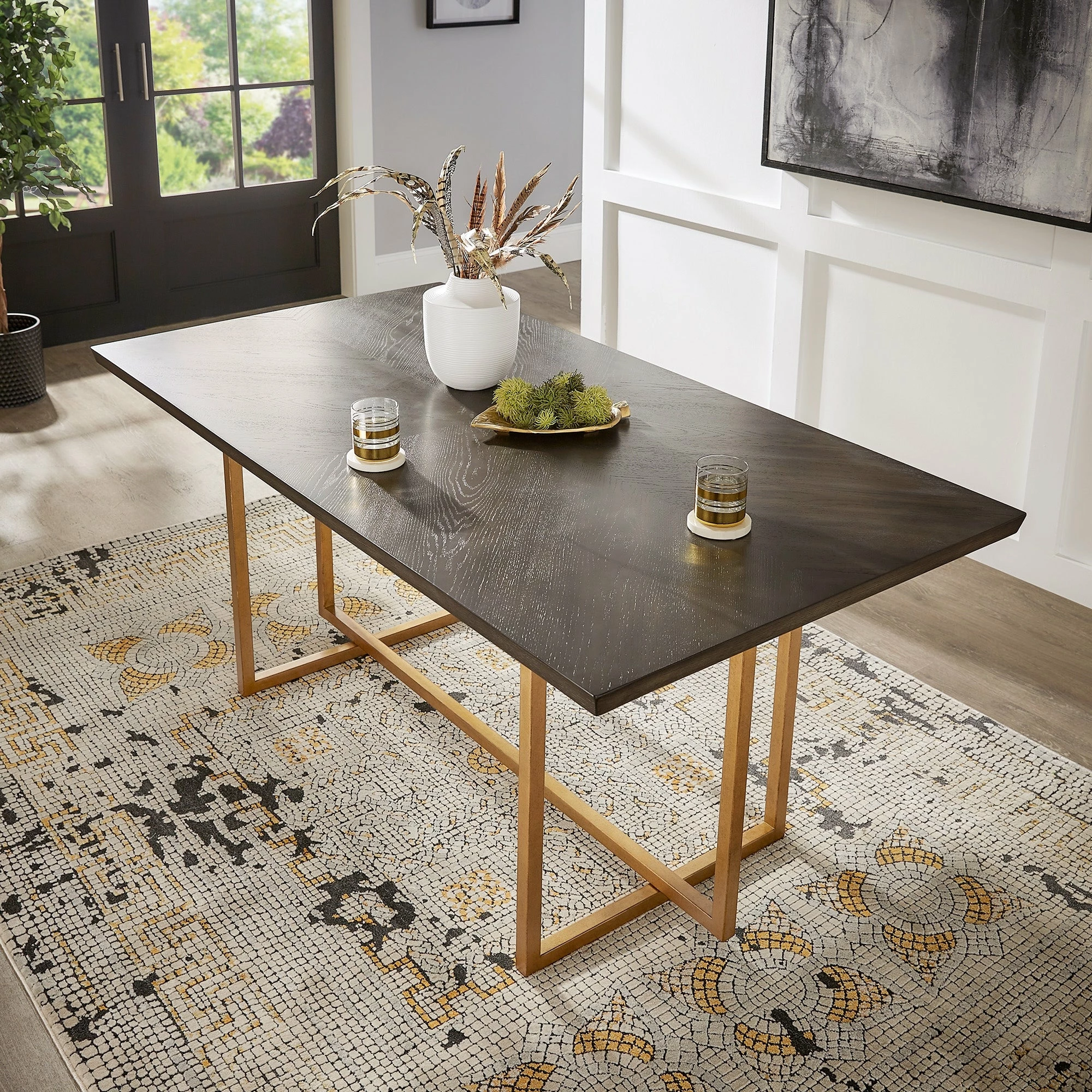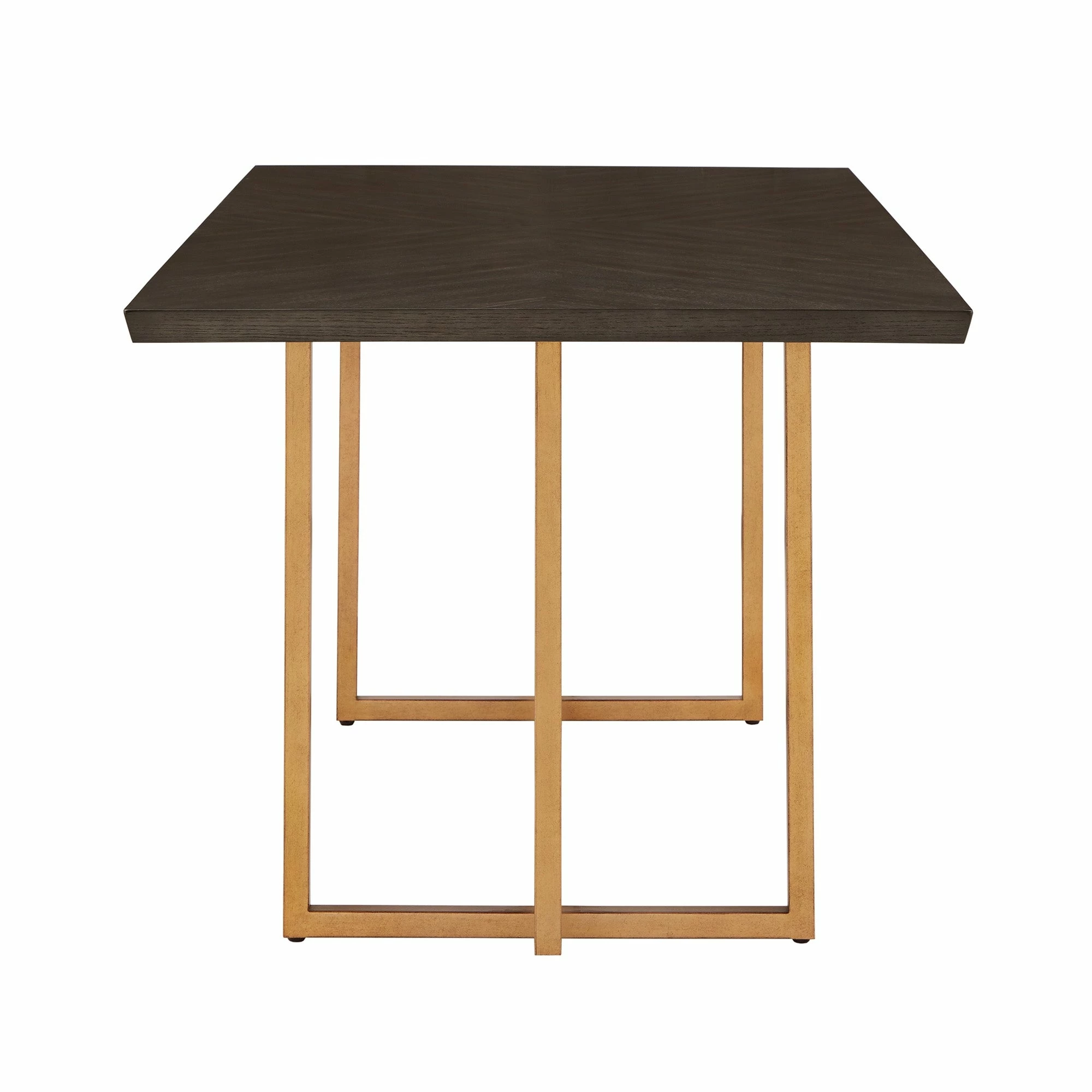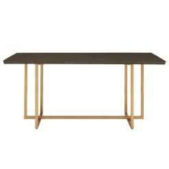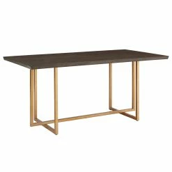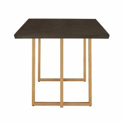 Update your dining room with cutting-edge fashion by making the Denver Charcoal Brown and Gold Finish 68โ Rectangular Dining Table from iNSPIRE Q Modern your centerpiece. A sturdy metal base supports a generous table top, the shimmery gold finish creating a beautiful contrast against the striking charcoal grey of the top. The smooth table top also features a geometric, inlay design on the wood for subtle sophistication. Oak veneer completes this elegant dining table to make it easy to clean yet hard to scratch, perfect for any occasion. This super chic table fits in great with contemporary or glam-themed settings.
