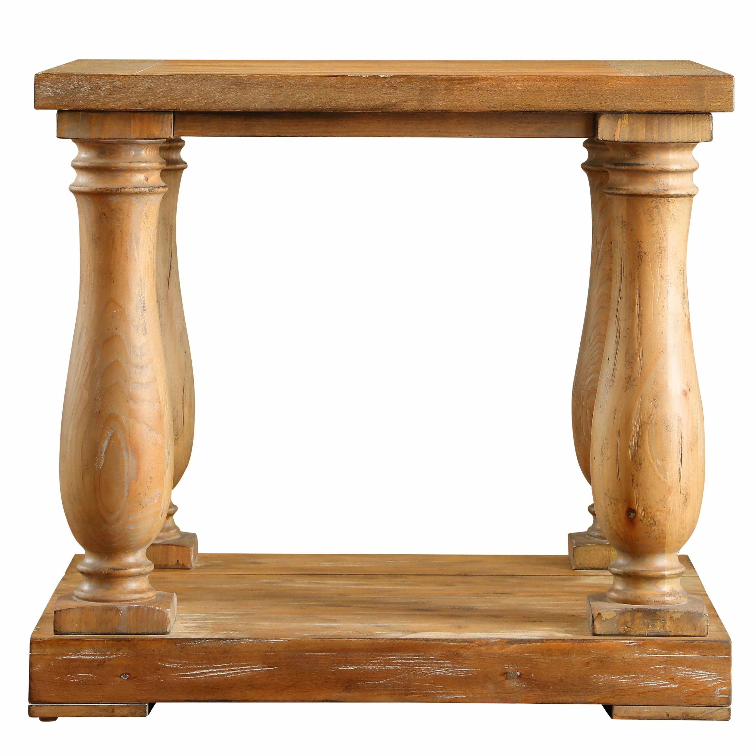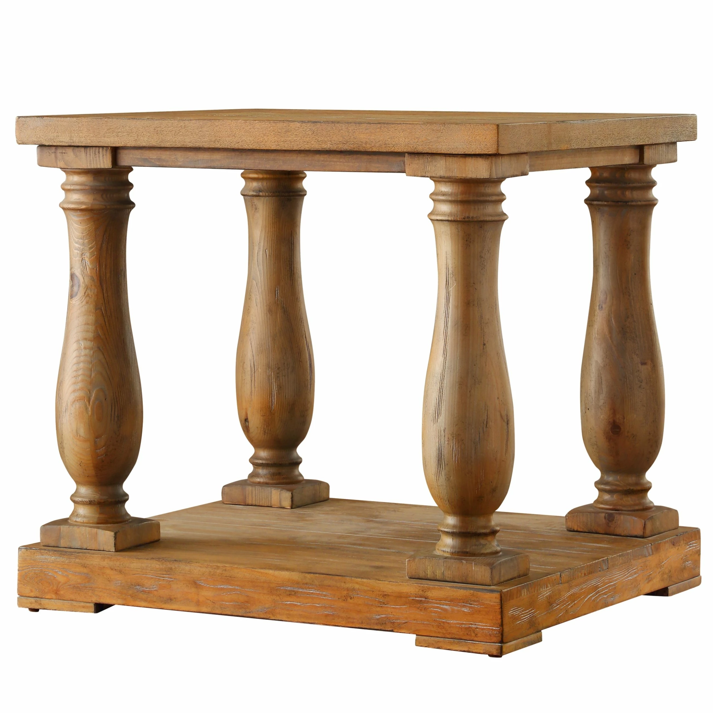 Show off your country style with this iNSPIRE Qยฎ Artisan Edmaire rectangular end table. The weathered appearance of this rustic table gives the rectangle end table an old fashioned cabin feel, and the solid pine and MDF construction ensure lasting durability. A large bottom shelf provides an excellent place to store magazines and books, while the tabletop is roomy enough to hold a large lamp or decorative statue.