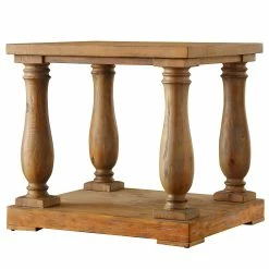 This exquisite end table is a welcome fit in rooms with medium to bright lighting and colors, and it especially complements subtle earth tones and antiquated motifs. This table is reminiscent of a weathered yet attractive handcrafted piece of furniture, but it maintains the handsome dimensions and corners of a brand new table.
