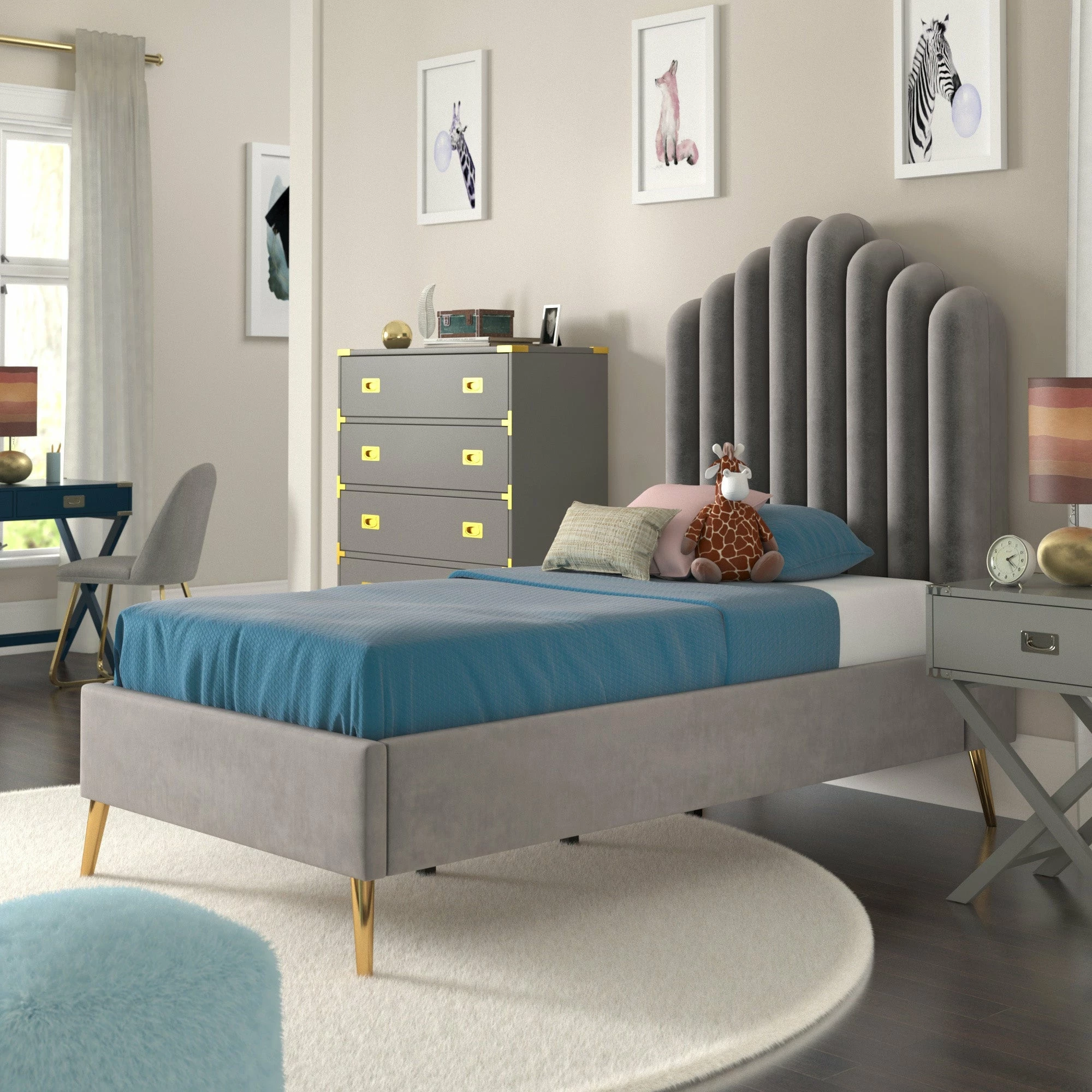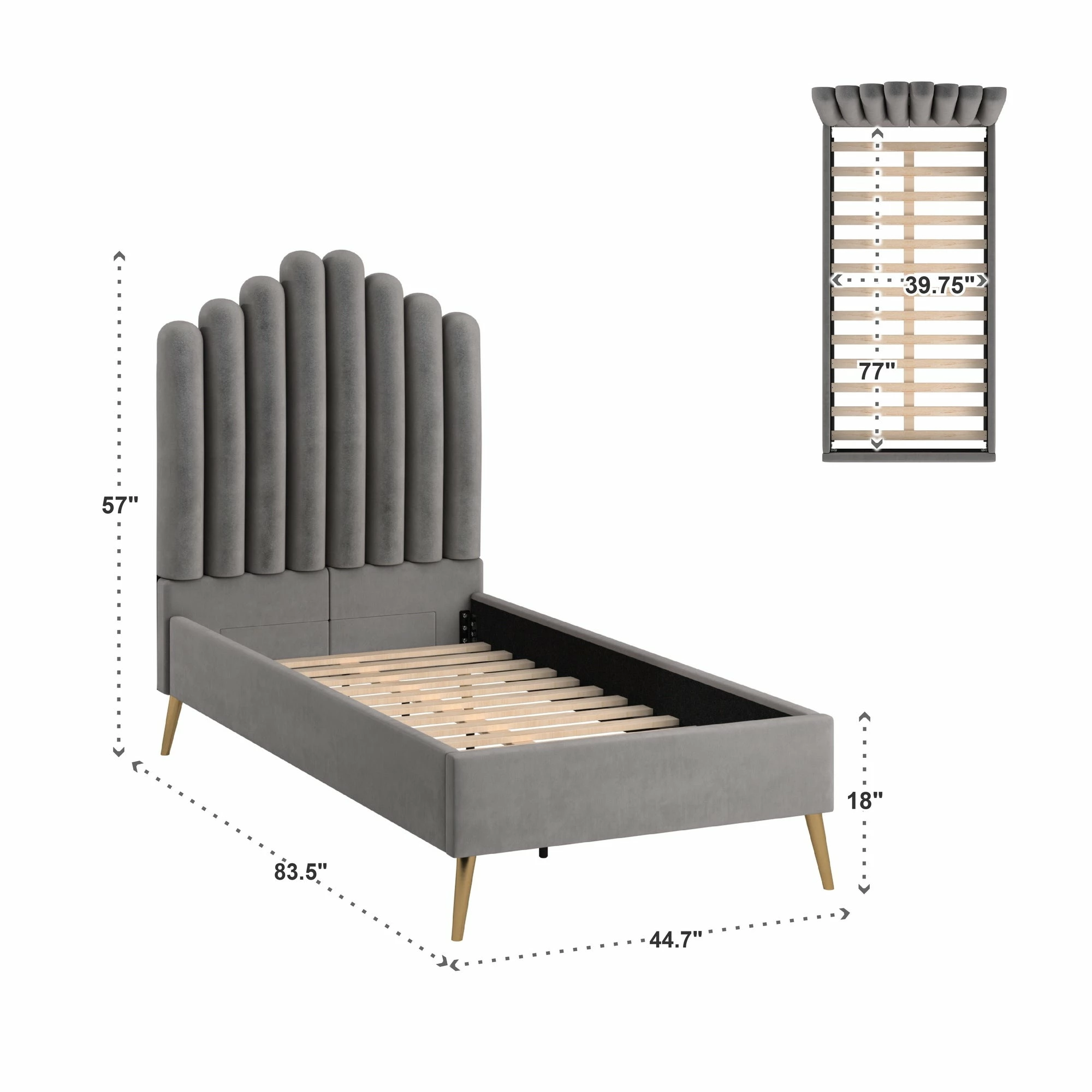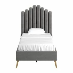 The Art Deco Velvet Upholstered Platform Bed is a luxurious and elegant addition to any bedroom. With its stepped tube design and deep-padded velvet upholstery, this platform bed is perfect for any occasion and can be dressed up or down depending on the season. The sturdy metal legs provide exceptional stability, and since this bed requires no box spring or foundation for support, it will save you money and space!