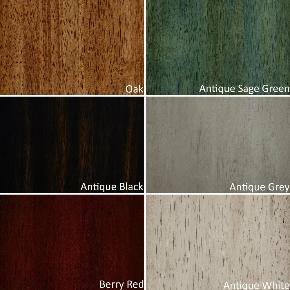 - Chair finish options: oak, antique sage green, black, antique grey, berry red, antique white
