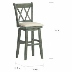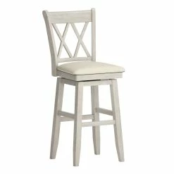 Add stunning, vintage-inspired seating to your counters or bar with the Eleanor Swivel Chairs by iNSPIRE Q Classic. The double X back adds a sense of charm to this design while the linen upholstered seat cushion adds comfort. The swivel feature is perfect for casual dining and easy conversation. This stool is available in several distressed finishes, so you can express your unique design taste.