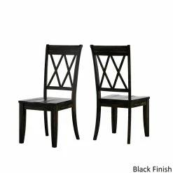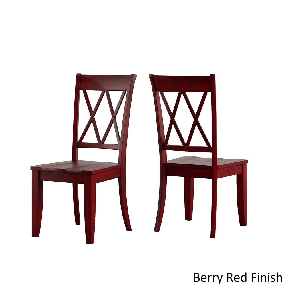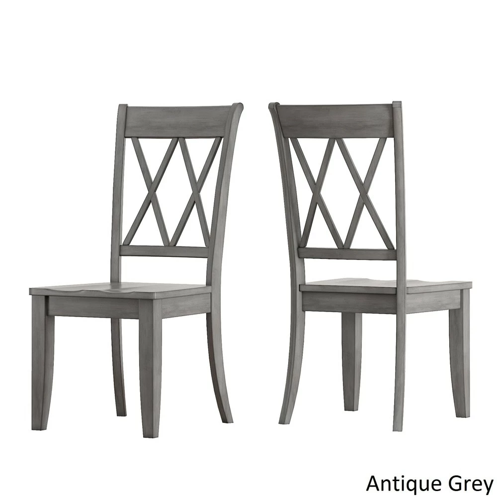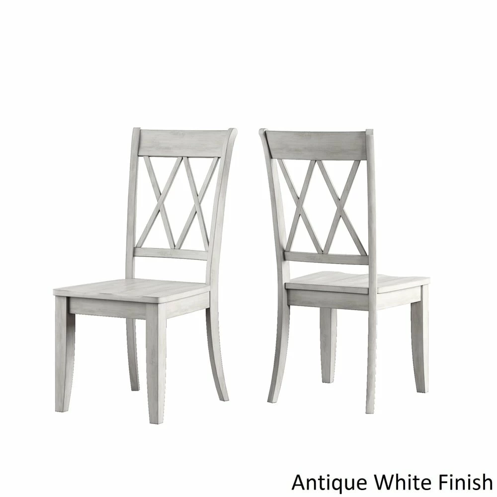 Add a beautiful, rustic look to your dining space with this round wood dining set. The traditionally designed table features a pedestal style base and an antique, oak wood finish. The chair s graceful X back adds a sense of antique charm to this design. This round table is perfect for limited spaces, smaller formal dining rooms, or eat-in kitchens. The chairs are available in several distressed finishes, including neutrals and bright hues, so you can mix or match colors and express your unique design taste.