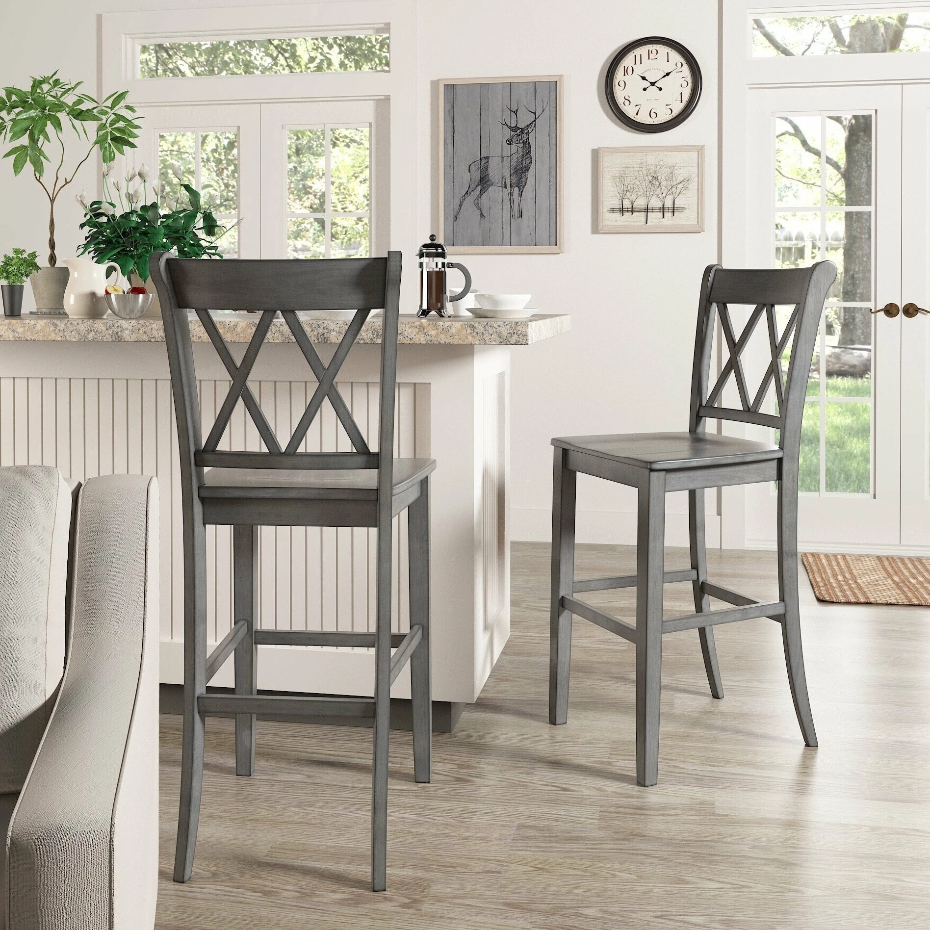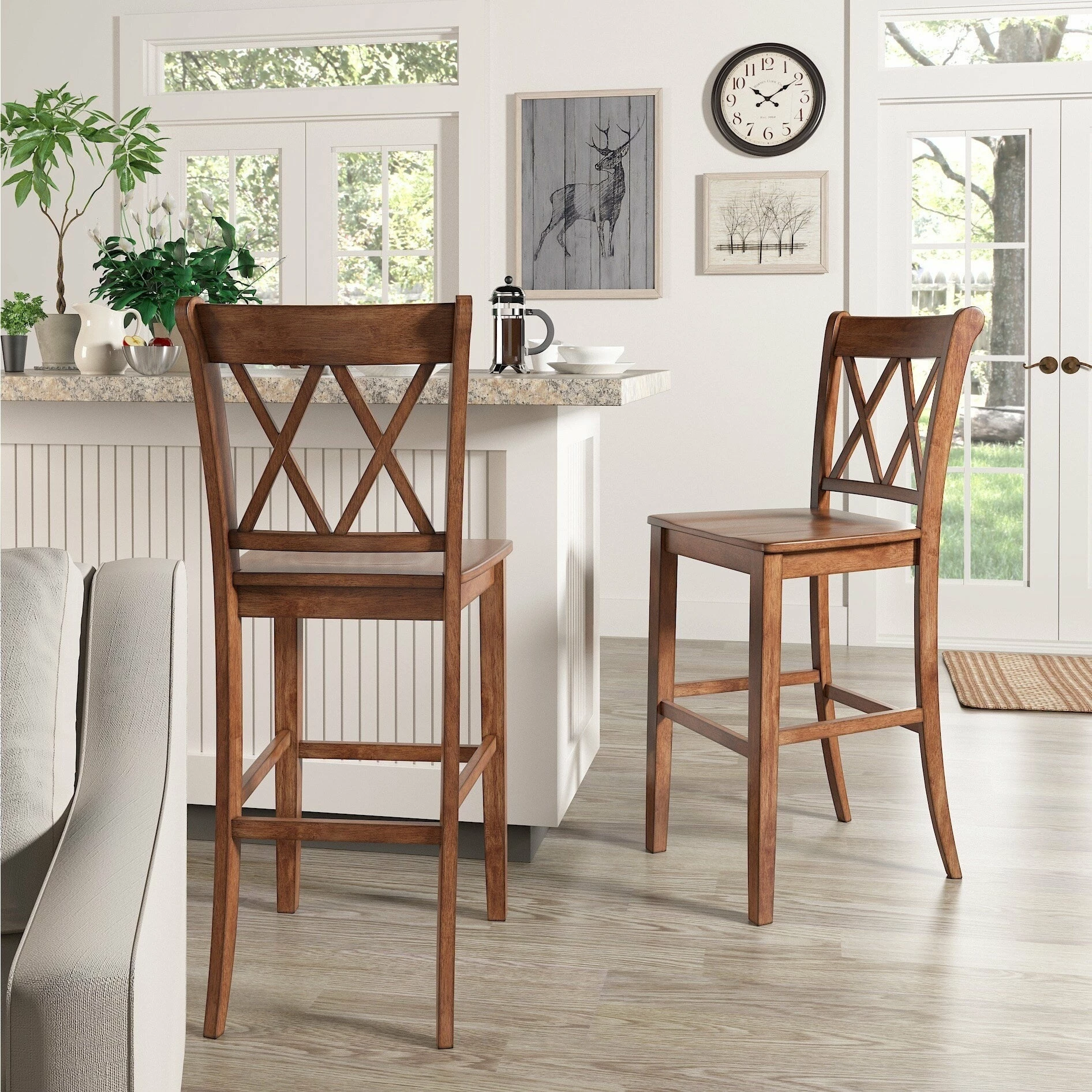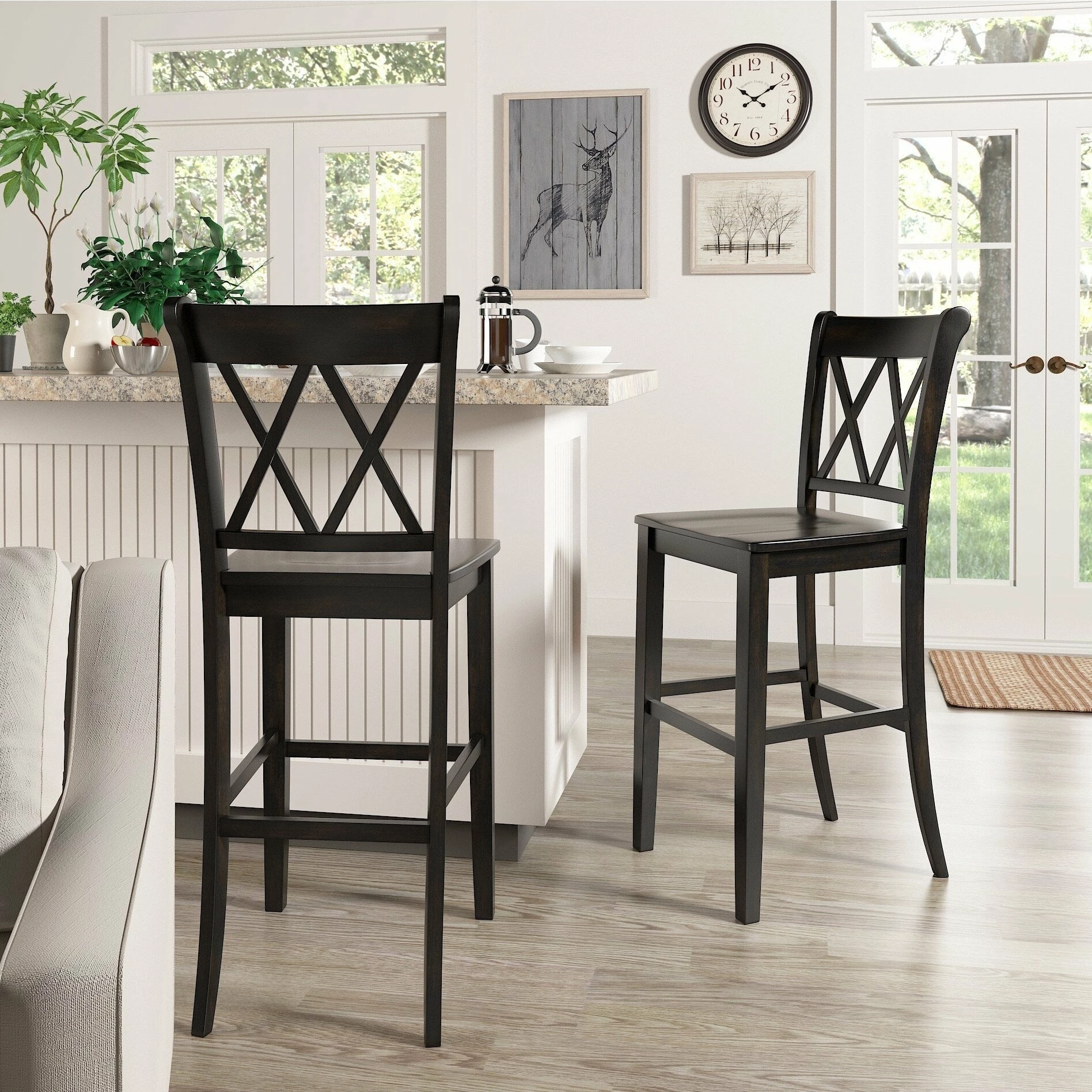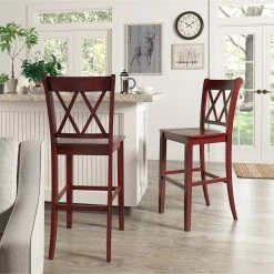 Add a beautiful, rustic look to your dining space with the Eleanor X Back Bar Height Chair from iNSPIRE Q Classic. The chairs’ visible wood grain and double X back adds a sense of antique charm to this design. The chairs are available in several distressed finishes, including neutrals and bright hues, so you can mix or match colors and express your unique design taste.