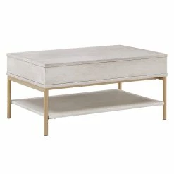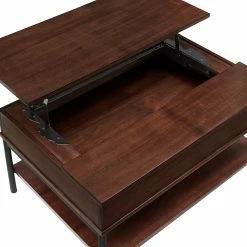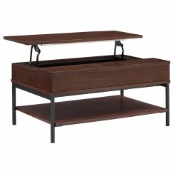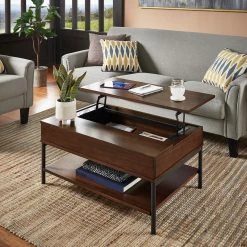 Add convenience and style to your living space with the Elio Two-Tone Lift-Top Rectangular Tables by iNSPIRE Q Modern. Simple yet functional, these chic tables feature open shelves and a lift-top mechanism for easy, stylish storage. A two-tone finish completes these pieces, boasting a visible wood grain and sleek metal frame for a look that blends with a variety of design styles.