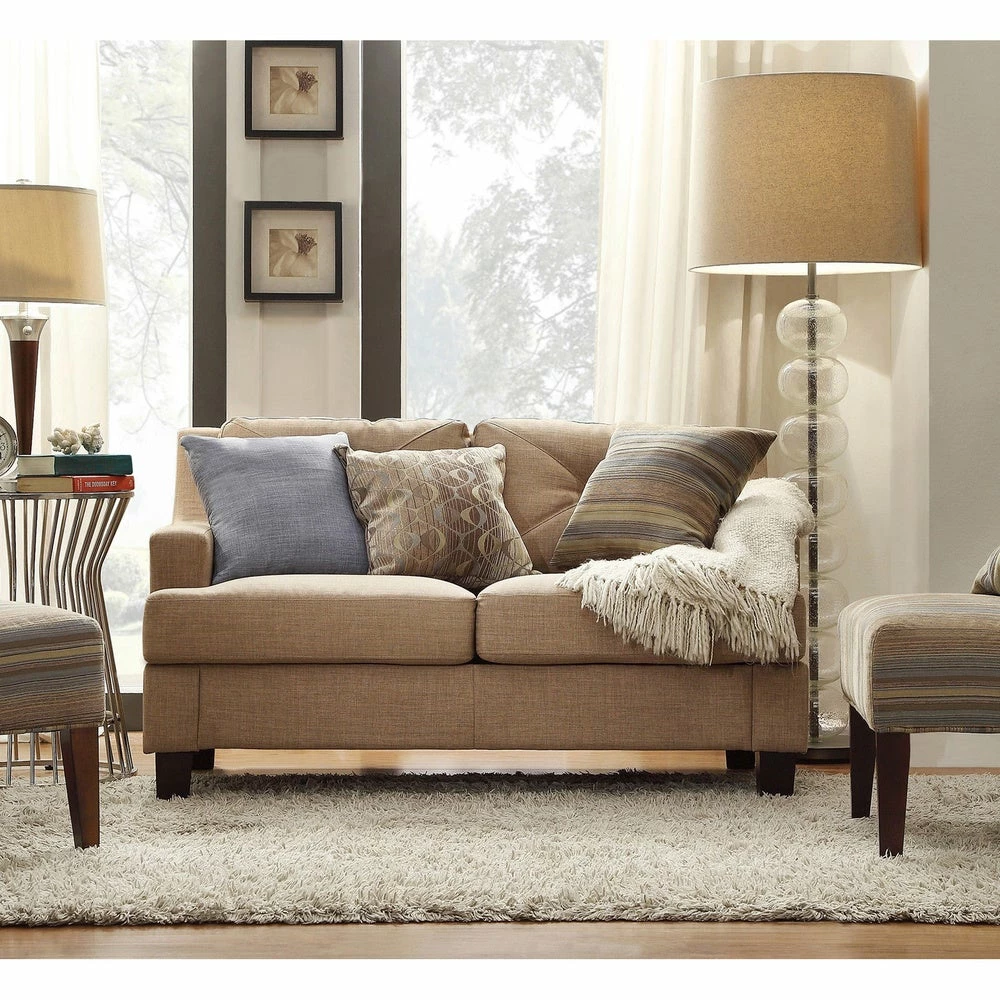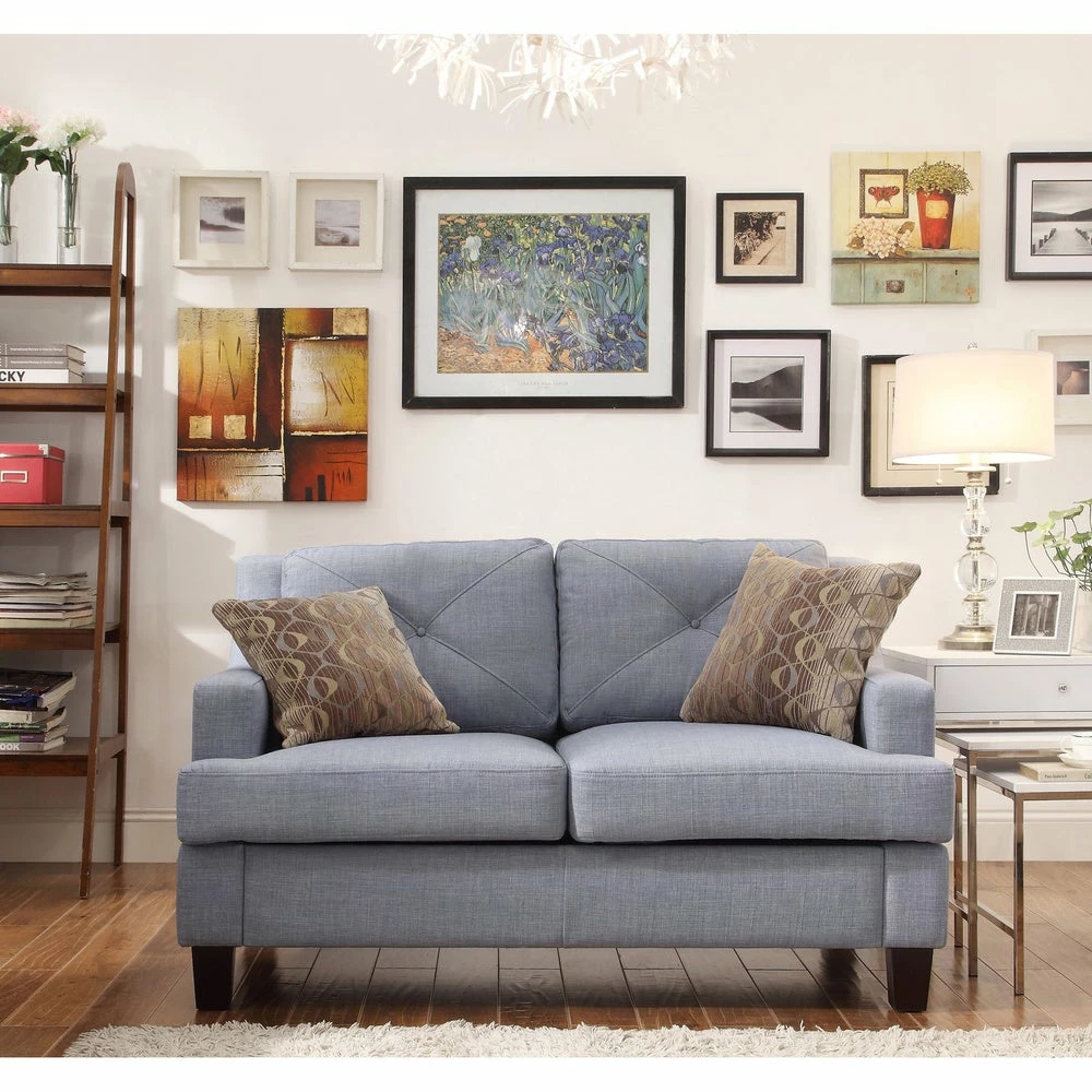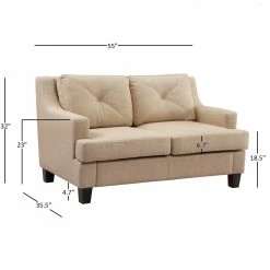 Cute, compact, and contemporary, this chic loveseat is the perfect choice for your living room. The sturdy rubberwood frame provides for long-lasting use, and the high-density foam cushions have an innerspring core that prevents sagging and gets softer with time. The linen upholstery comes in a variety of colors to best match your decor.