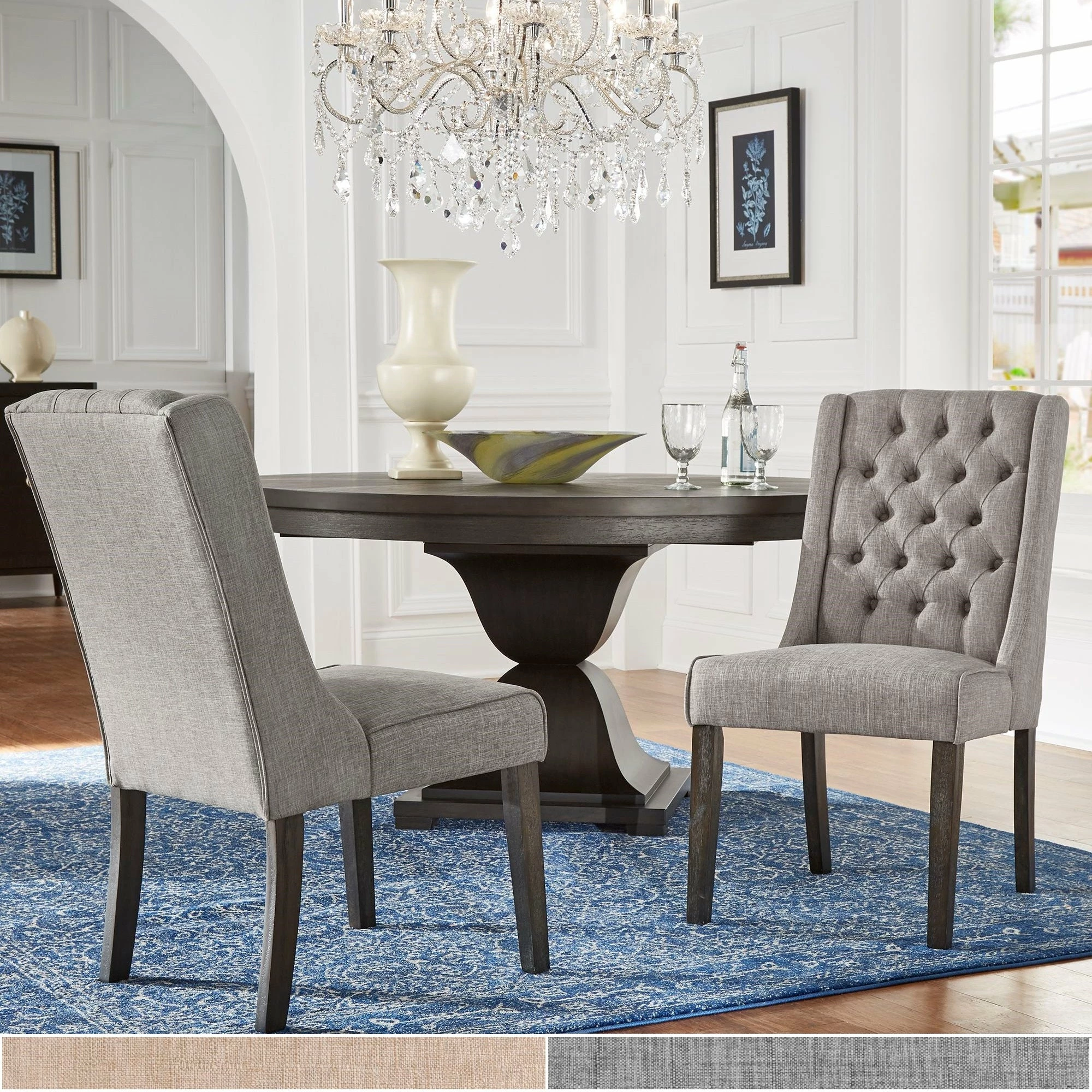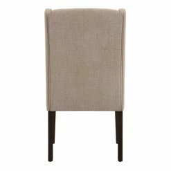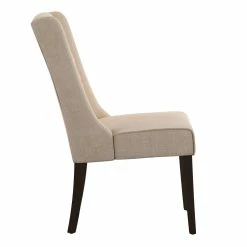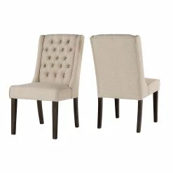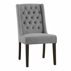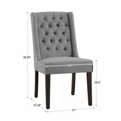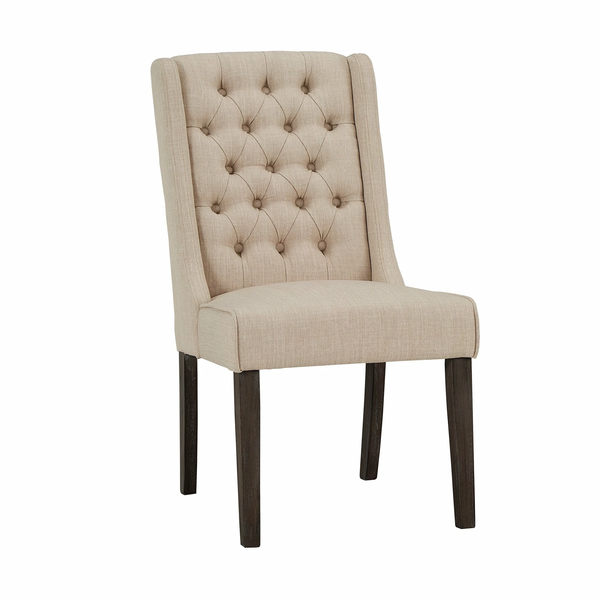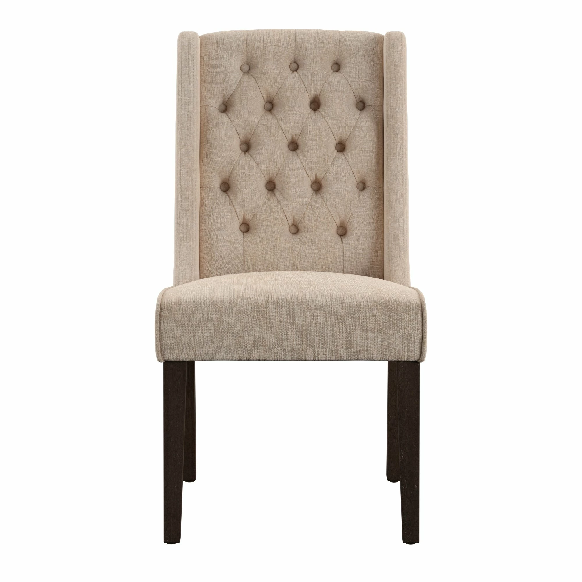 The Evelyn Turkish coffee finish linen tufted chairs are sure to add exquisite comfort and lux style to your classically designed dining space. With cozy linen-like upholstery and the plush comfort provided by the tufted and wingback features, these chairs will soon become the favorite seat in the house. The warm, Turkish coffee finish wood legs pair perfectly with rustic and traditional elements and provide reliable stability for frequent use. Choose from beige or grey upholstery to best suit your personal style.