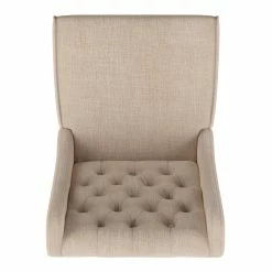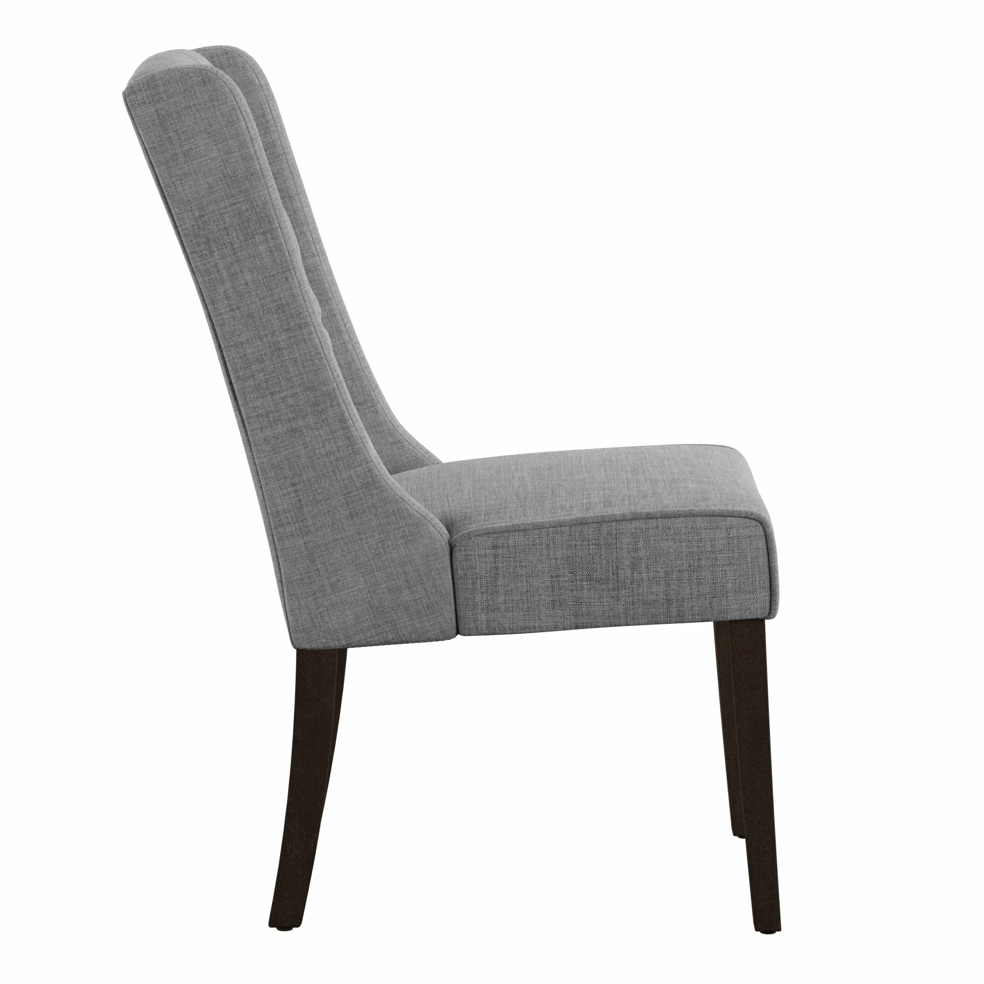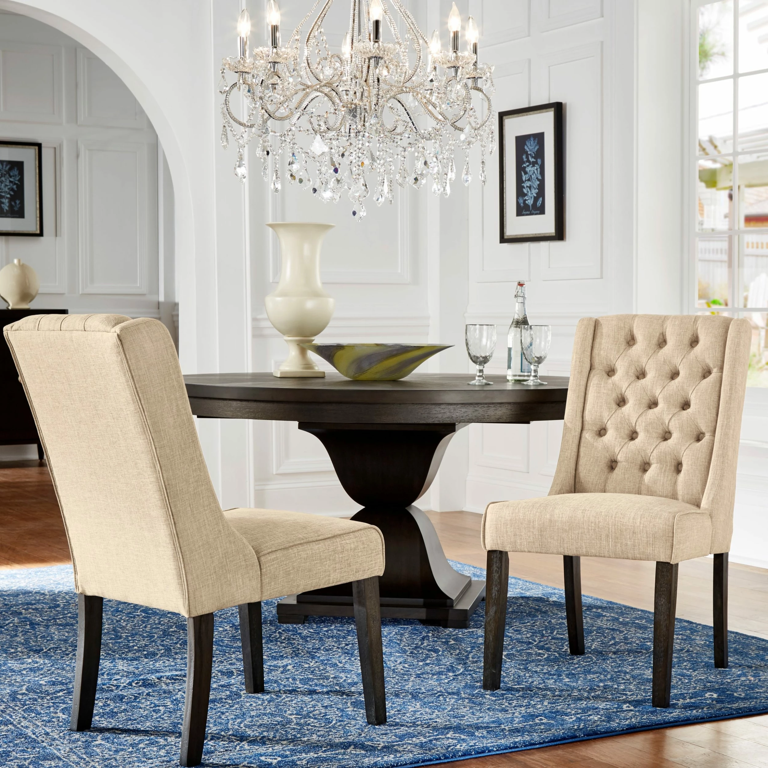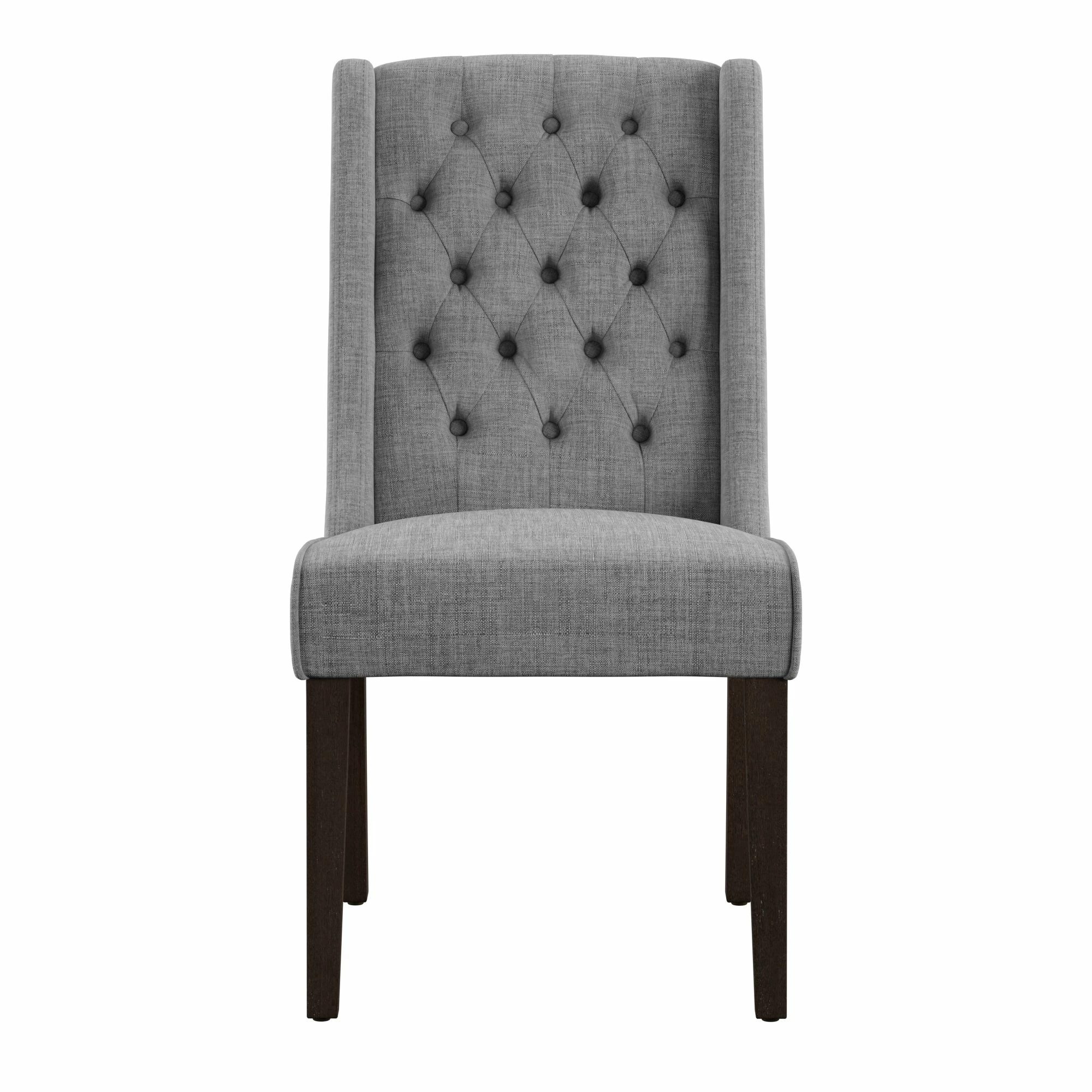 The Evelyn Turkish coffee finish linen tufted chairs are sure to add exquisite comfort and lux style to your classically designed dining space. With cozy linen-like upholstery and the plush comfort provided by the tufted and wingback features, these chairs will soon become the favorite seat in the house. The warm, Turkish coffee finish wood legs pair perfectly with rustic and traditional elements and provide reliable stability for frequent use. Choose from beige or grey upholstery to best suit your personal style.