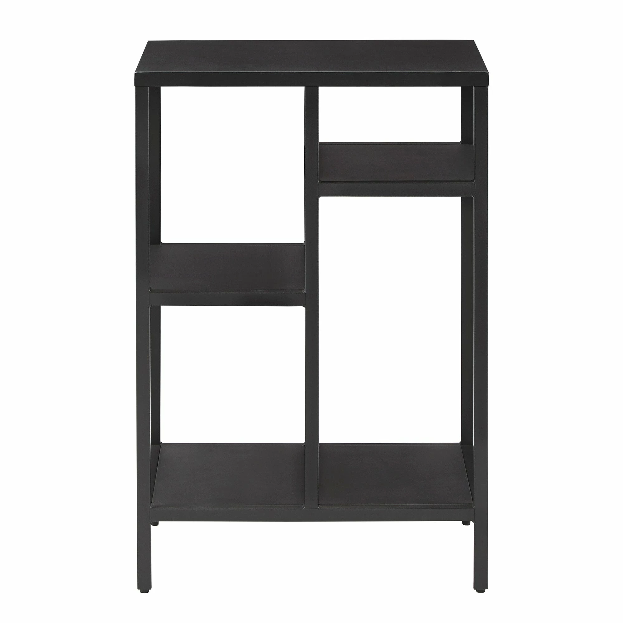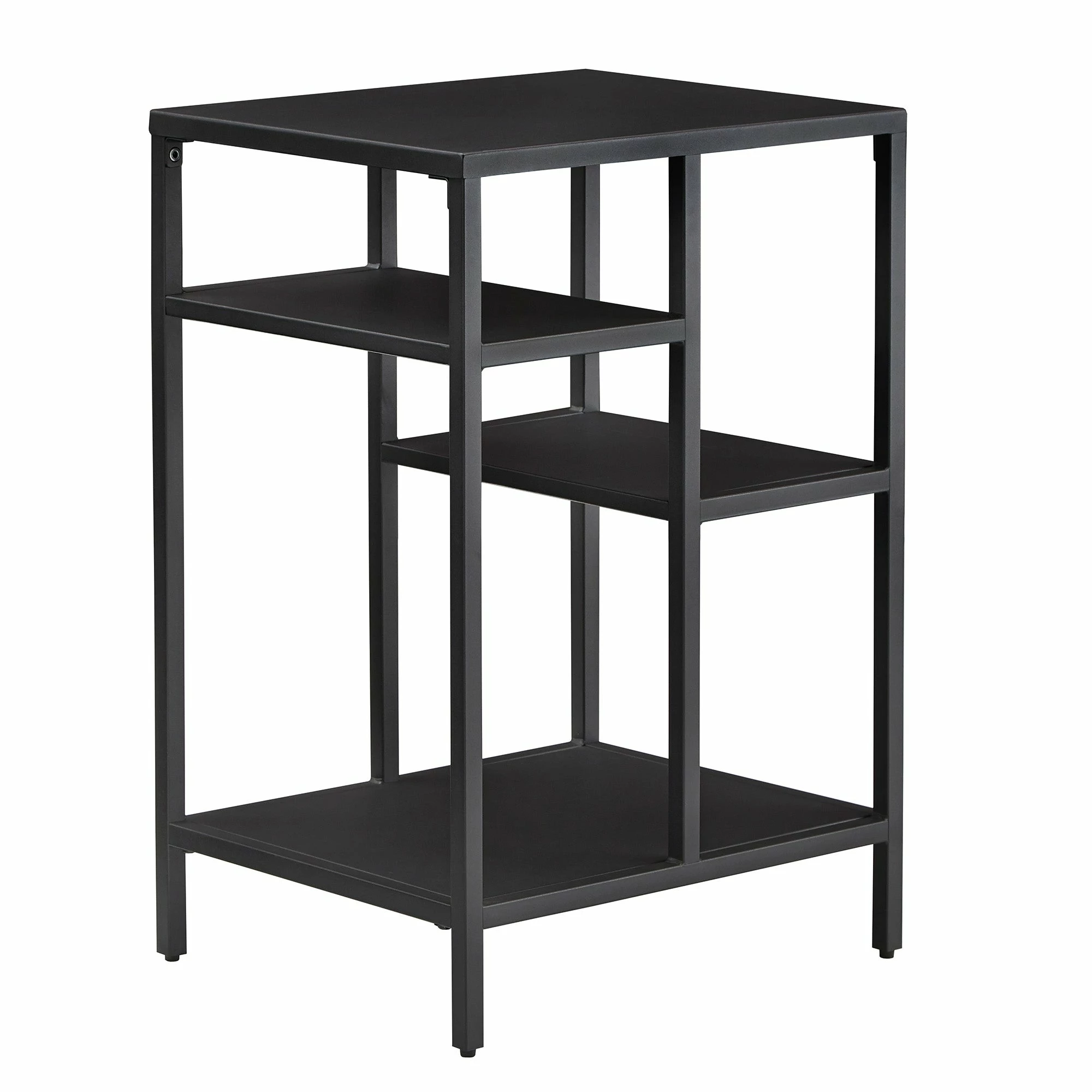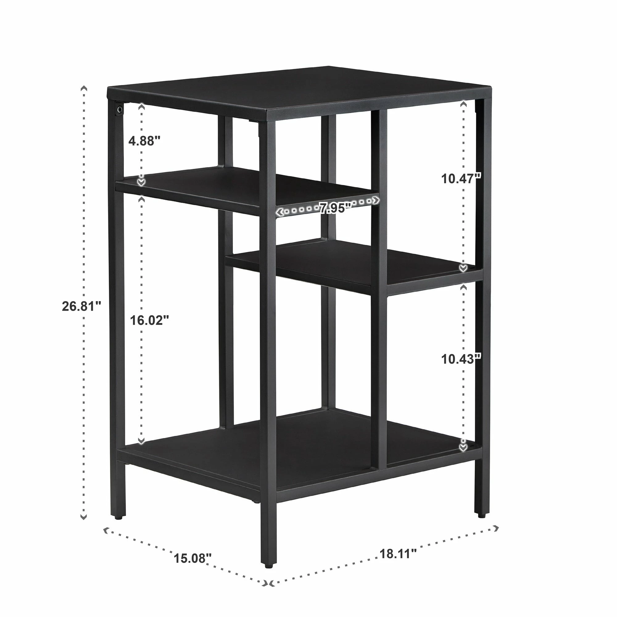 The contemporary urban industrial design of the 26.8″ H Metal Side Table Shelving Unit is perfect for clearing up the clutter in your living room, home office, or as a nightstand in your bedroom. This versatile unit sports a rectangular silhouette with two open shelves and spacious top and bottom shelves. The open metal framework provides plenty of space to tuck away loose odds and ends, while also showcasing books, decorations, or small lamps.