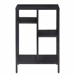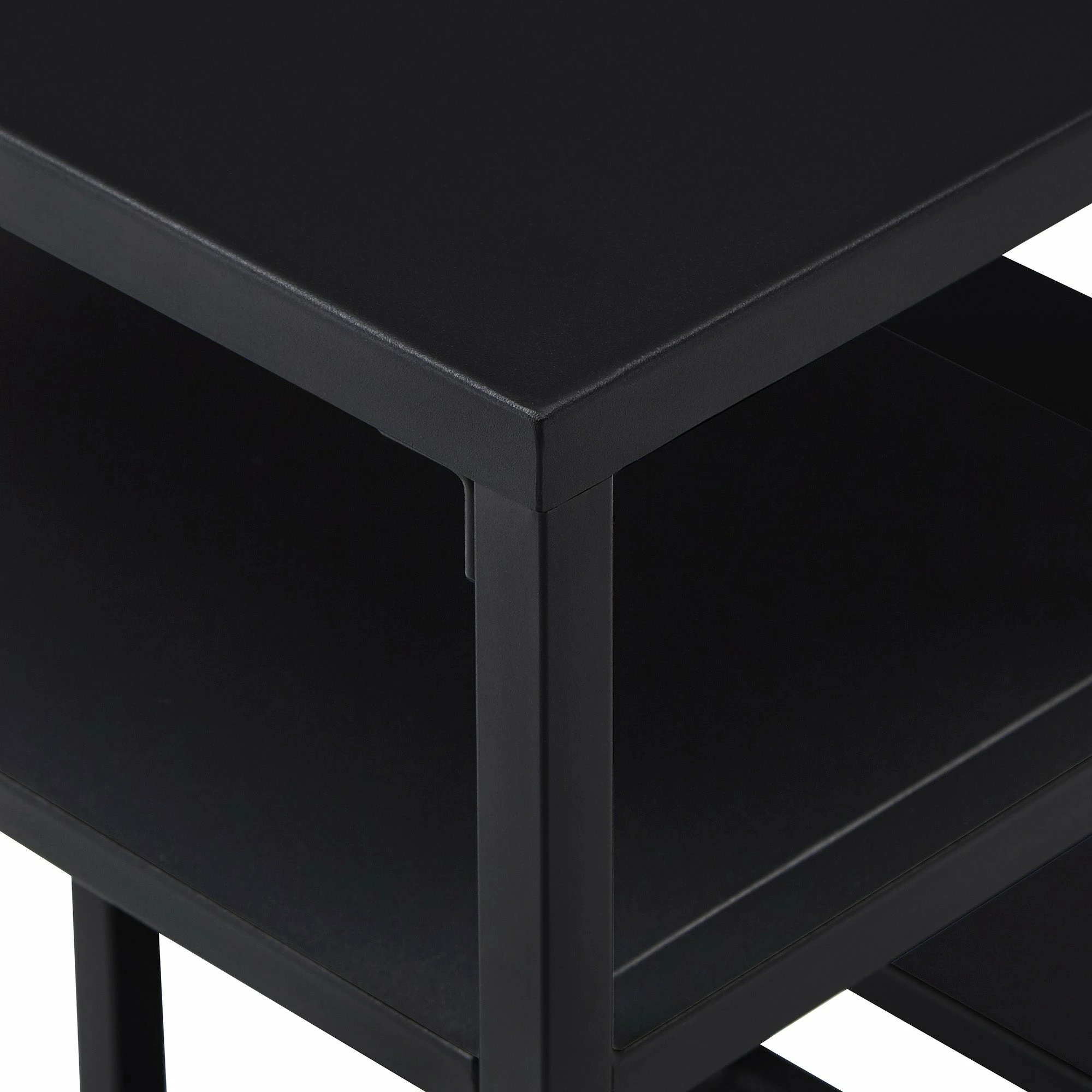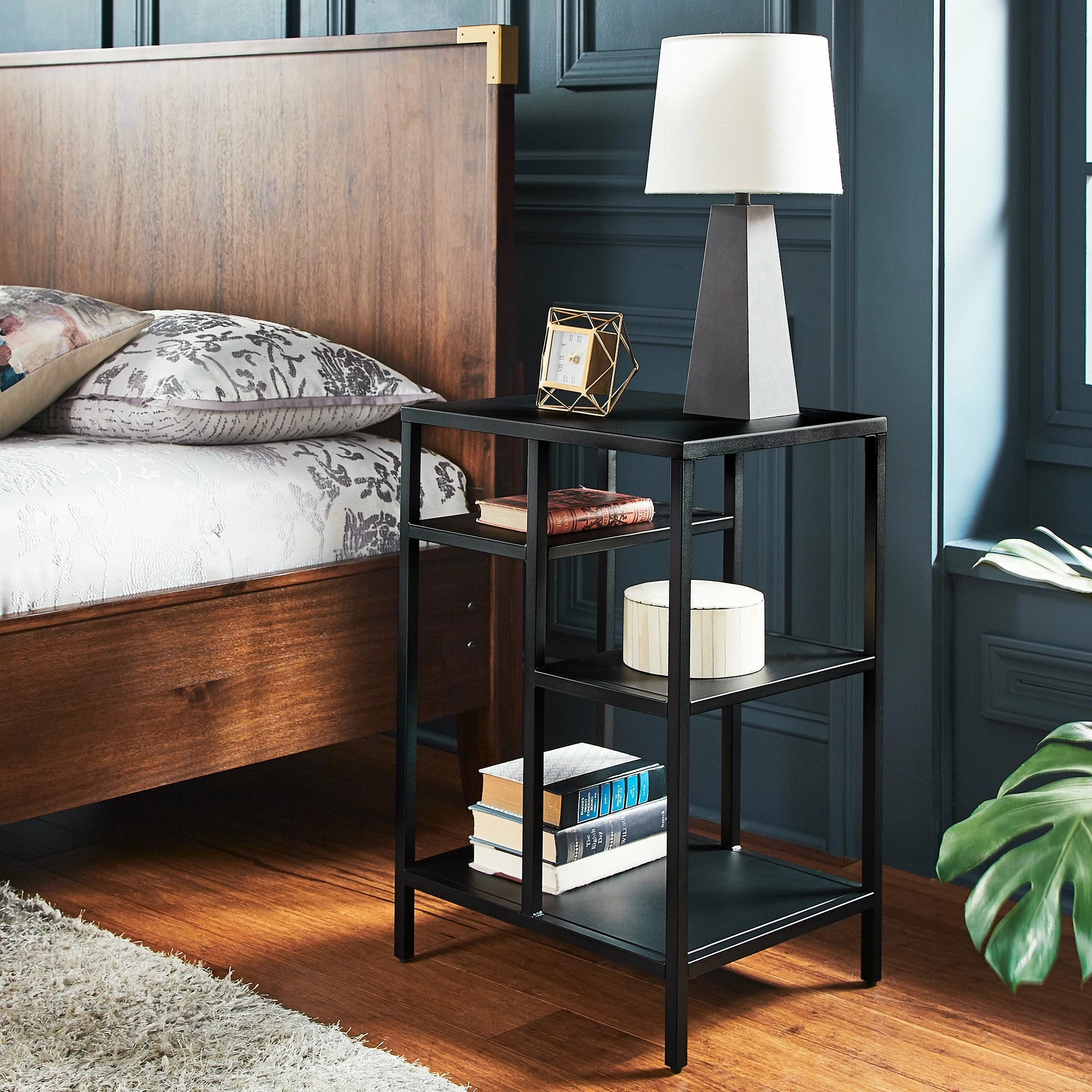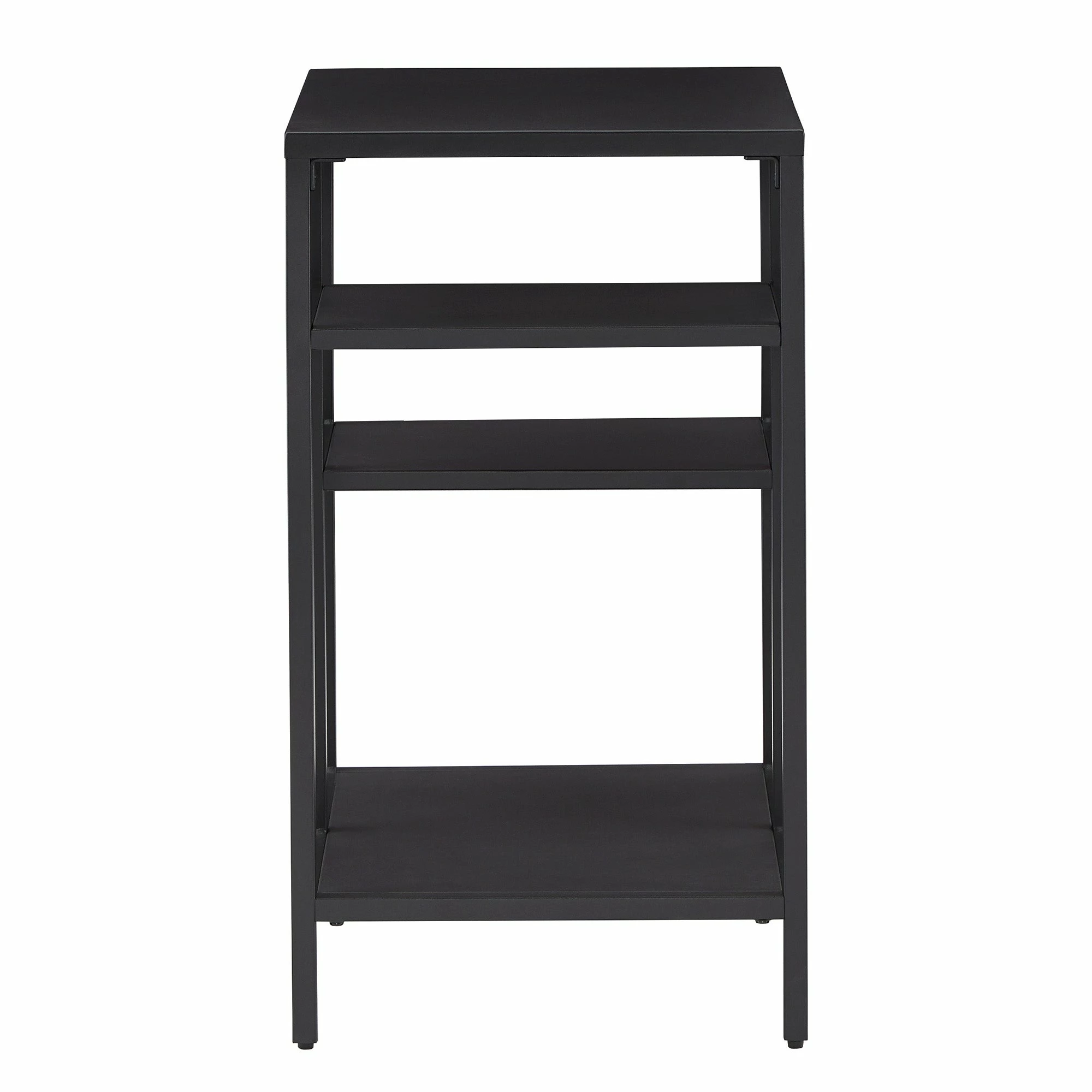 The contemporary urban industrial design of the 26.8″ H Metal Side Table Shelving Unit is perfect for clearing up the clutter in your living room, home office, or as a nightstand in your bedroom. This versatile unit sports a rectangular silhouette with two open shelves and spacious top and bottom shelves. The open metal framework provides plenty of space to tuck away loose odds and ends, while also showcasing books, decorations, or small lamps.