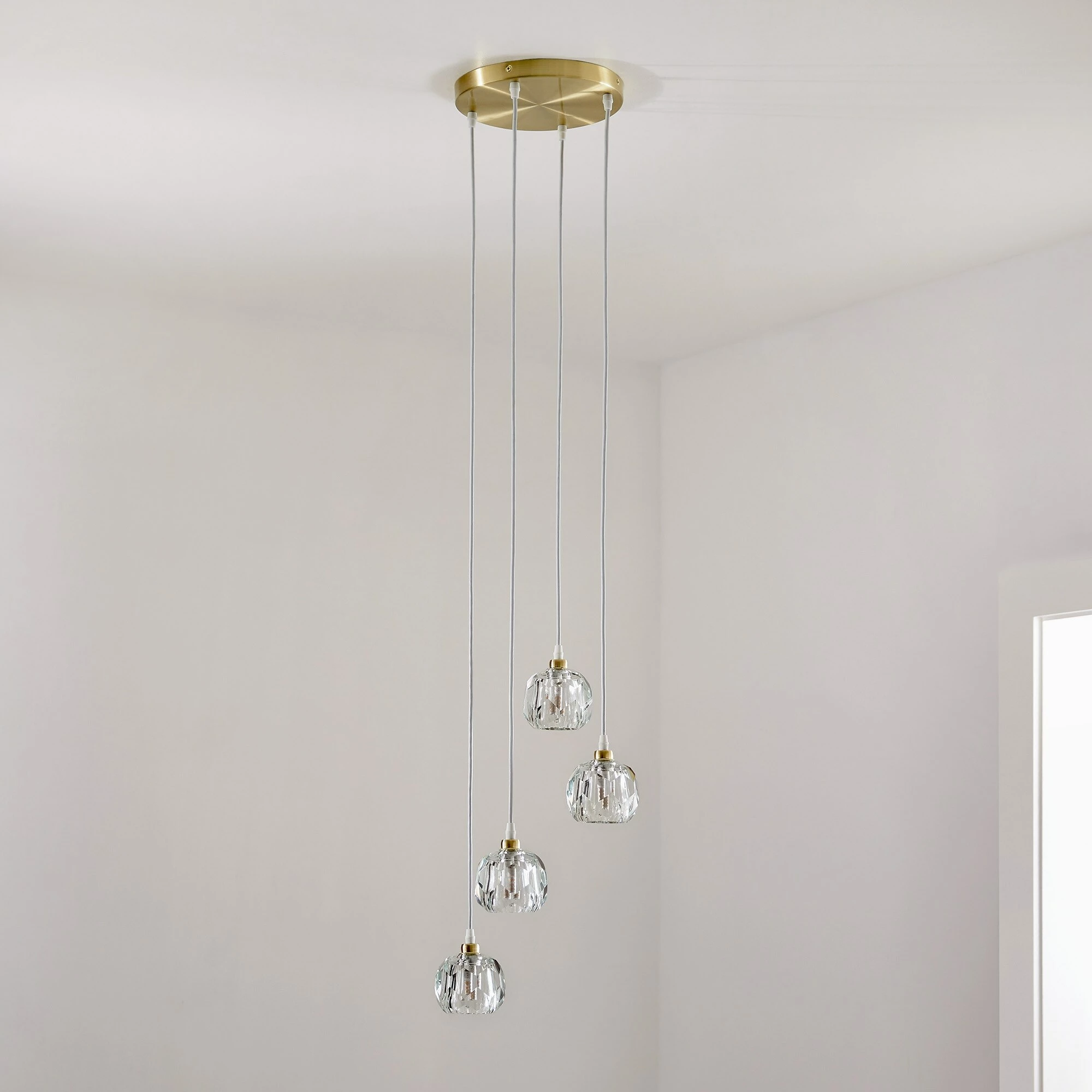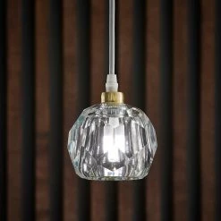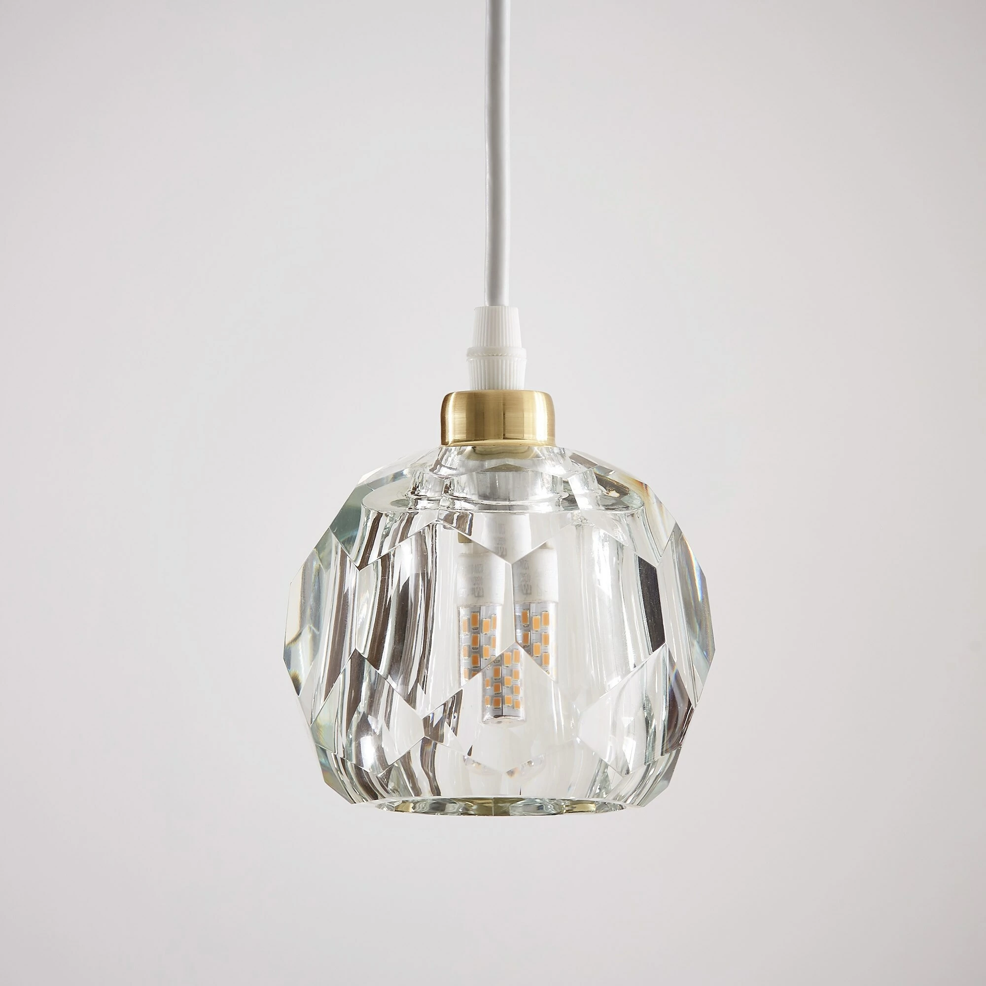 This stunning Round Crystal LED Pendant / Chandelier is the perfect addition to your kitchen, bar, kitchen island, staircase, entrance, living room, or dining room. The polished brass metal base is corrosion-resistant and durable, while the crystal shade creates a comforting glow. The high-quality crystal is glittered and translucent, creating an elegant and modern look. The warm white LED light provides a warm and inviting glow. Whether you’re entertaining guests or just looking to add some glamour to your space, the Crystal LED Pendant is sure to make a statement.