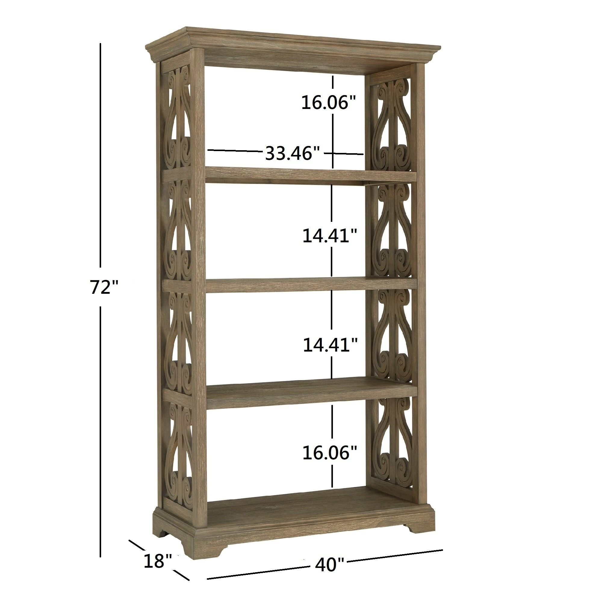 Add a majestic furniture piece to your space with the Gannon Wire Brushed Oak Finish 40” Wood Bookcase by iNSPIRE Q® Artisan. Sculpted wood details create eye-catching elements while the wood construction provides durability and longevity. The bookcase features four fixed shelves that have a rich wire brushed oak finish that go well in a variety of design schemes.