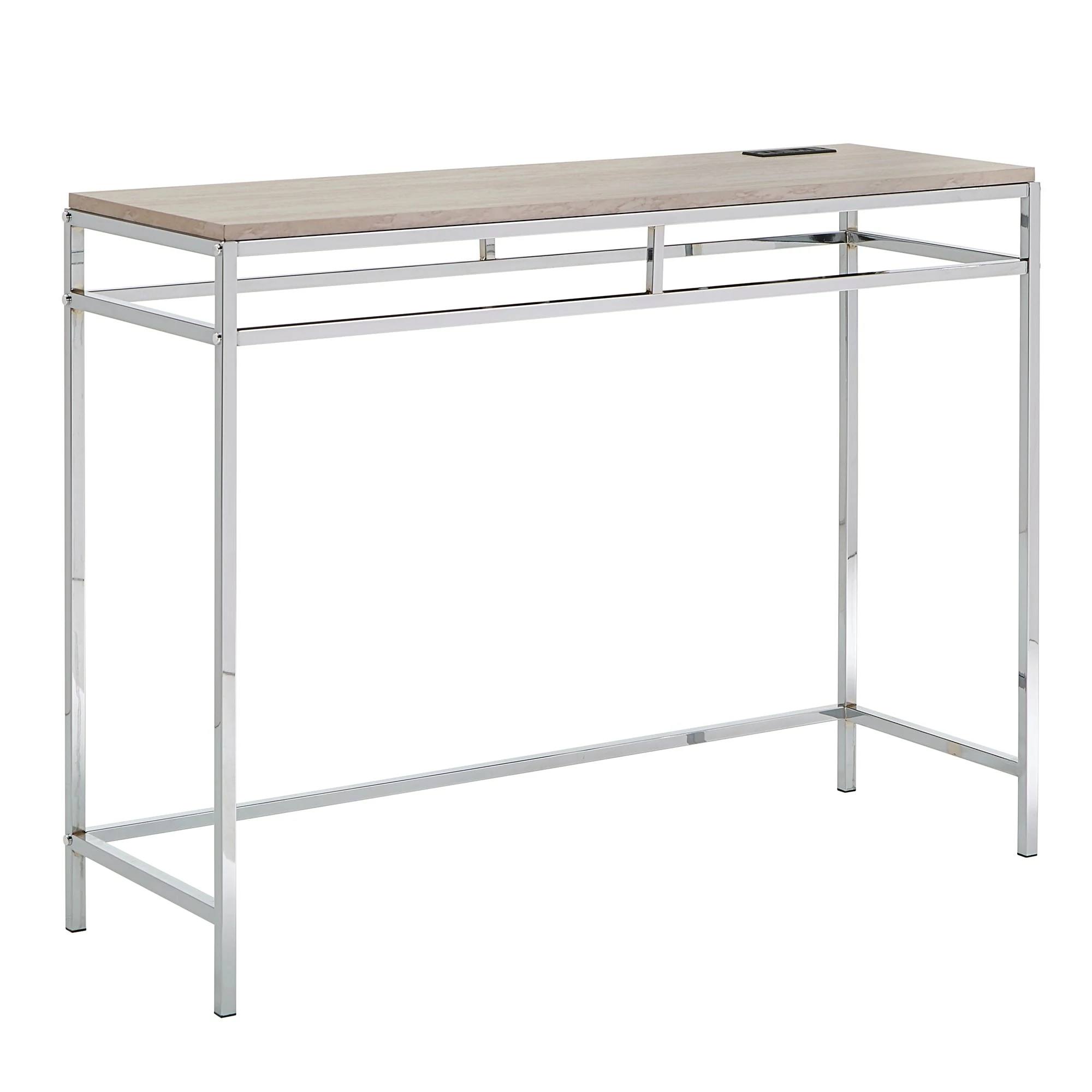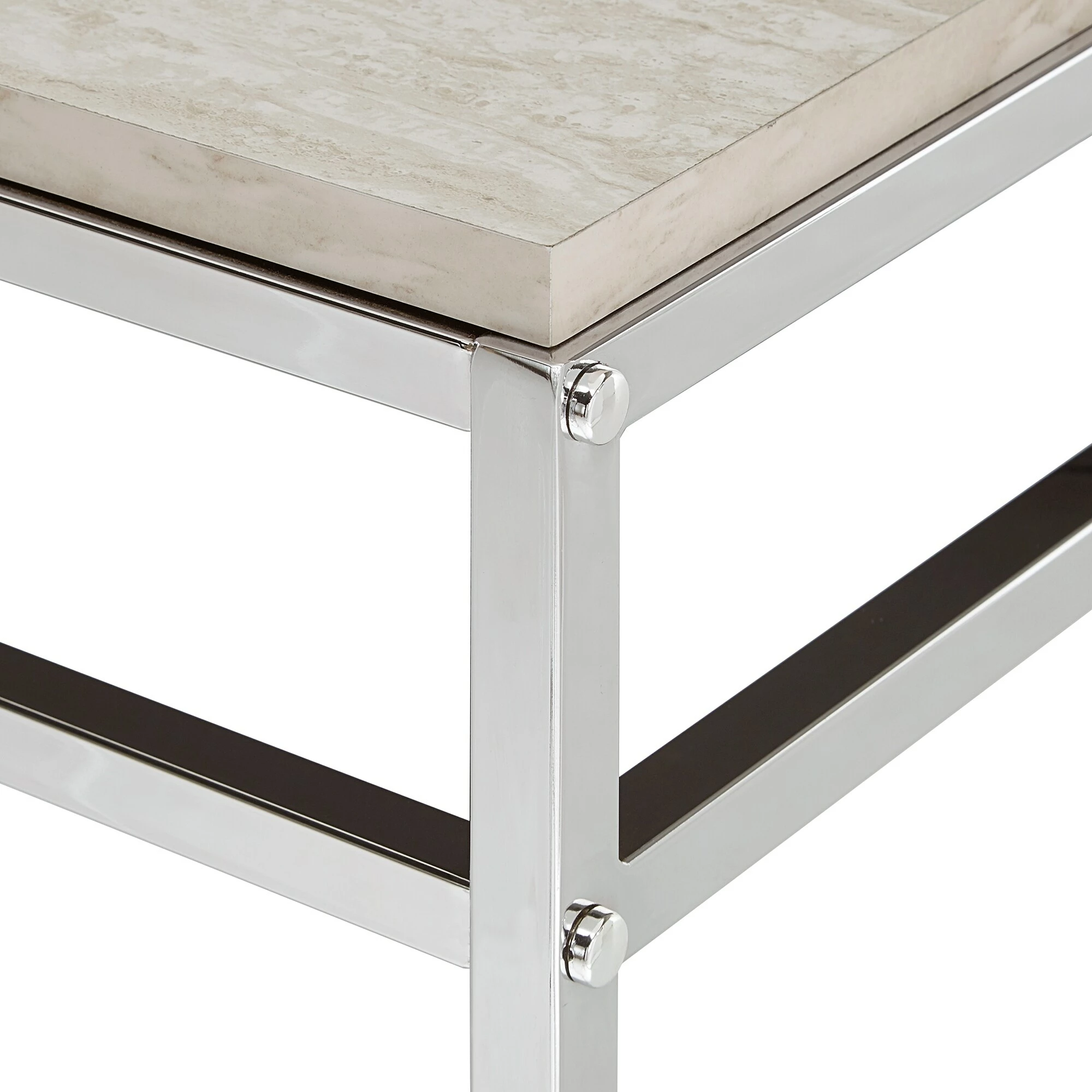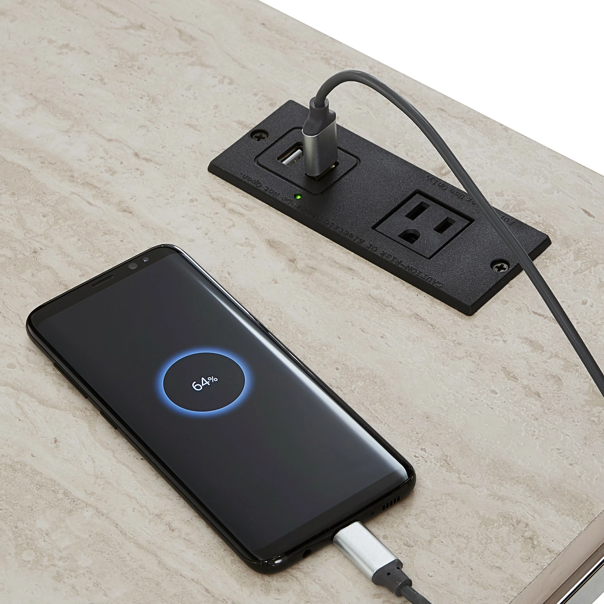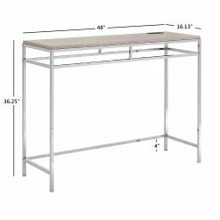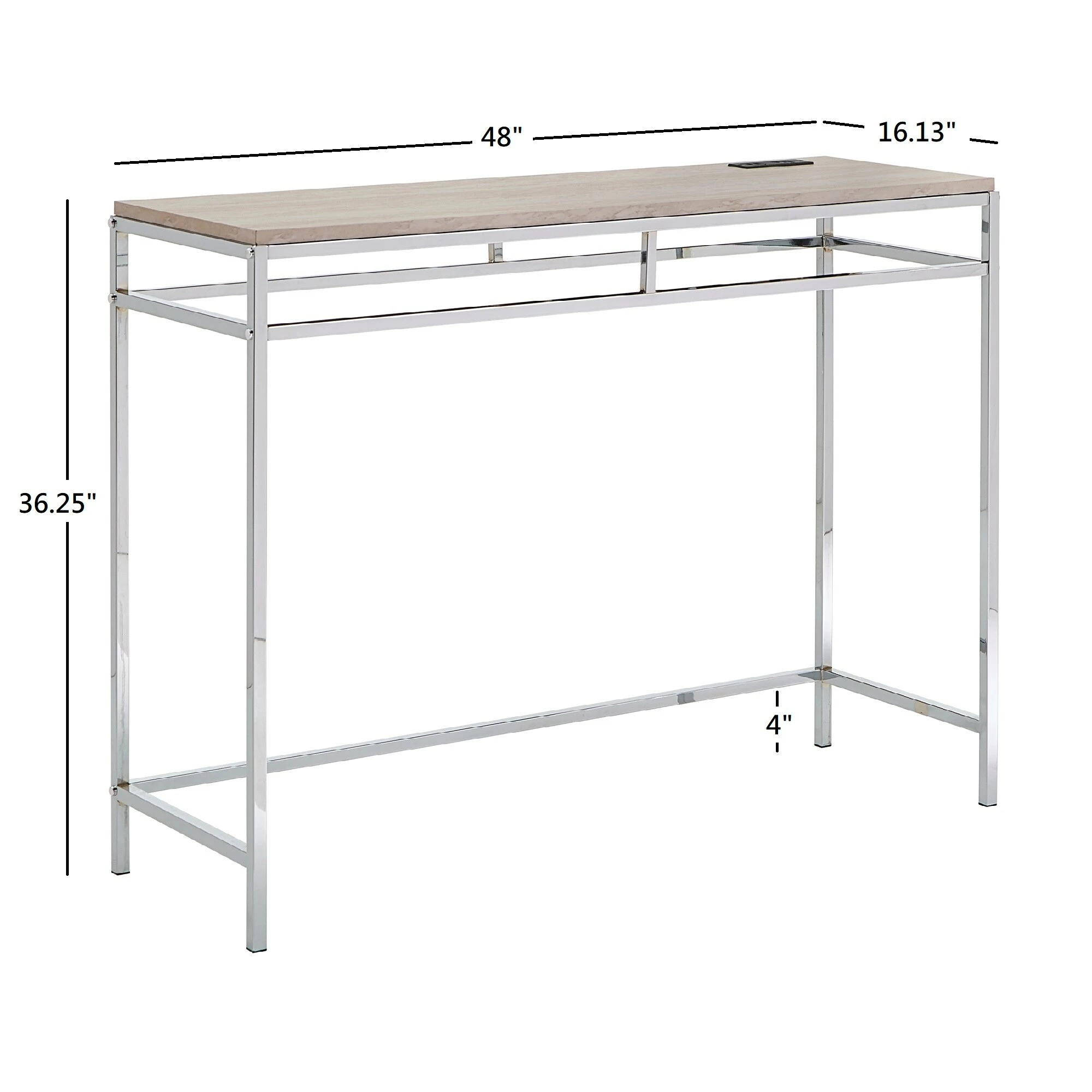 Glam styling meets classic accents in this sleek rectangular cutout desk. This Chrome Finish Counter Height Desk with Faux Marble Top and USB Charging Port is sure to become your new favorite space to work on homework, journal, and catch up with friends on social media! With a convenient power outlet and 2 USB charging ports built right into the top of the desk, you’ll never have to worry about your electronics losing charge while working on priority projects- we know how time consuming it can be to find an available outlet. Light finish smooth touch faux marble graces the top of this desk to add a simple classic styling, while the chrome capped accents and base add a sophisticated glam vibe in order to complete your home office in a stylish way!