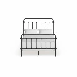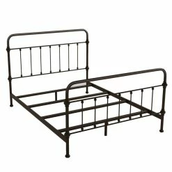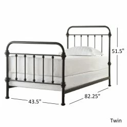 This charming old-school antique iron bed offers a classic style that looks fabulous in a rustic or traditional home. The antique finish gives this bed frame a truly vintage look that appears beautifully authentic. The bed’s combination of straight and curved lines provides flowing elegance that complements nearly any style of bedroom decor.