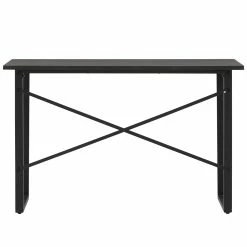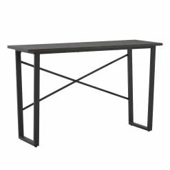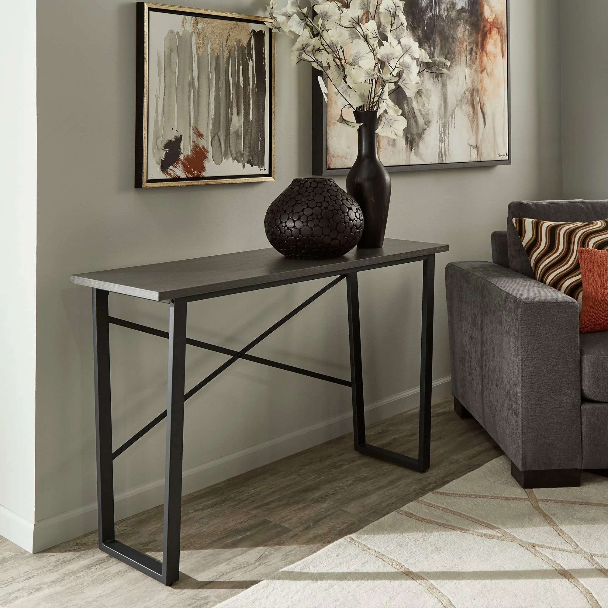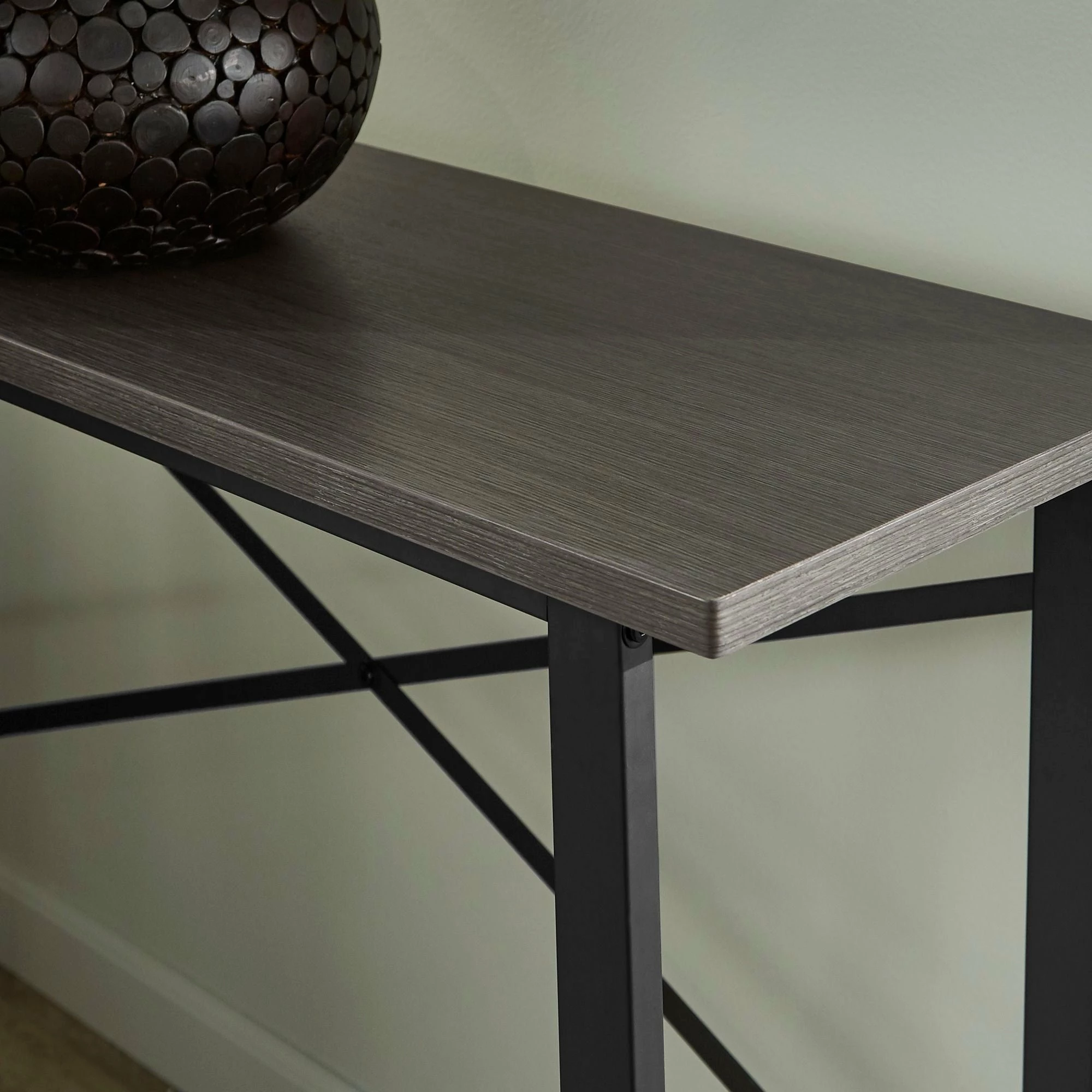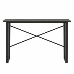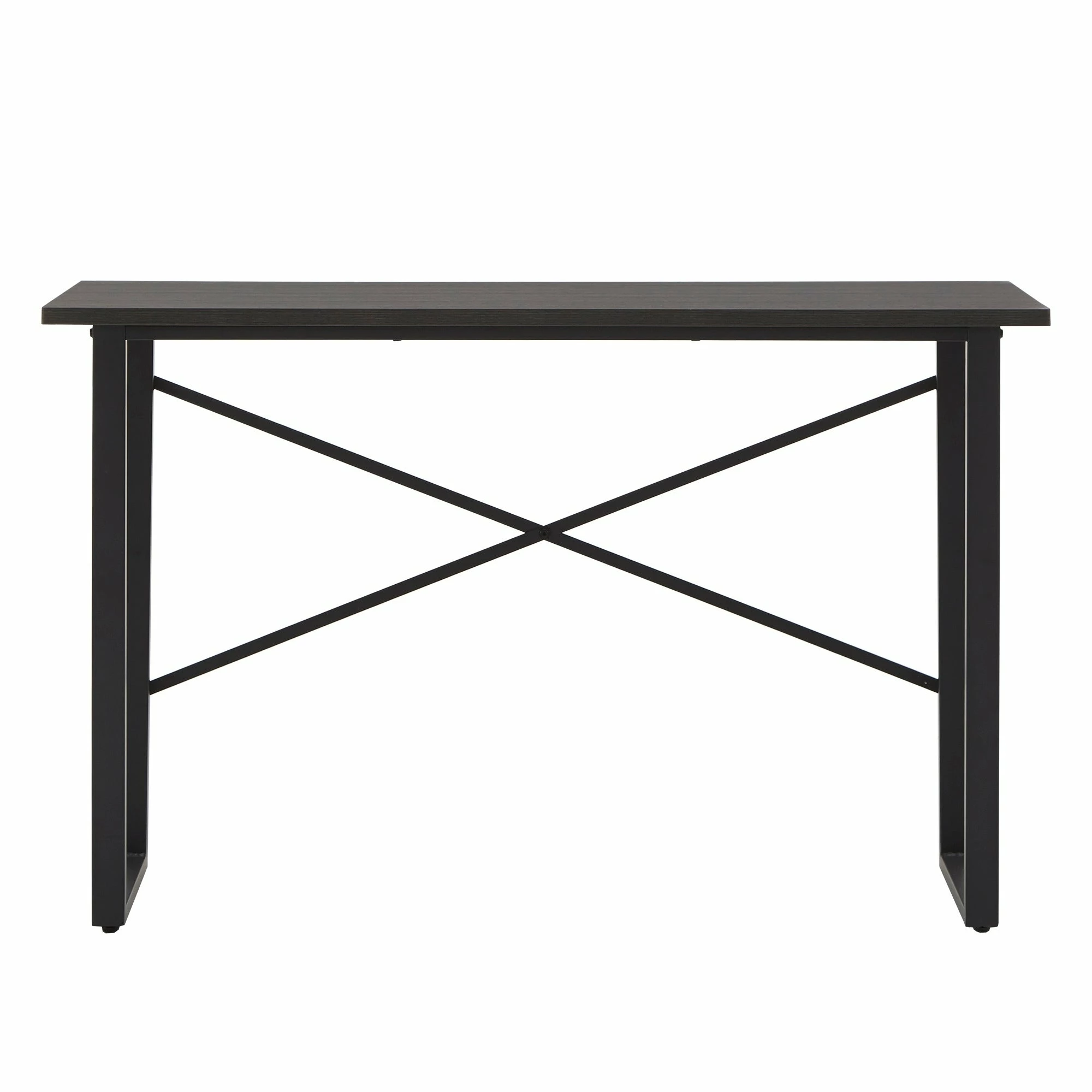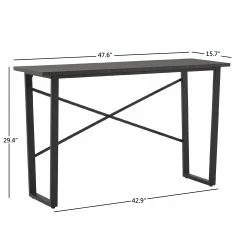 Place the Granada table by iNSPIRE Q Modern behind your sofa for a instant living room update with modern appeal. The X-back detail and strong geometric legs are crafted of matte black, powder-coated metal and topped with a woodgrained top to style this accent table with future-leaning influence. Display photo frames and other decor accents or simply create surface space for your entryway when you introduce this contemporary piece of furniture.
