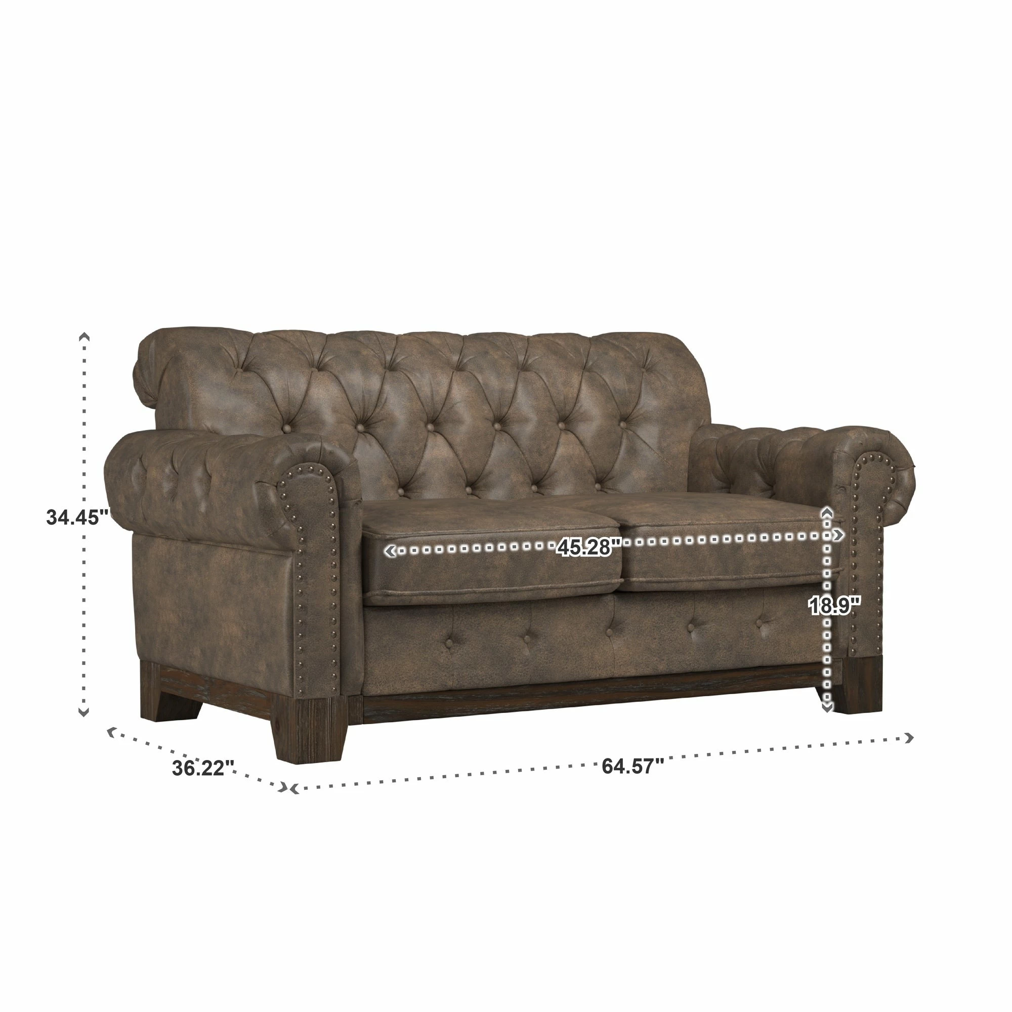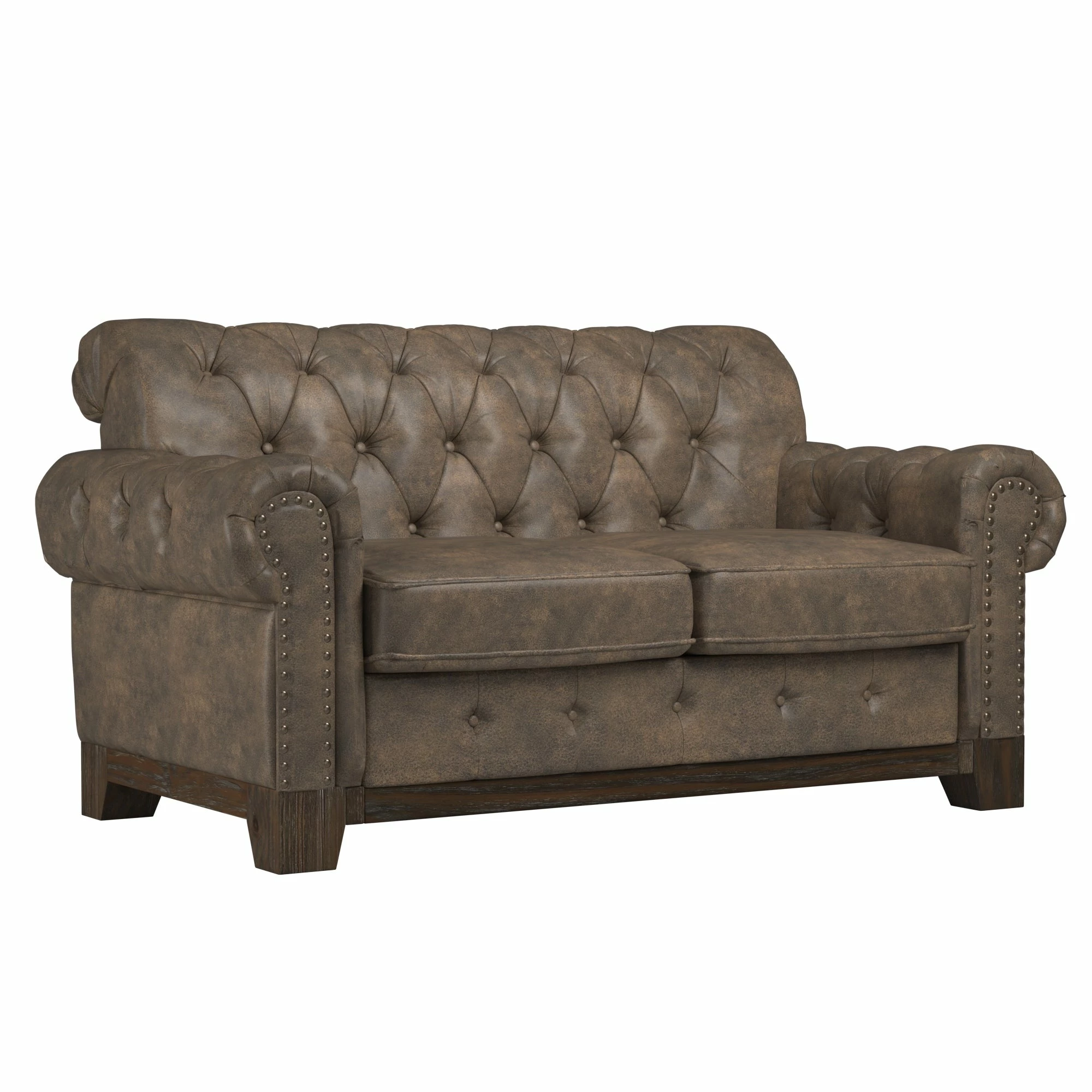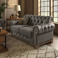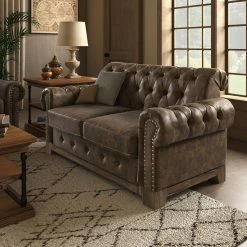 Handcrafted for perfection, this Greenwich Tufted Rolled Arm Chesterfield Loveseat from iNSPIRE Q Artisan is designed to optimize comfort. This loveseat features a lush classic design with scrolled backrest and arms, deep tufts, and antiqued bronze nail heads. You will love relaxing in this luxurious and inviting loveseat.