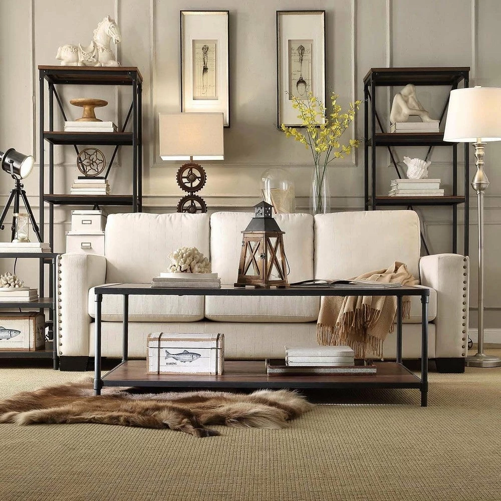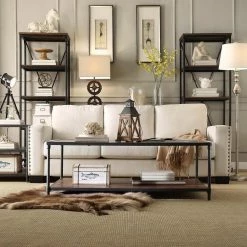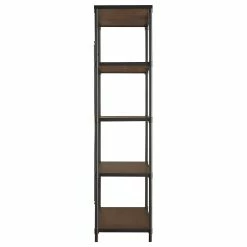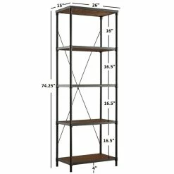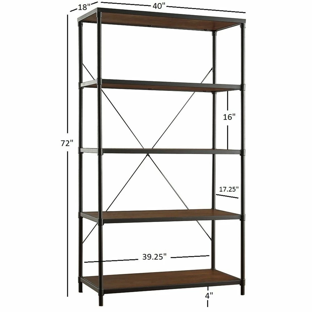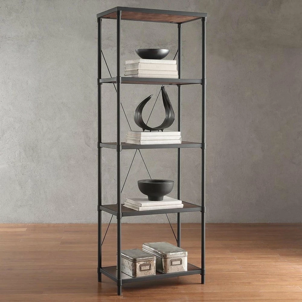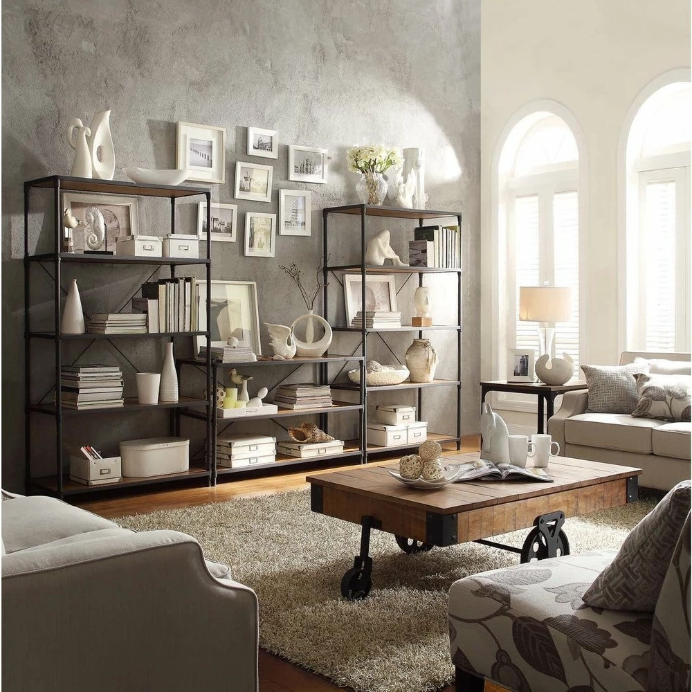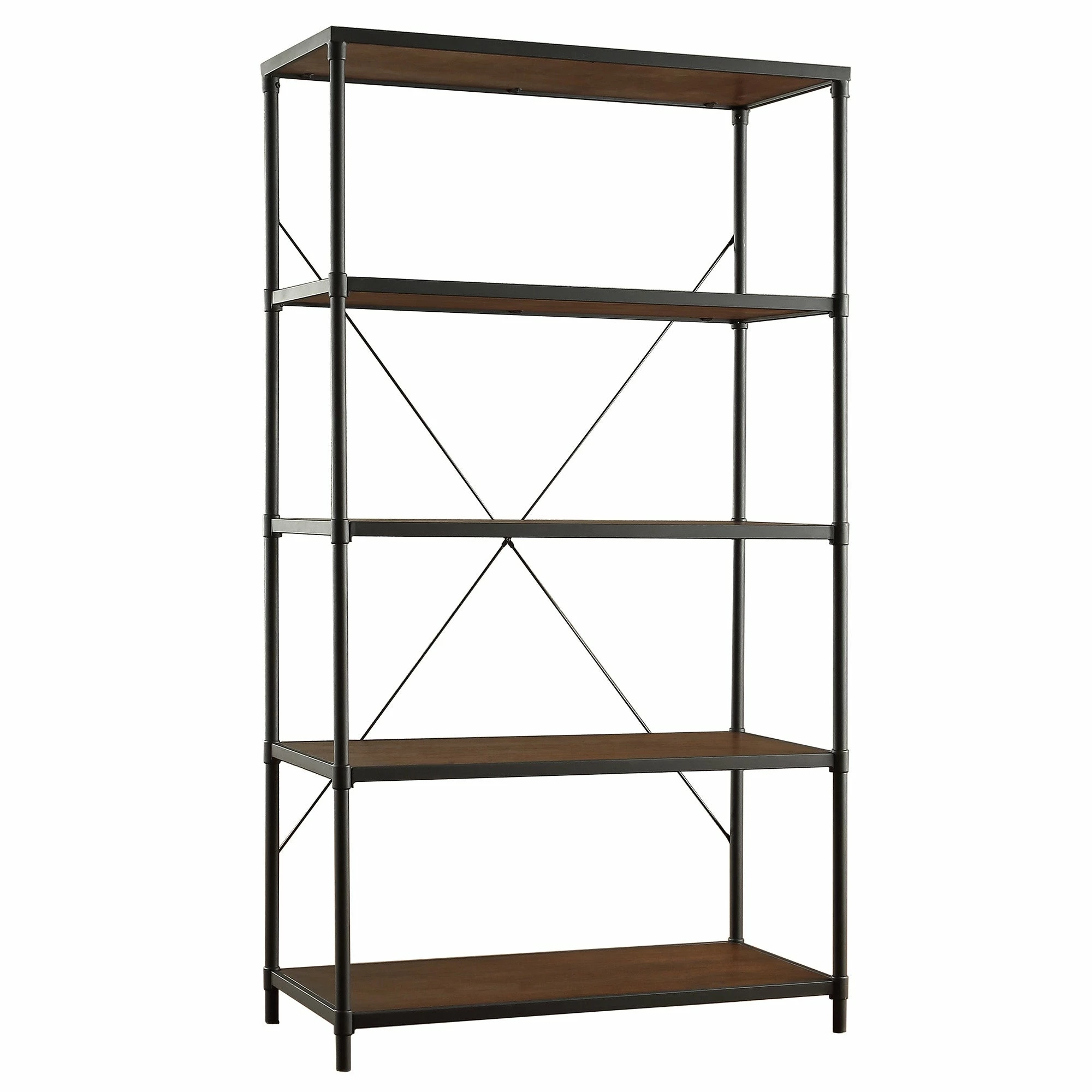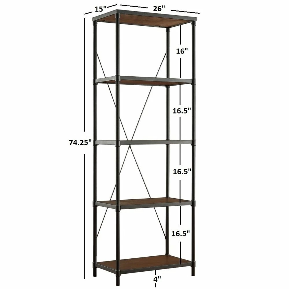Display all your favorite books, vases, and keepsakes on the four roomy shelves of this Harrison bookcase. Featuring a metal pipe frame in painted finish, this bookcase offers sturdy support and durable service. An open back with an x-shaped brace enhances the classic industrial look of this bookcase.
