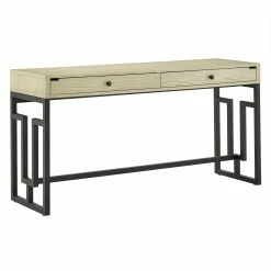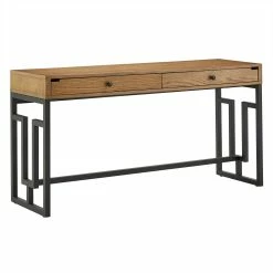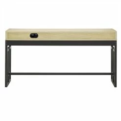 Simple, classy, and functional, the Hartley 2-Drawer Desk with Power Outlet by iNSPIRE Q Classic offers the perfect workspace for any home. Inspired by Art Deco themes, this charming desk features a strong black metal base and a distressed wood top. This spacious desk comes equipped with two drawers to store writing essentials and one power outlet to keep your electronics charged as you work.