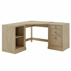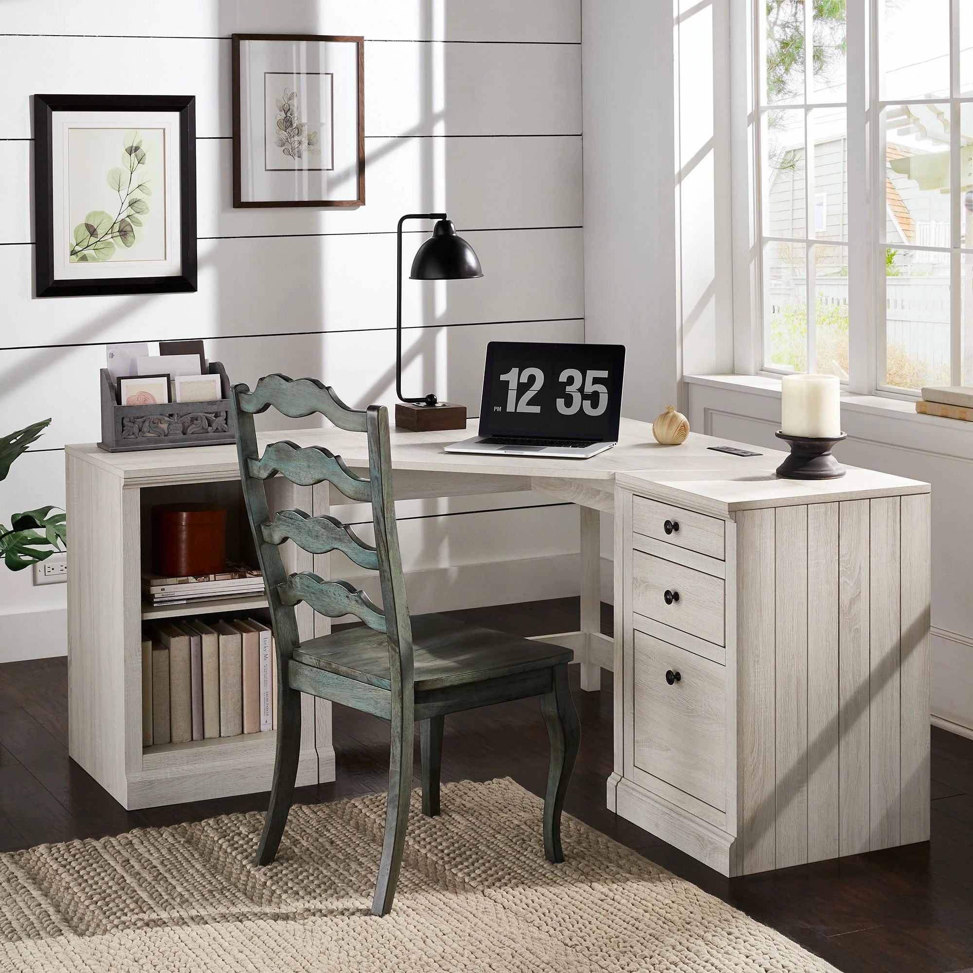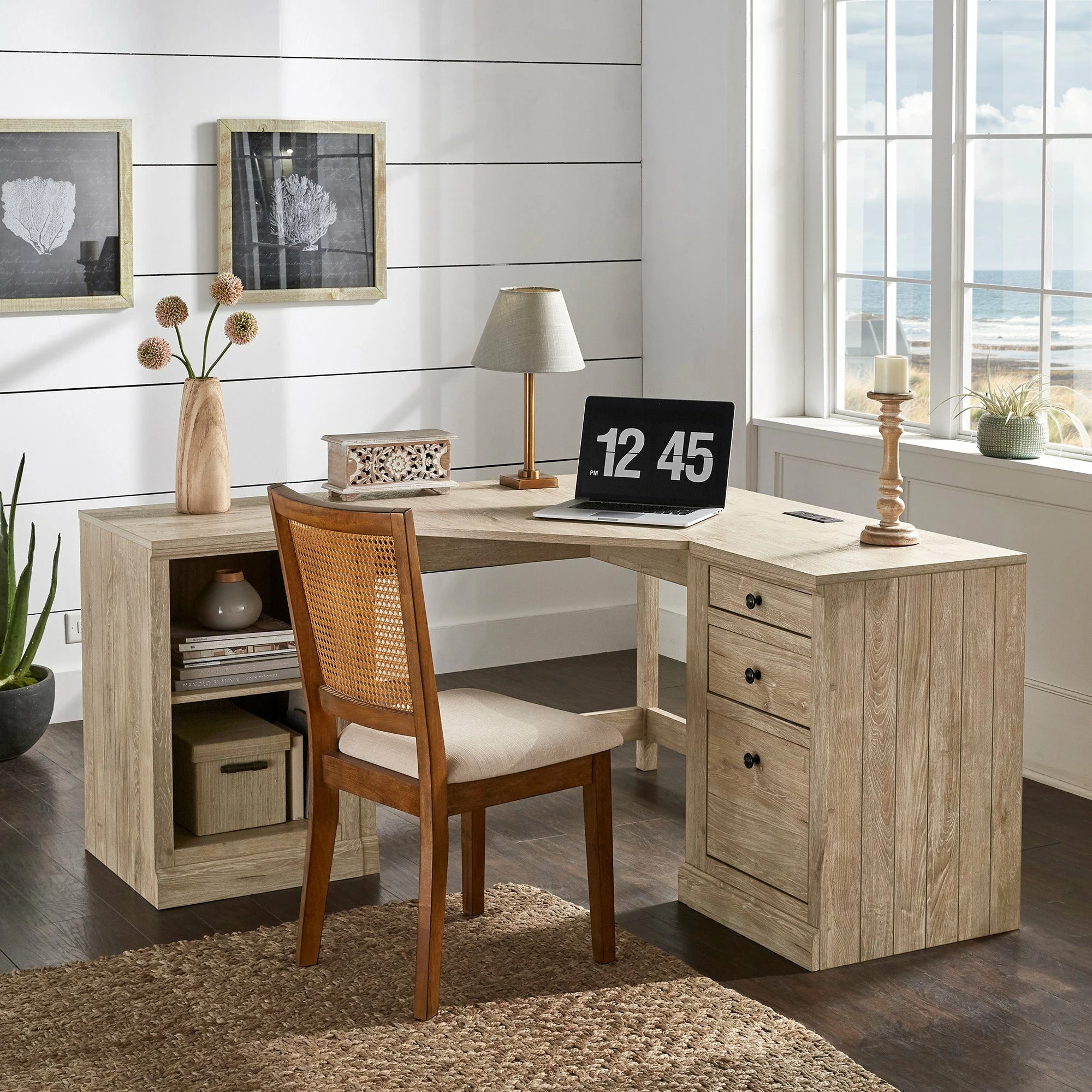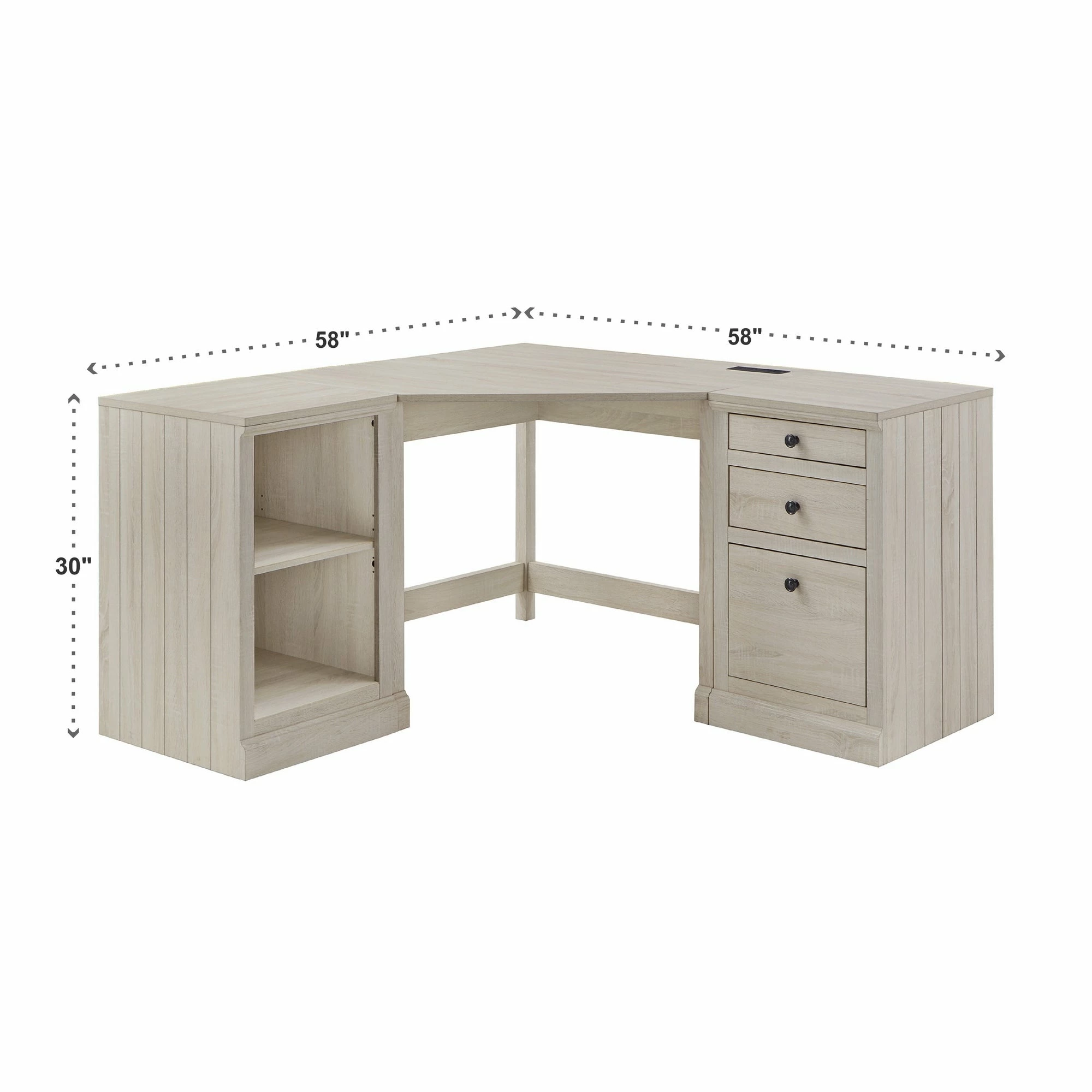 Organize your office with the Hinesburg 40 in. Corner Desk with USB Chargers and 3-drawer File Cabinet by iNSPIRE Q Classic. All the workspace you need in a compact design. Includes easy-access two (2) USB ports and two (2) power outlets on the top, so you can keep your devices powered up. The 3-drawer filing cabinet includes a large drawer to hold files, a medium middle drawer, and a top drawer that’s ideal for your supplies.