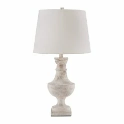 Brighten your home with the soft illumination and timeless charm of this Hyperion table lamp. Crafted from resin for a durable design, the classical, single-light lamp features an urn-shaped base and a white, fabric shade that beautifully diffuses the light. The smooth, off-white finish gives the lamp a rustic look, while the single light provides comfortable, ambient light.