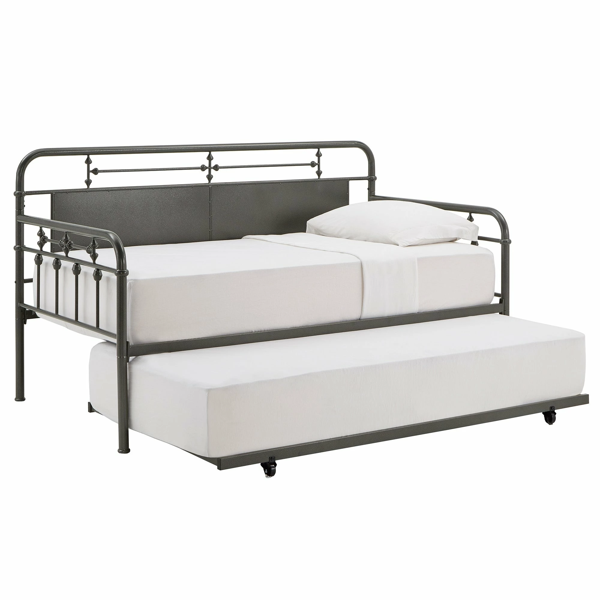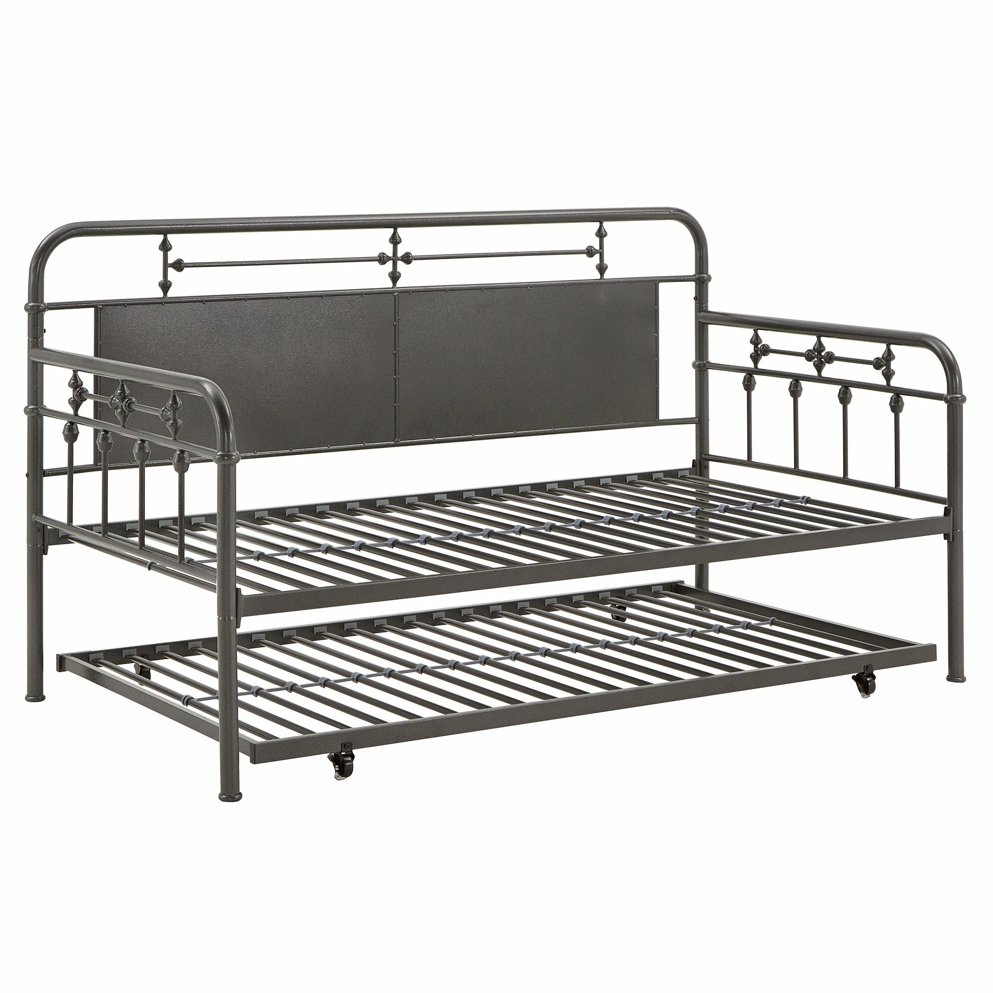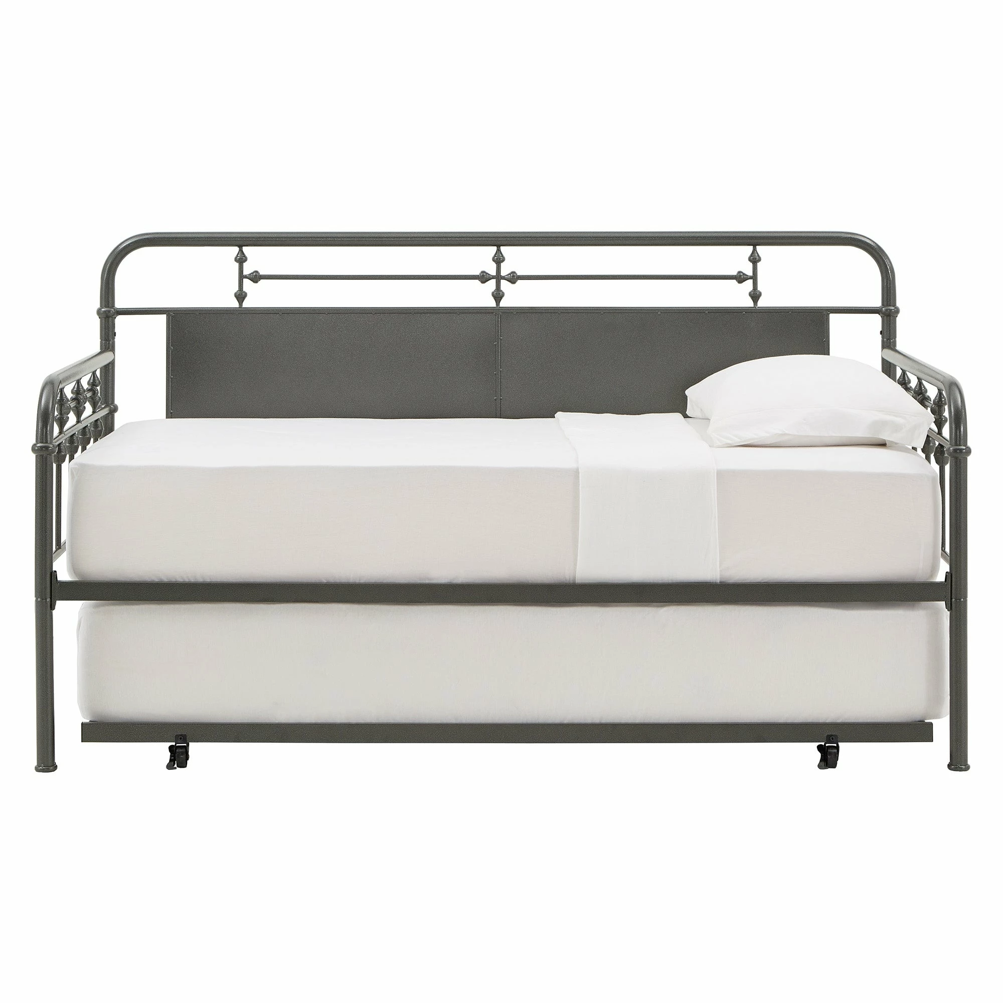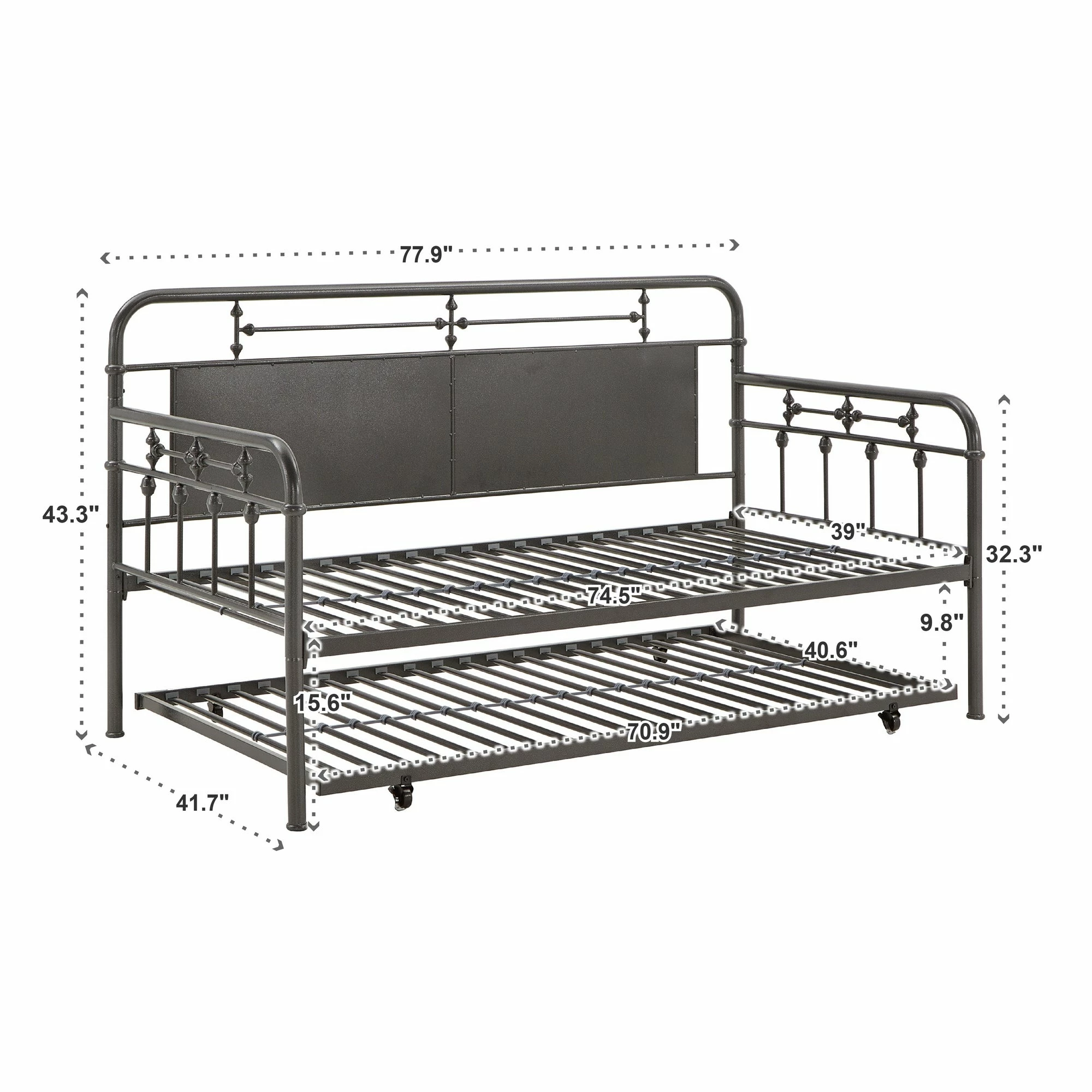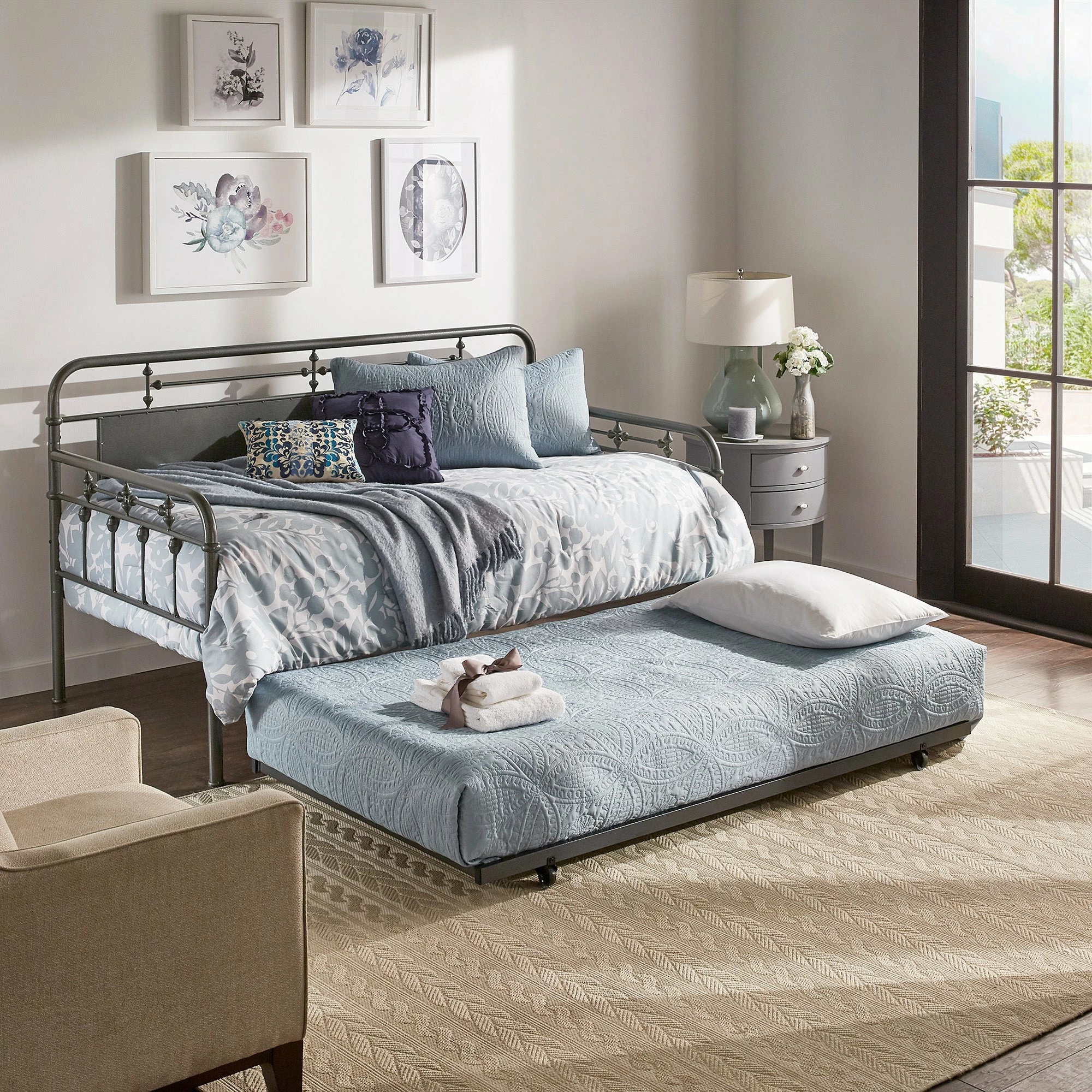 Add some traditional styling to any room of your home with the Imogen Metal Spindle Daybed with Trundle by iNSPIRE Q Classic. Perfect for a multitude of aesthetics, this beautiful daybed features a mottled silver finish and spindle accent joints. A pull-out trundle on caster wheels provides additional sleeping space, so you will always have plenty of room for all your guests.