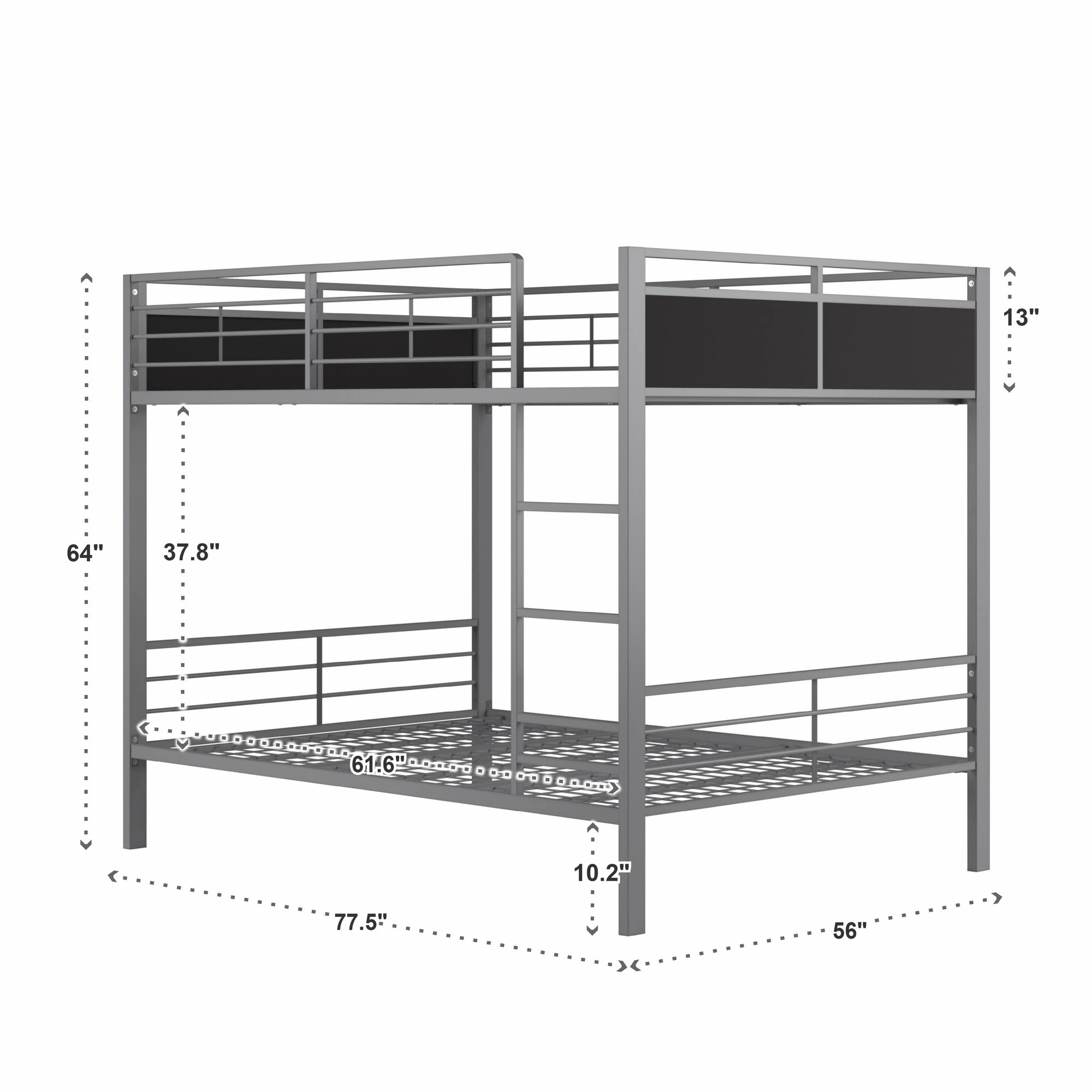 - Clearance between top and bottom bunks: 37.8 in. height