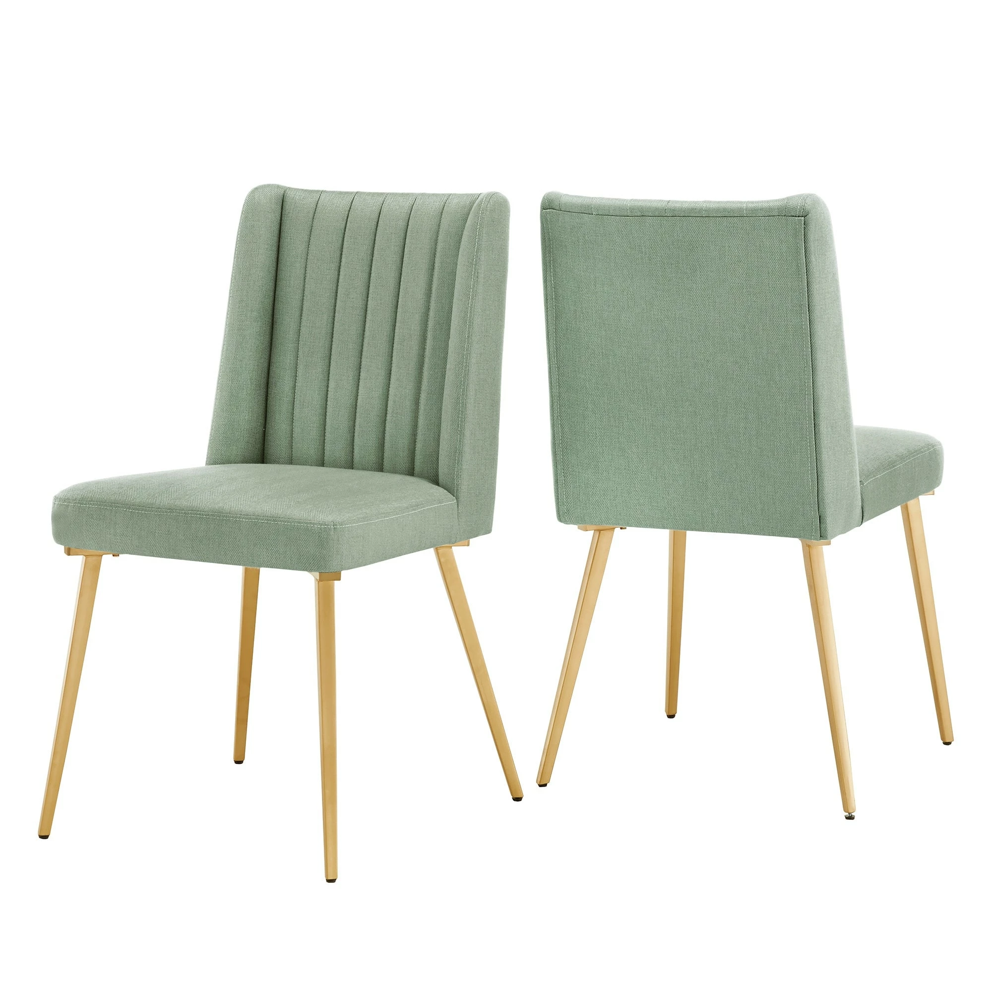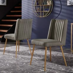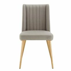 A uniquely modern look and feel are easier to obtain than ever thanks to the Jose Gold Finish Fabric Dining Chair by iNSPIRE Q® Modern. Sit back and relax in comfort with the plush, soft-touch fabric. A fresh take on 70s home décor, these seats feature a unique fin-shaped detail on the backrest for added flair. Gold legs add a subtle bold statement to this piece to compliment well with a minimalistic layout.