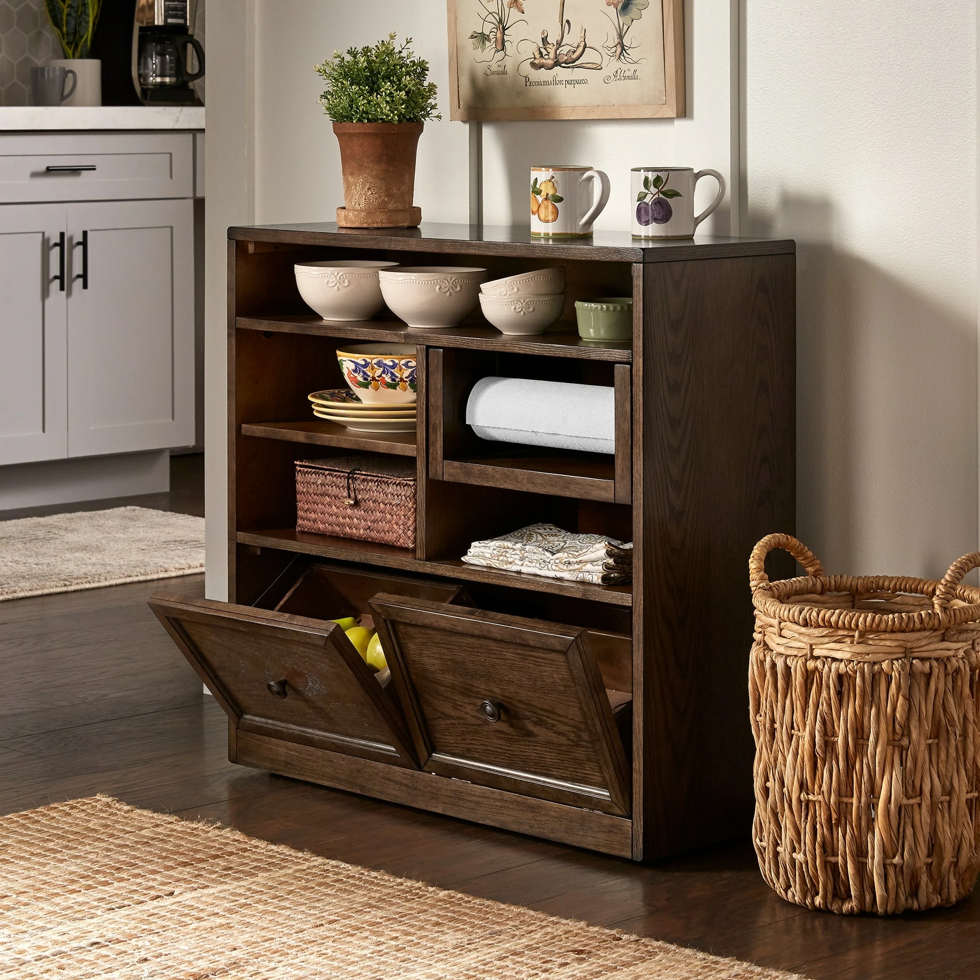 Give your home some timeless style and convenience with the Kai Dark Oak Finish Wood Cabinet by iNSPIRE Q Classic. Coming in a dark oak finish, this beautiful table features a visible wood grain perfect for any modern farmhouse. This versatile piece comes with a variety of shelves and cabinets to store your entertaining essentials. The sturdy wooden construction promises strength for everyday use.