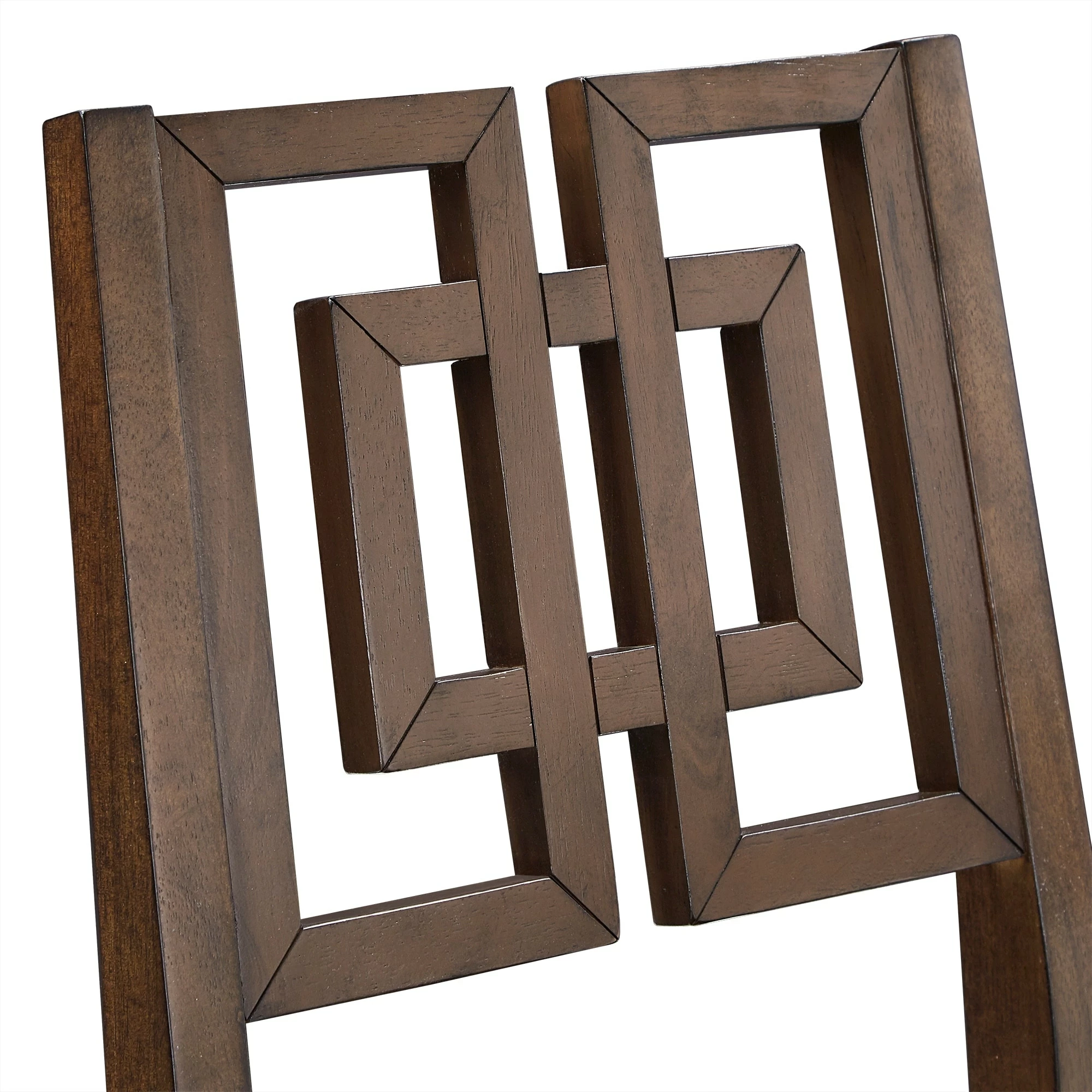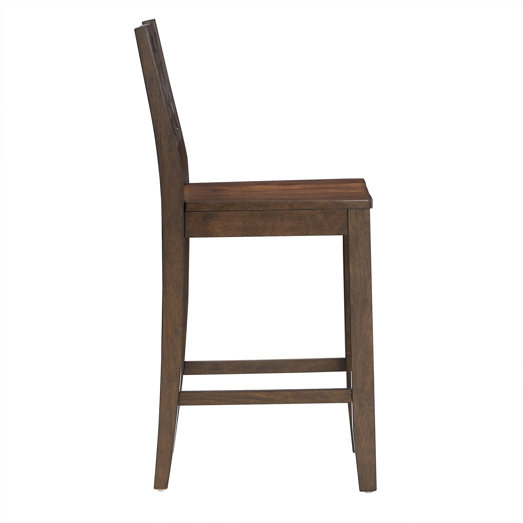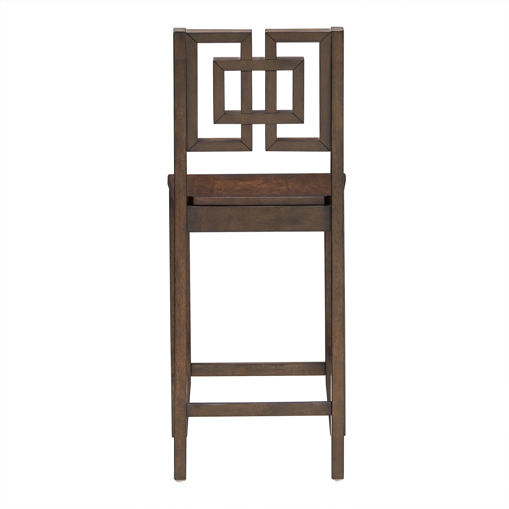 Showcase timeless style in your kitchen with the Kai Ornate Back Counter Height Chairs (Set of 2) by iNSPIRE Q Classic. Coming in a dark oak finish, these beautiful chairs feature a visible wood grain and an ornate-styled chair back perfect for any modern farmhouse. The sturdy wooden construction promises lasting strength while the contoured seat and built-in footrests ensures comfort as you dine.