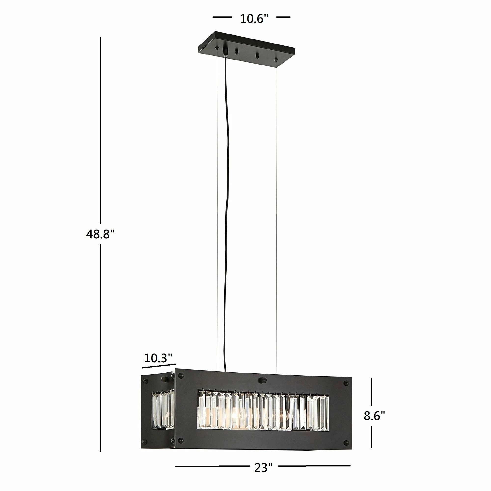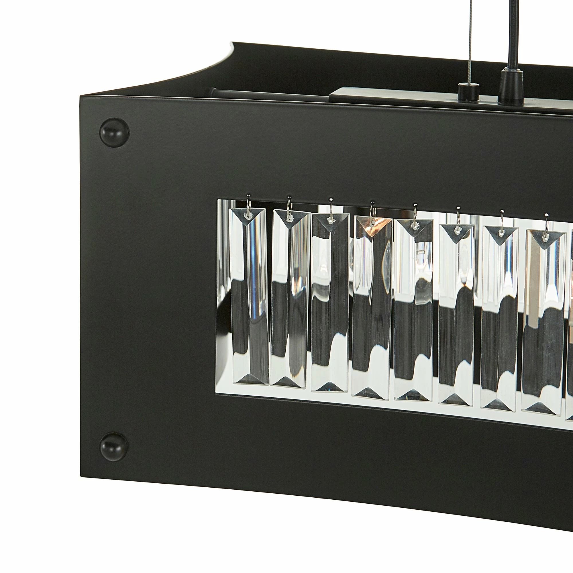 Be the host of the season with the Kayan Black Crystal Chandelier from the iNSPIRE Q Modern Collection as your centerpiece. The matte black finish is simultaneously neutral and bold as it highlights the soft light illuminating through the framed crystals. The steel it is crafted with offers a sharp, clean, industrial look as it turns polished bolts into decoration. This chandelier saves you valuable space in your dining room so you can surround yourself with the people who matter most to you.
