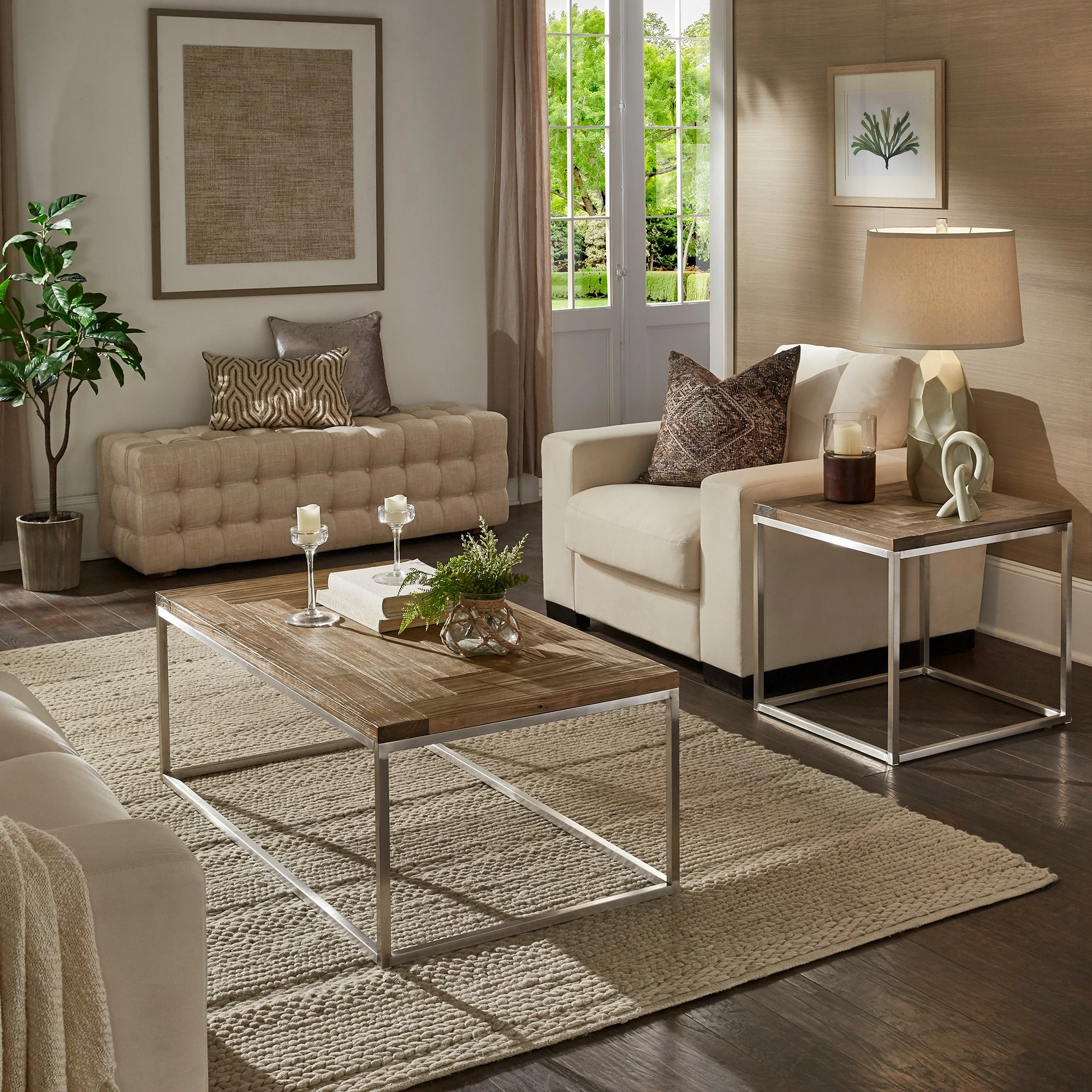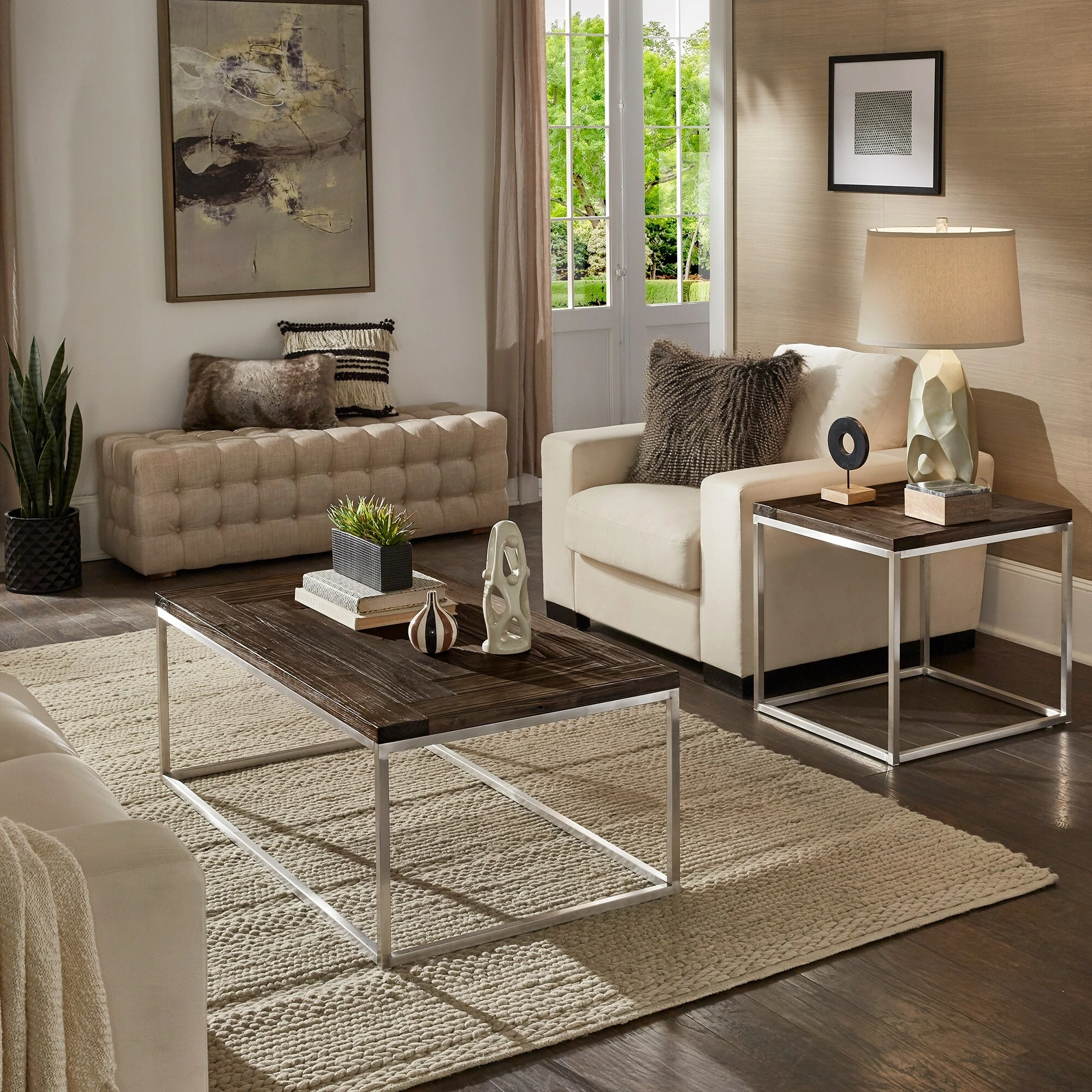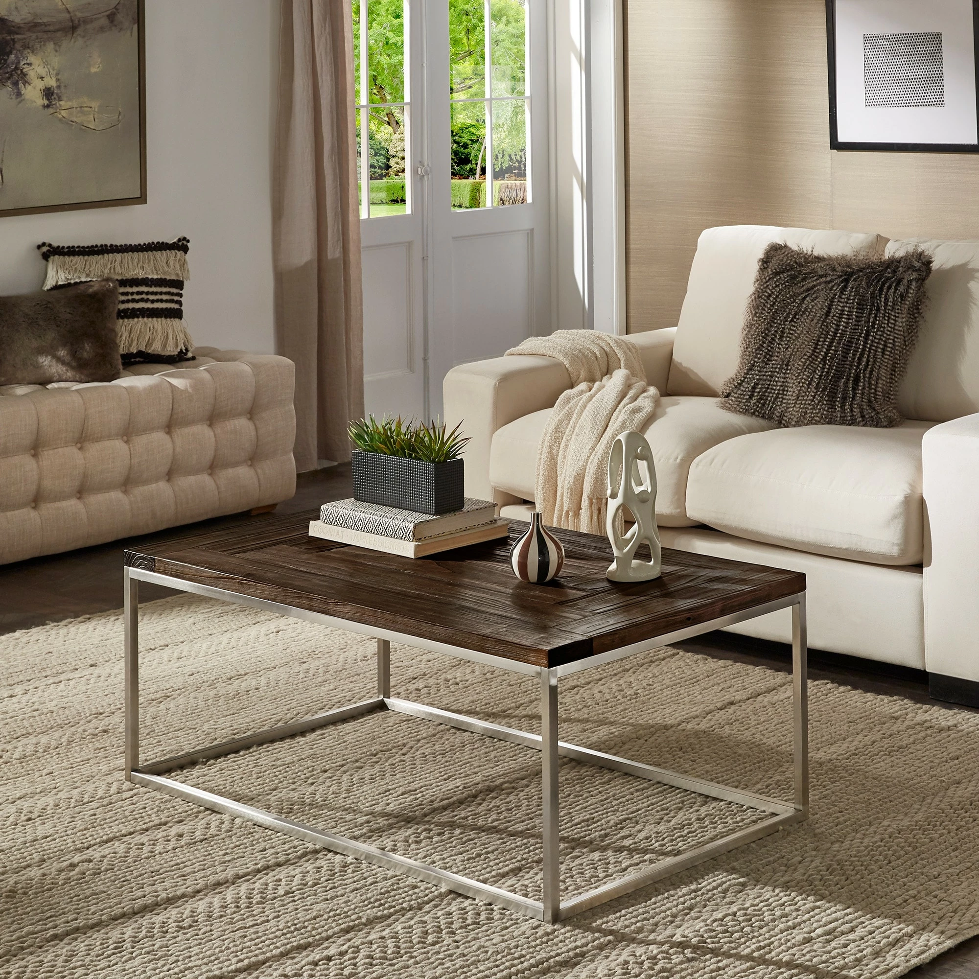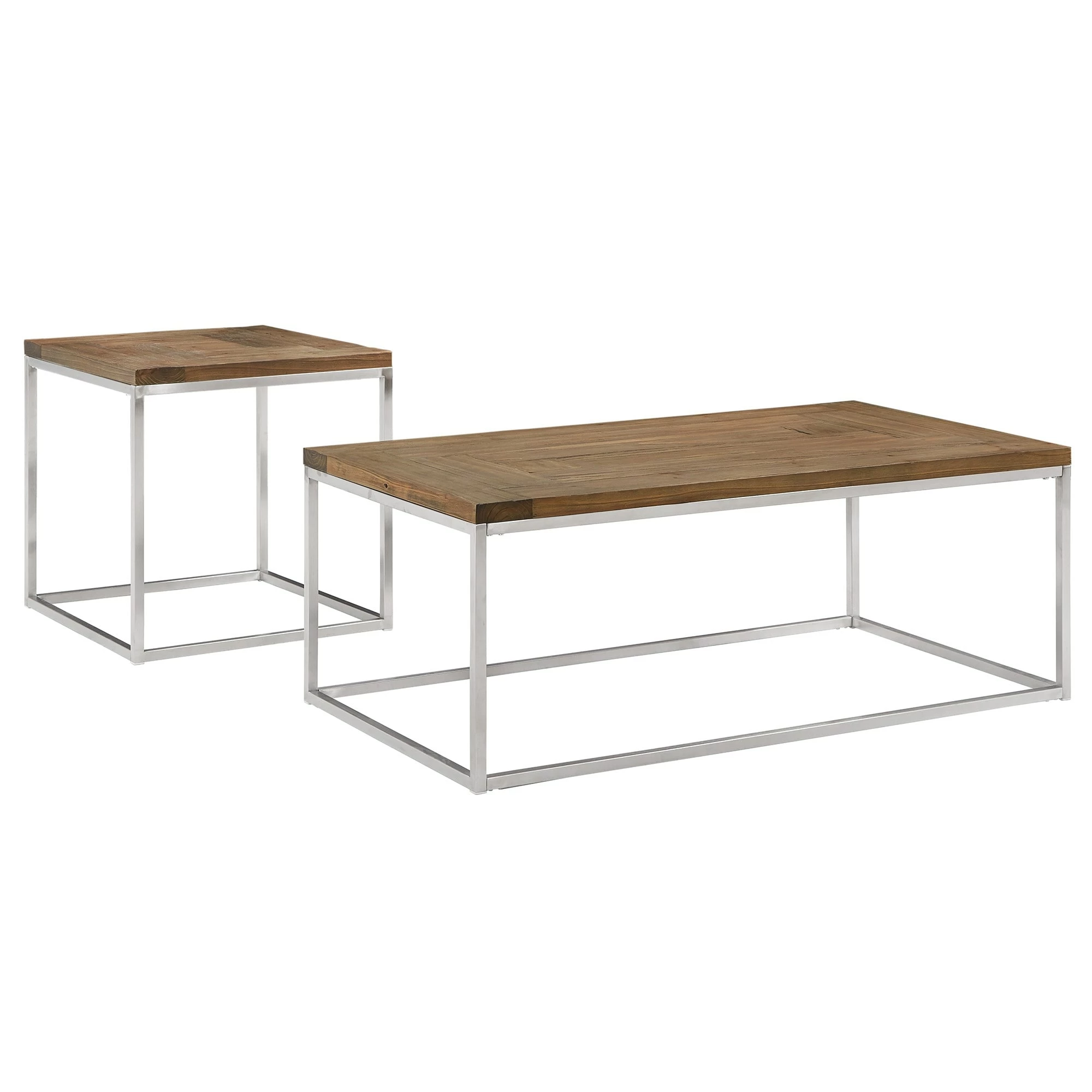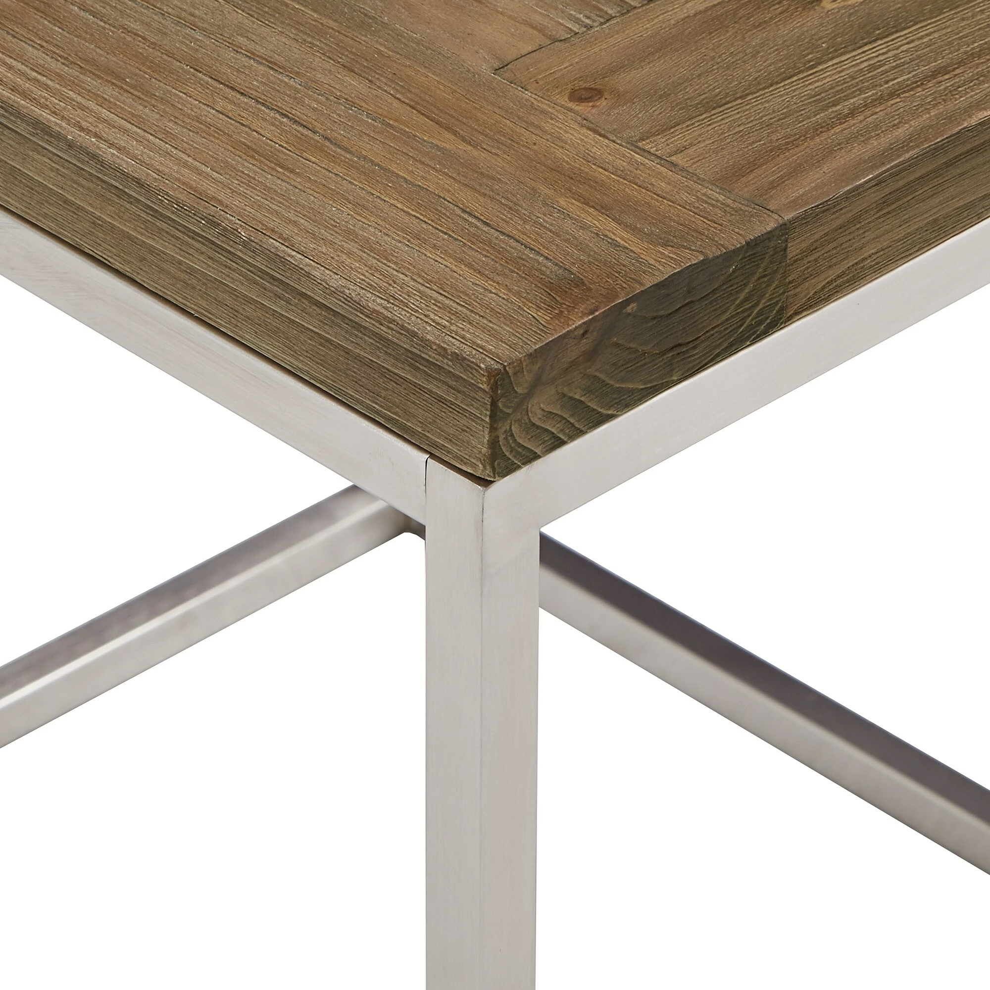 Natural elements are given a modern update with the Keenan Stainless Steel Rectangular Tables by iNSPIRE Q Modern. Perfect for those who love a minimalist statement, these tables feature crisp, clean, and simple silhouettes. Open metal bases are constructed with stainless steel to create a bold contrast against the distressed finish of the wood table tops.
