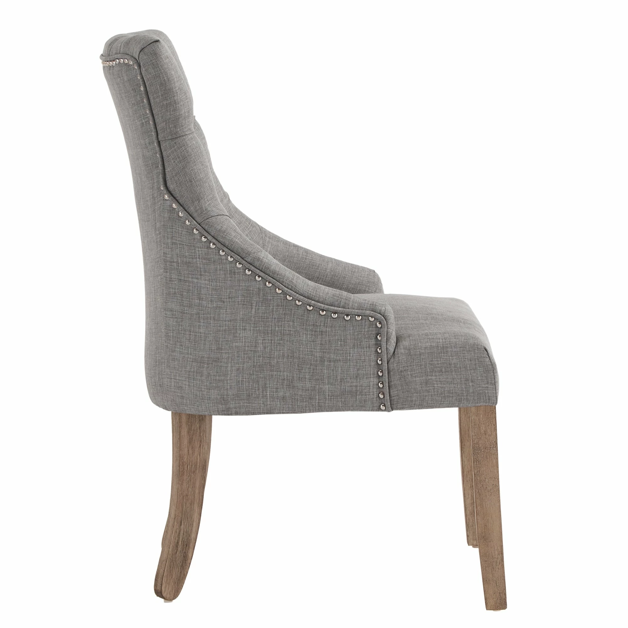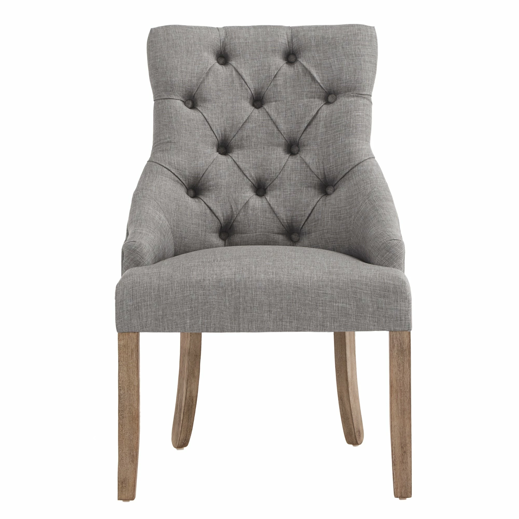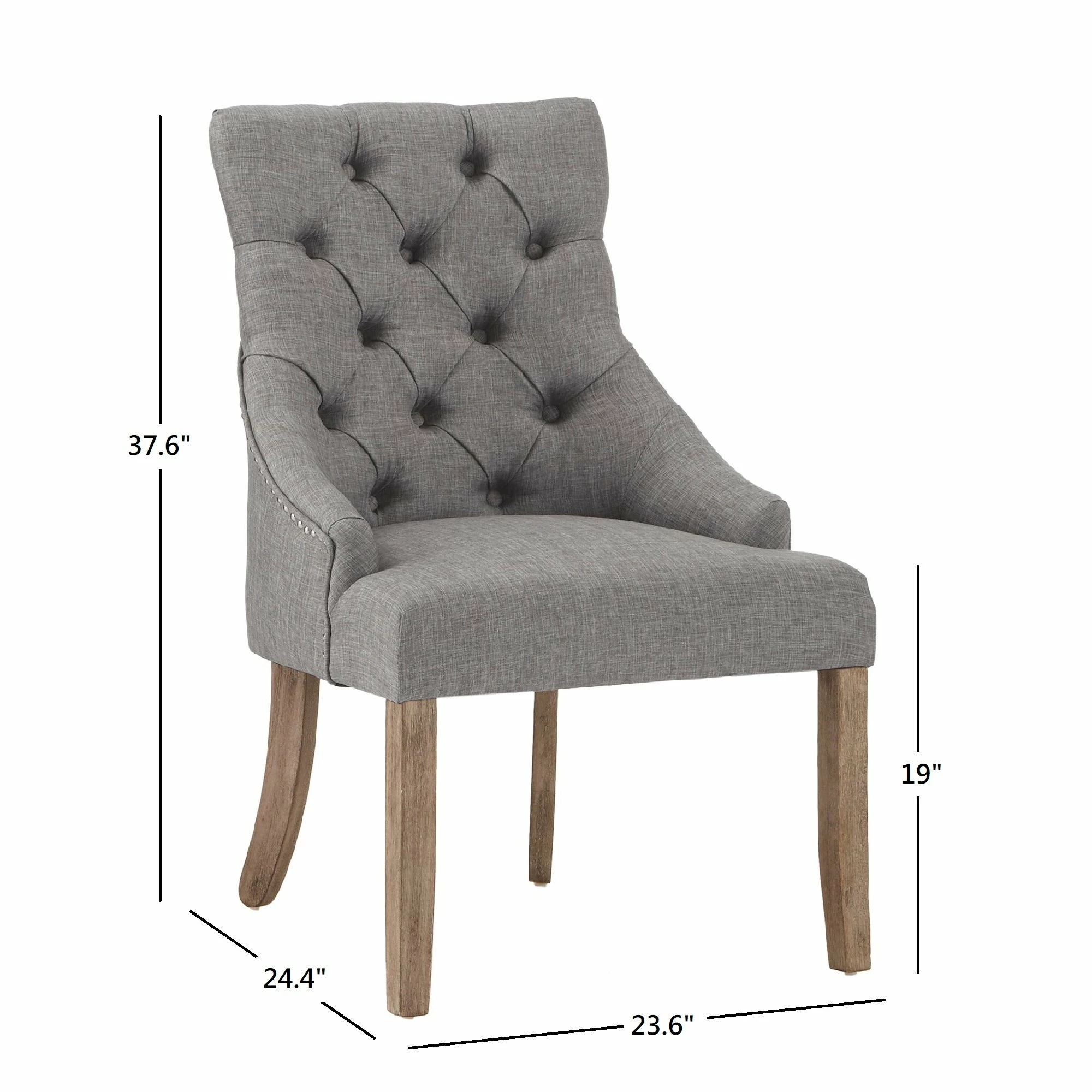 Sit in regal comfort with the traditional Kimpton Linen Tufted Dining Chair by iNSPIRE Q Artisan. This accent chair features lightly distressed legs for a rustic touch, and sloped arms and a curved wingback for elegance. This chair fits perfectly with styles from traditional and transitional to modern farmhouse. Choose from multiple neutral linen upholstery options to complement your decor.