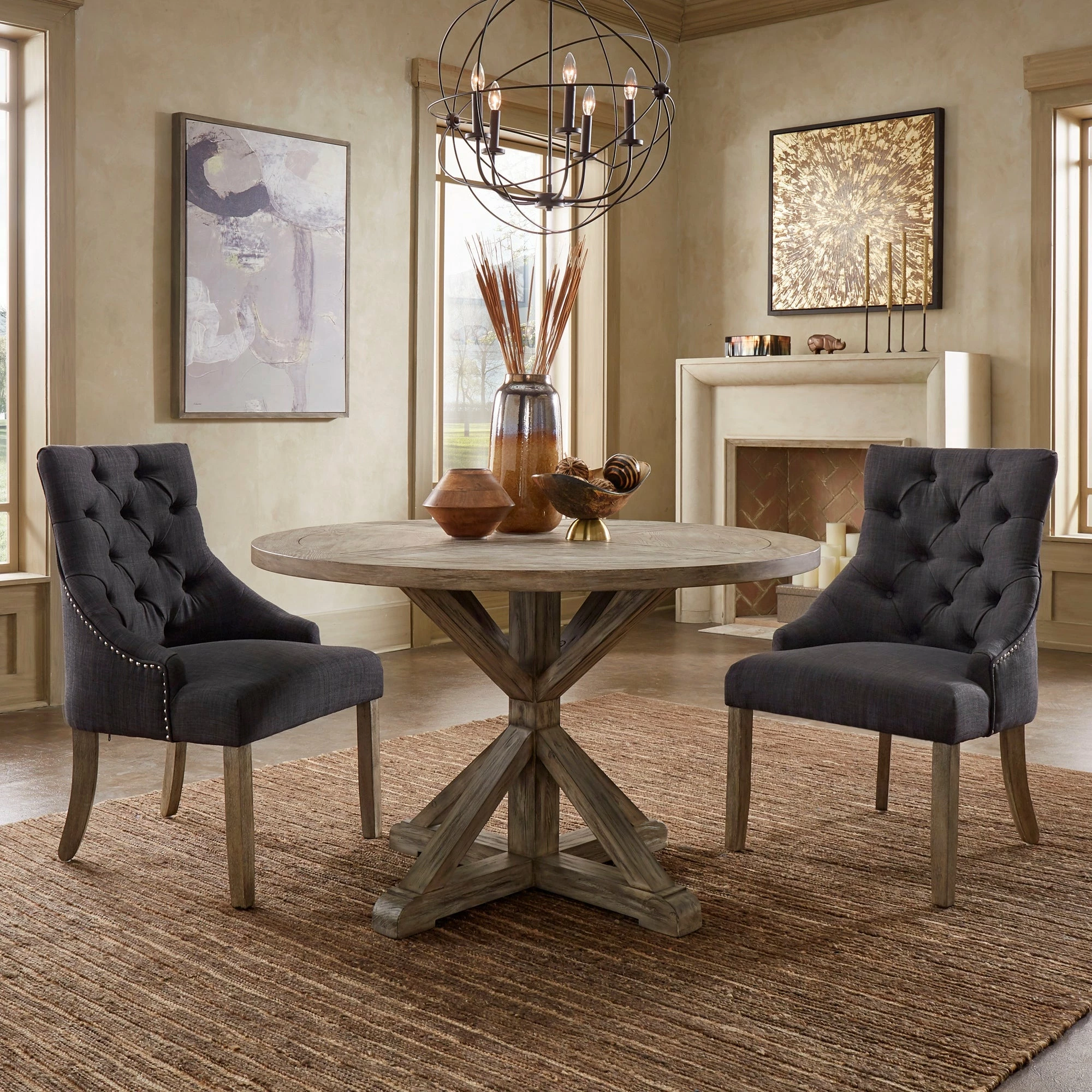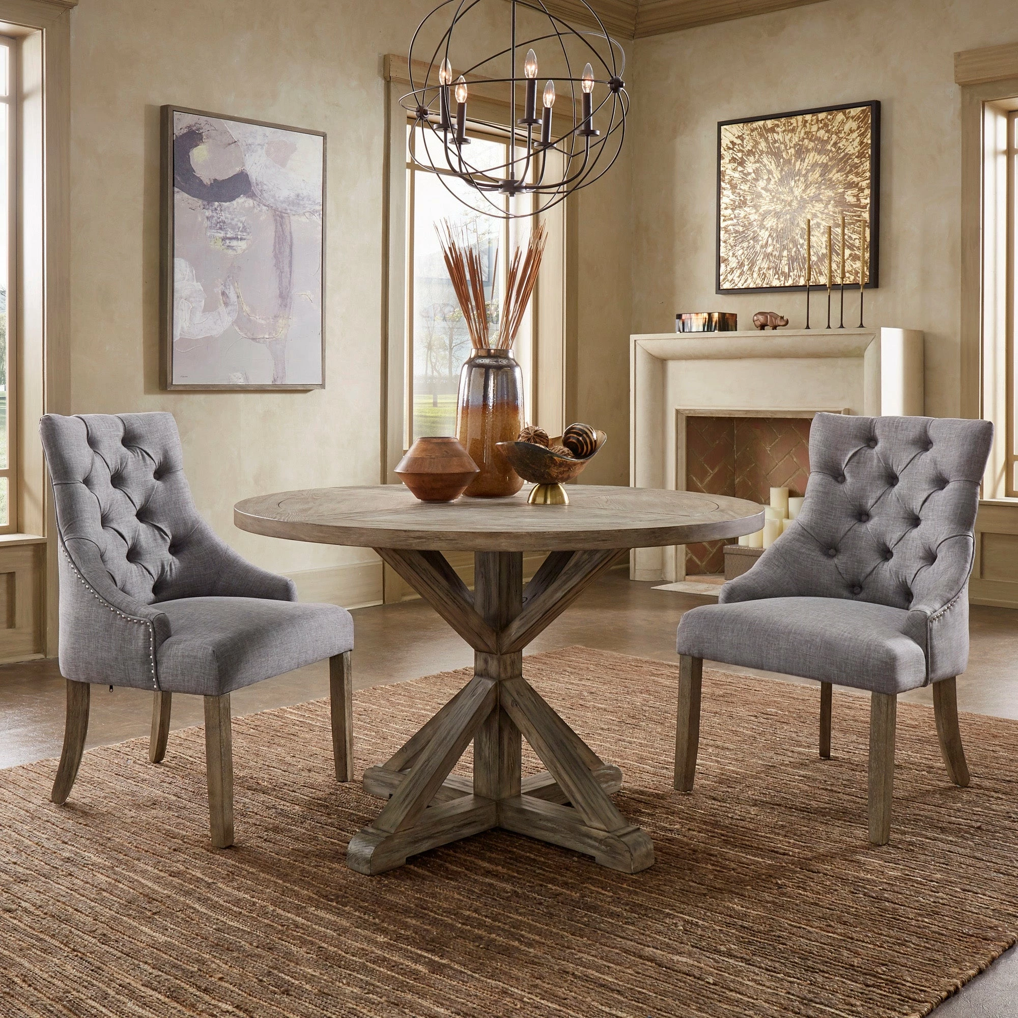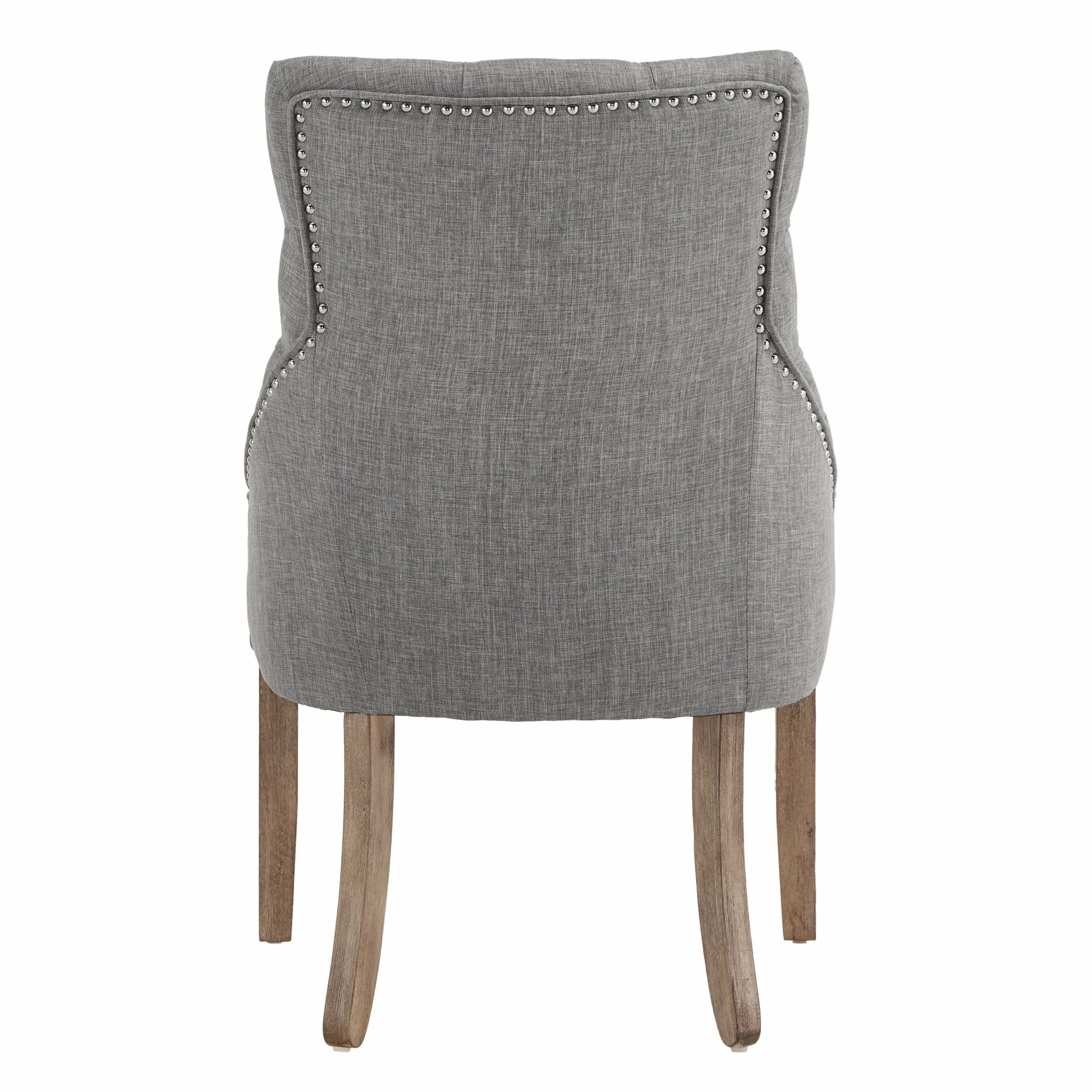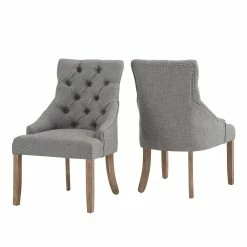 Sit in regal comfort with the traditional Kimpton Linen Tufted Dining Chair by iNSPIRE Q Artisan. This accent chair features lightly distressed legs for a rustic touch, and sloped arms and a curved wingback for elegance. This chair fits perfectly with styles from traditional and transitional to modern farmhouse. Choose from multiple neutral linen upholstery options to complement your decor.