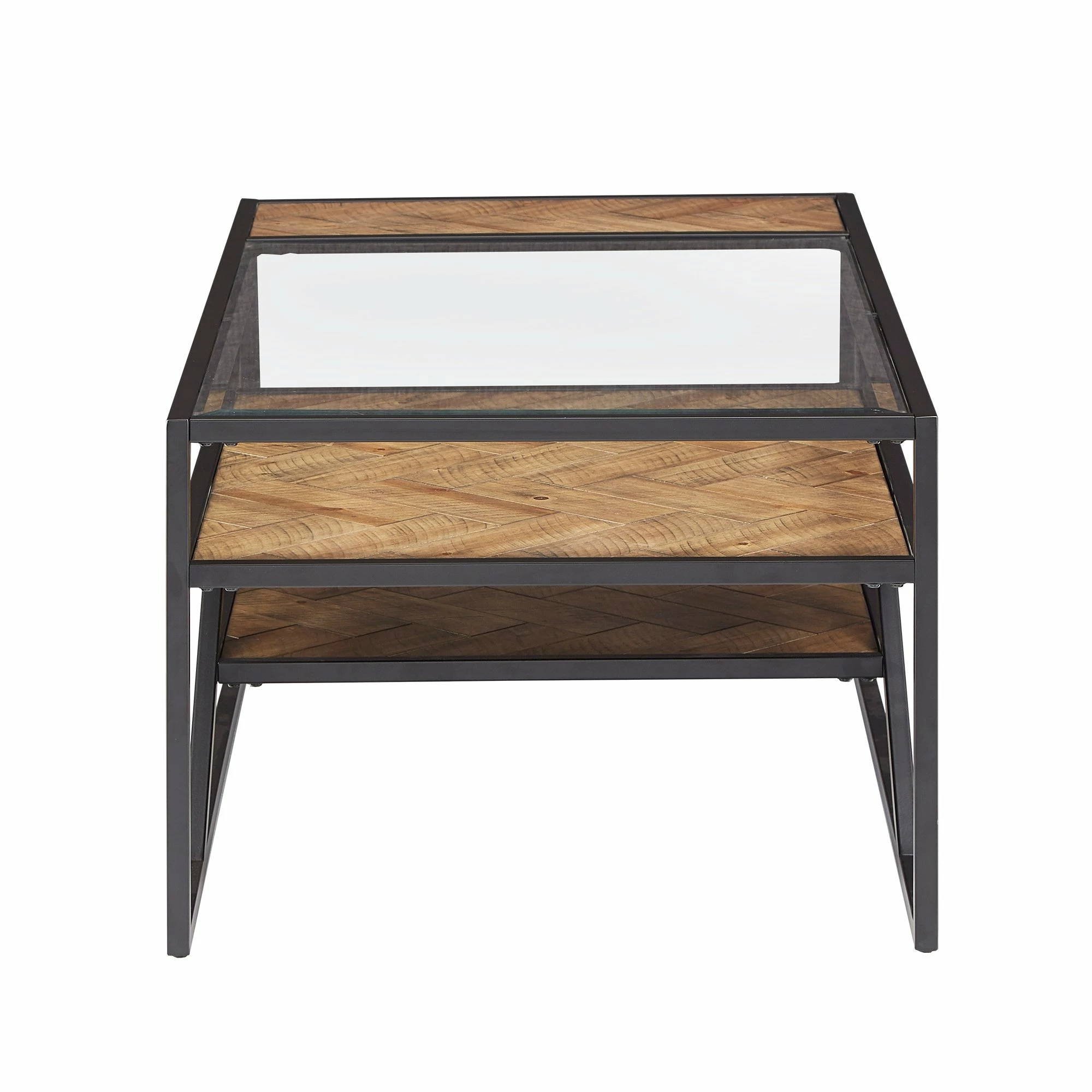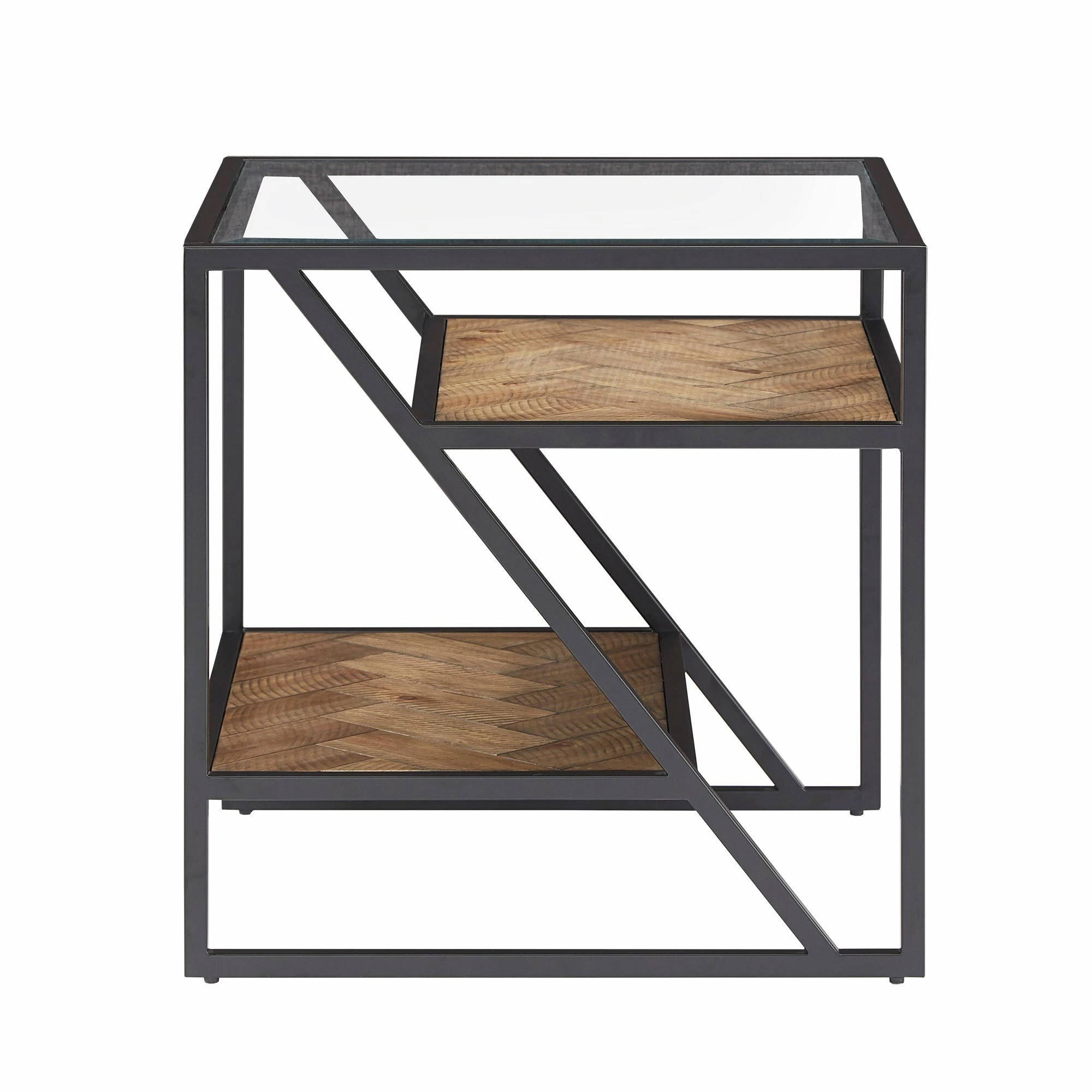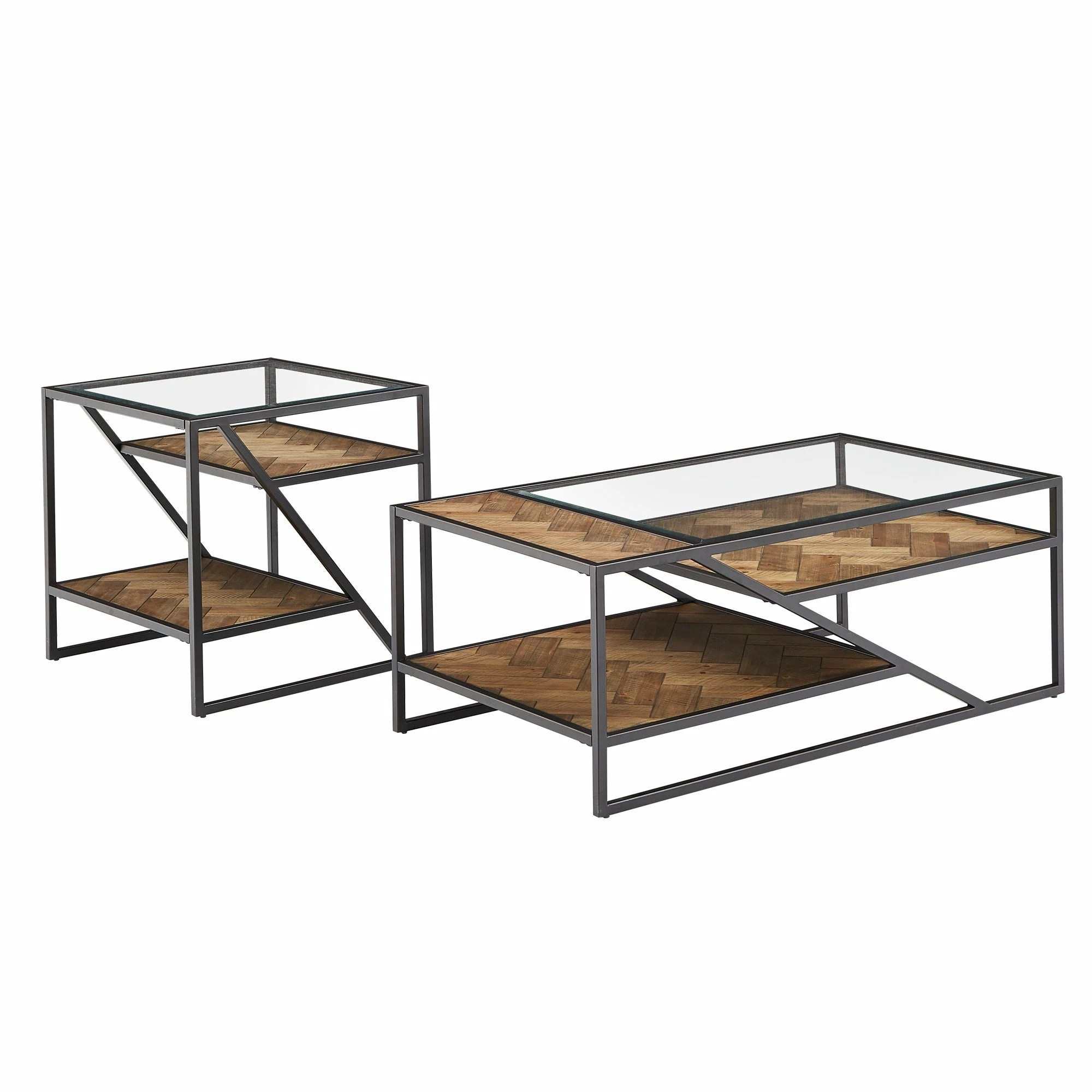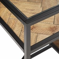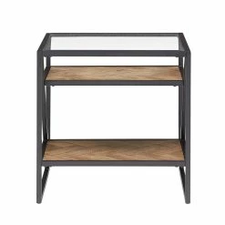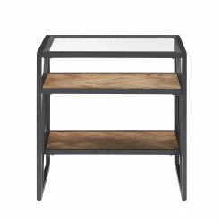 Create a bohemian aesthetic in your home with the Kita Black Metal Parquet Wood and Glass Tables by iNSPIRE Q Modern. Boasting a one-of-a-kind design, these sophisticated pieces feature beveled tempered glass table tops and herringbone patterns, all tied together with black finished frames. These unique tables work well with contemporary and eclectic themed spaces.