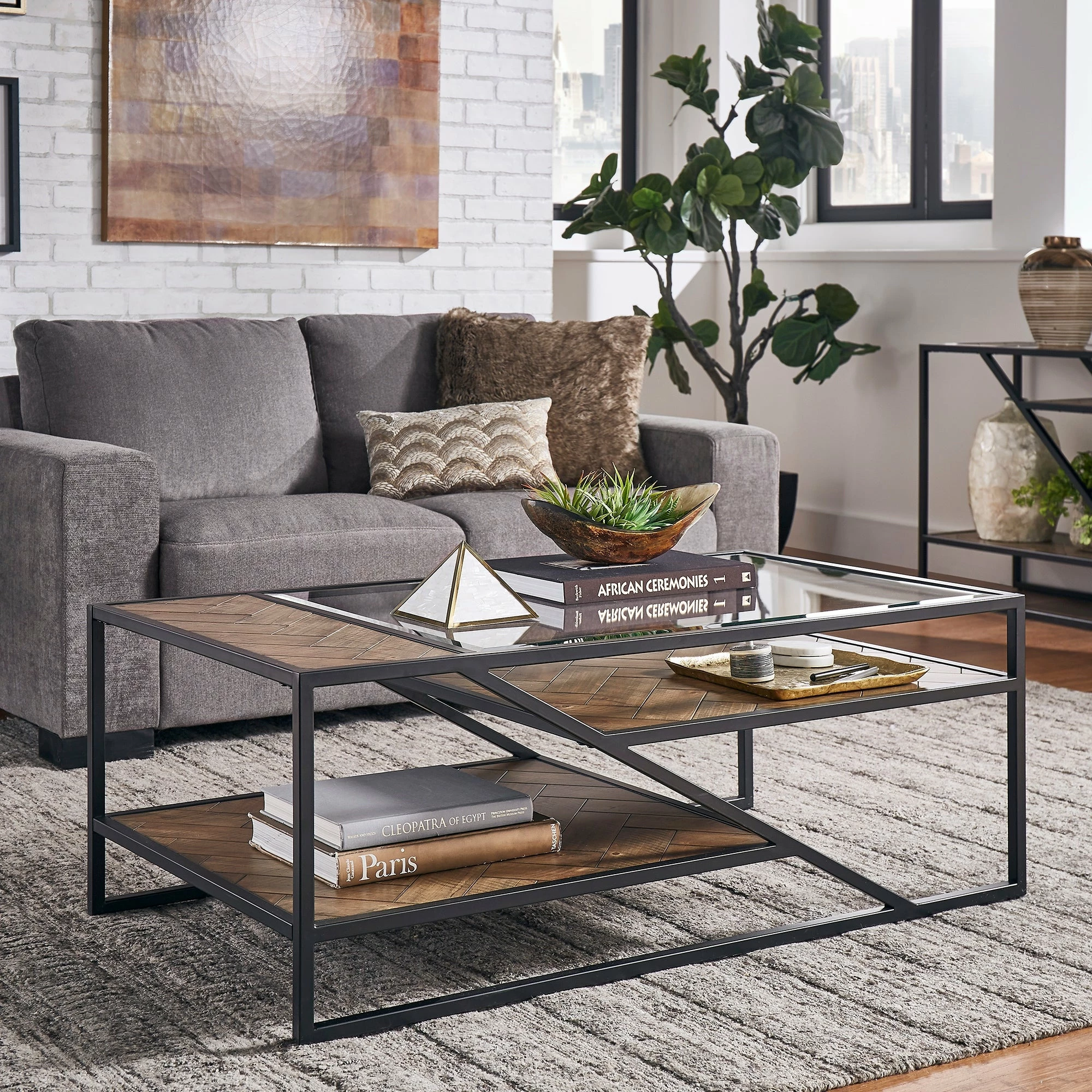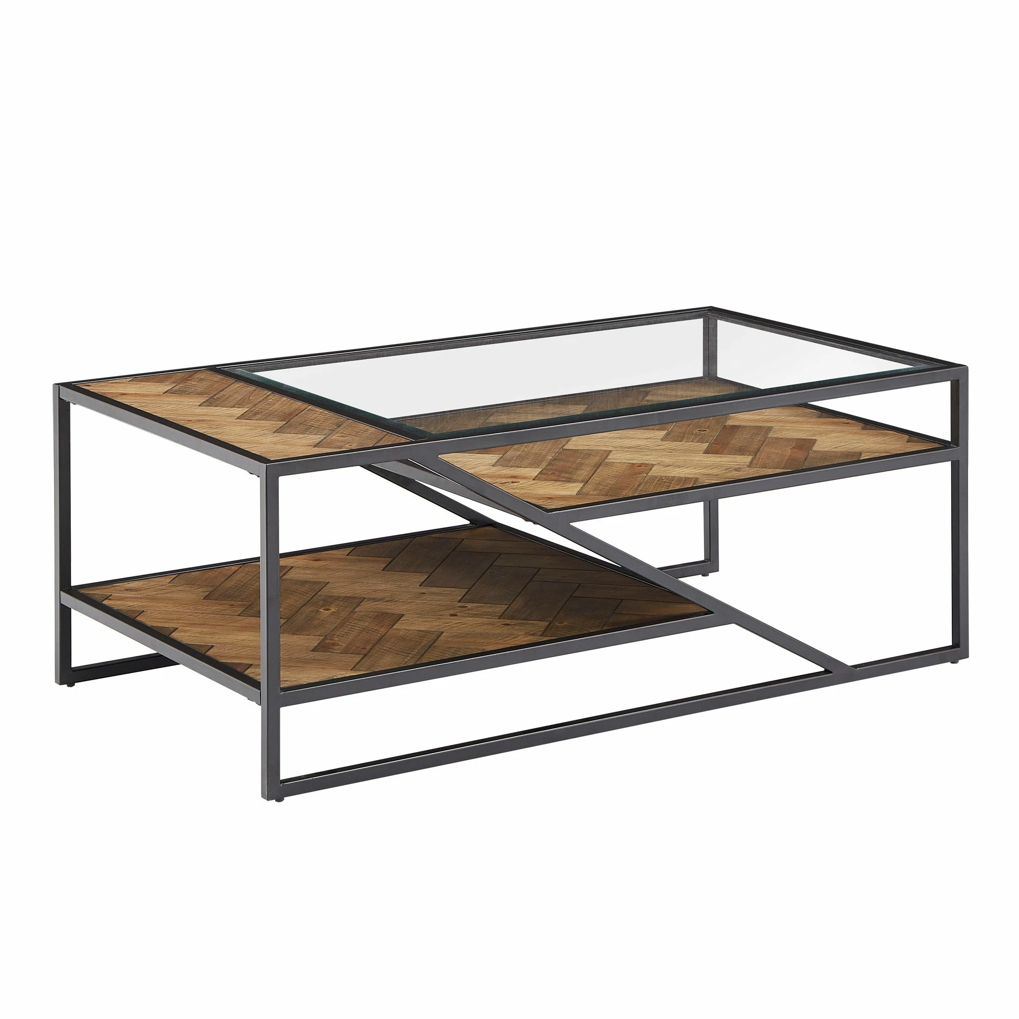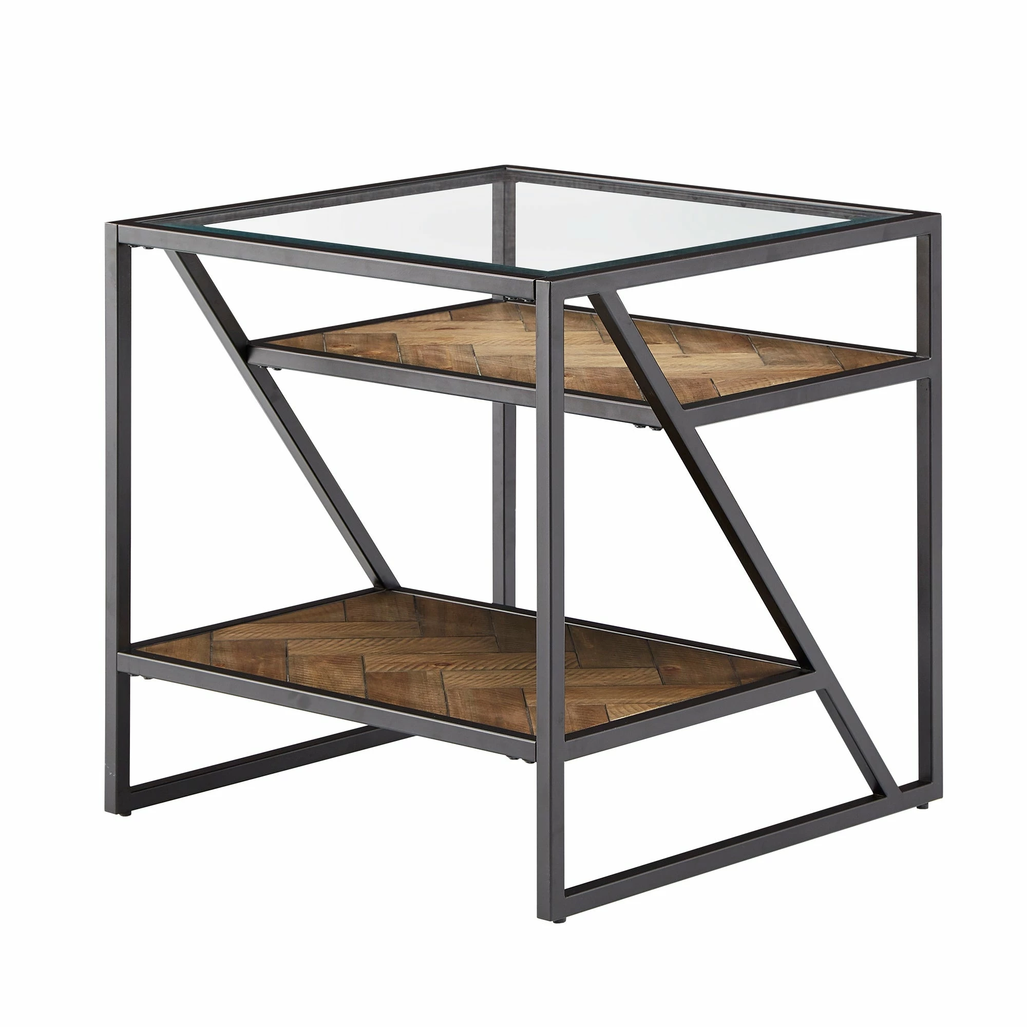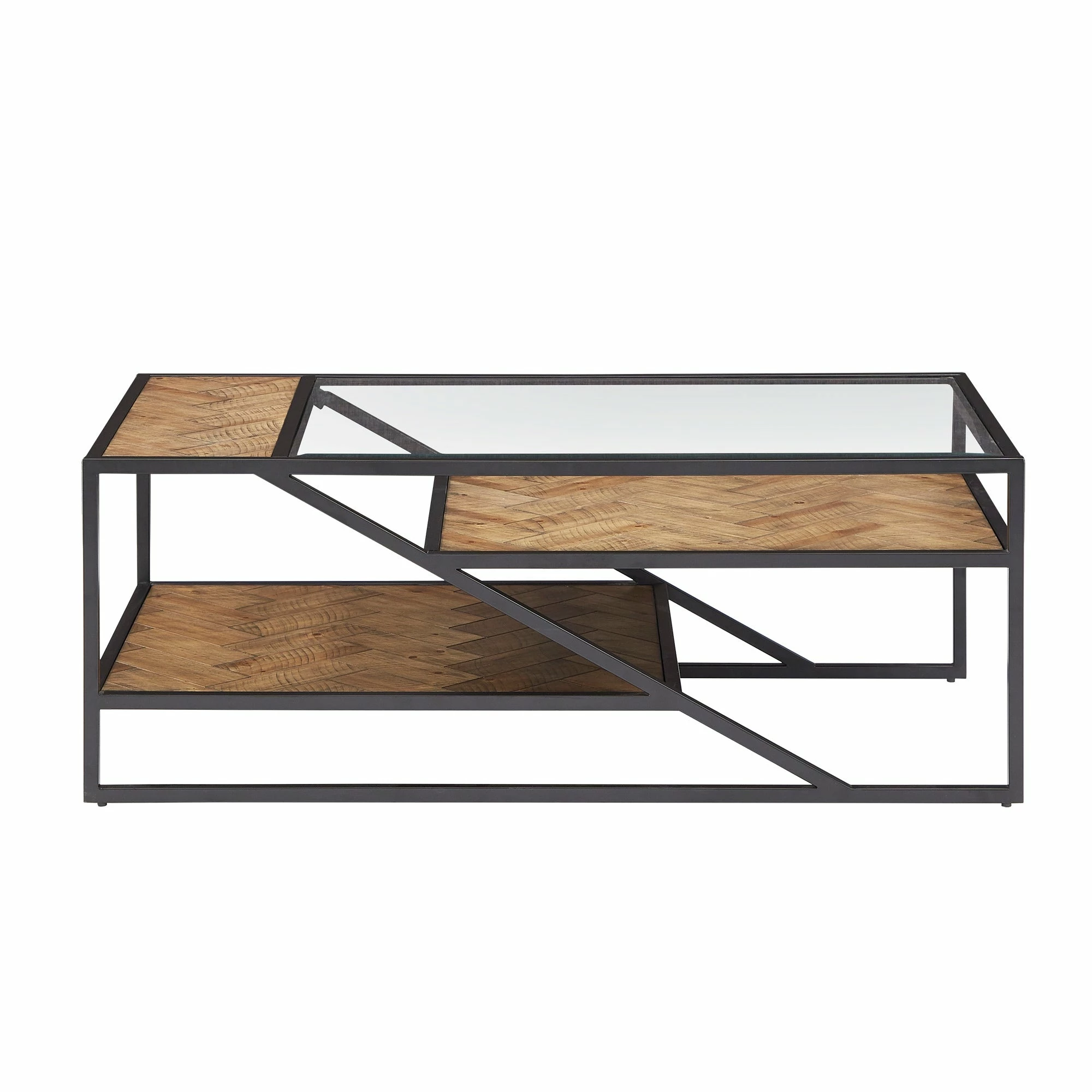 Create a bohemian aesthetic in your home with the Kita Black Metal Parquet Wood and Glass Tables by iNSPIRE Q Modern. Boasting a one-of-a-kind design, these sophisticated pieces feature beveled tempered glass table tops and herringbone patterns, all tied together with black finished frames. These unique tables work well with contemporary and eclectic themed spaces.