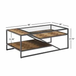 - Coffee table overall dimensions: 48 in. width x 26 in. depth x 17.75 in. height
