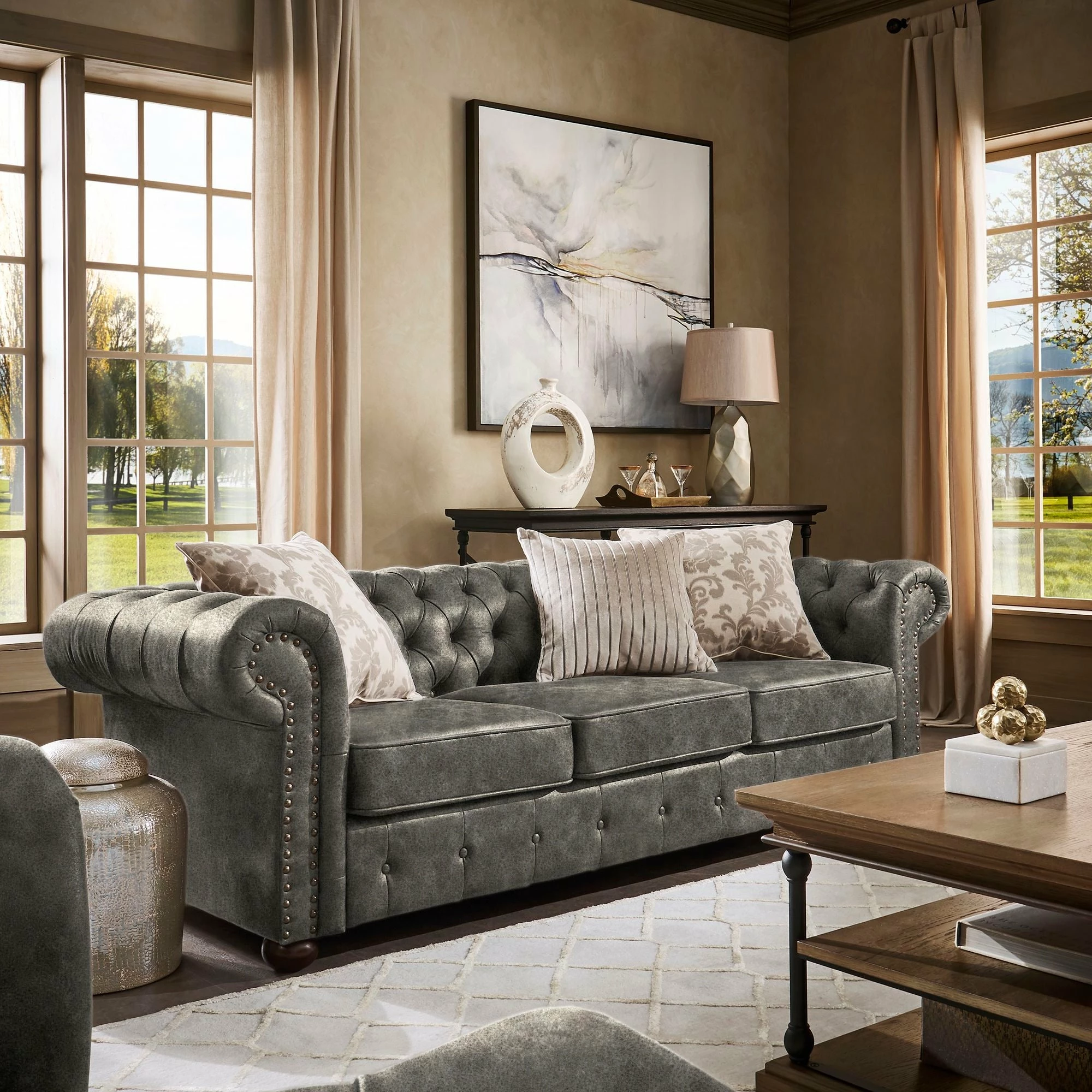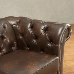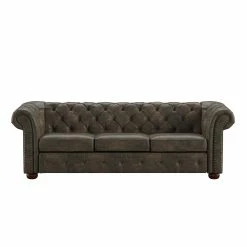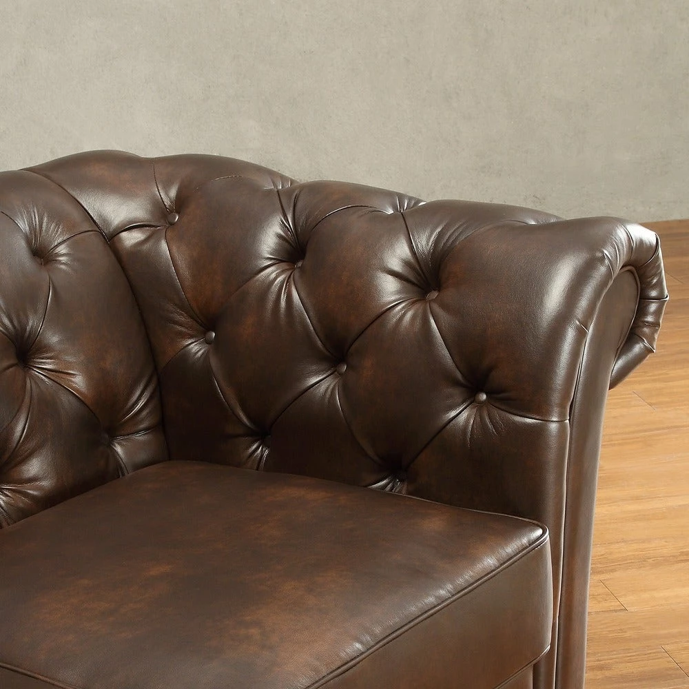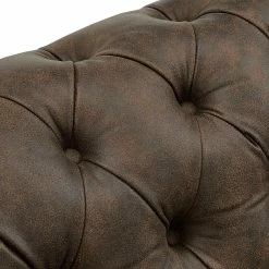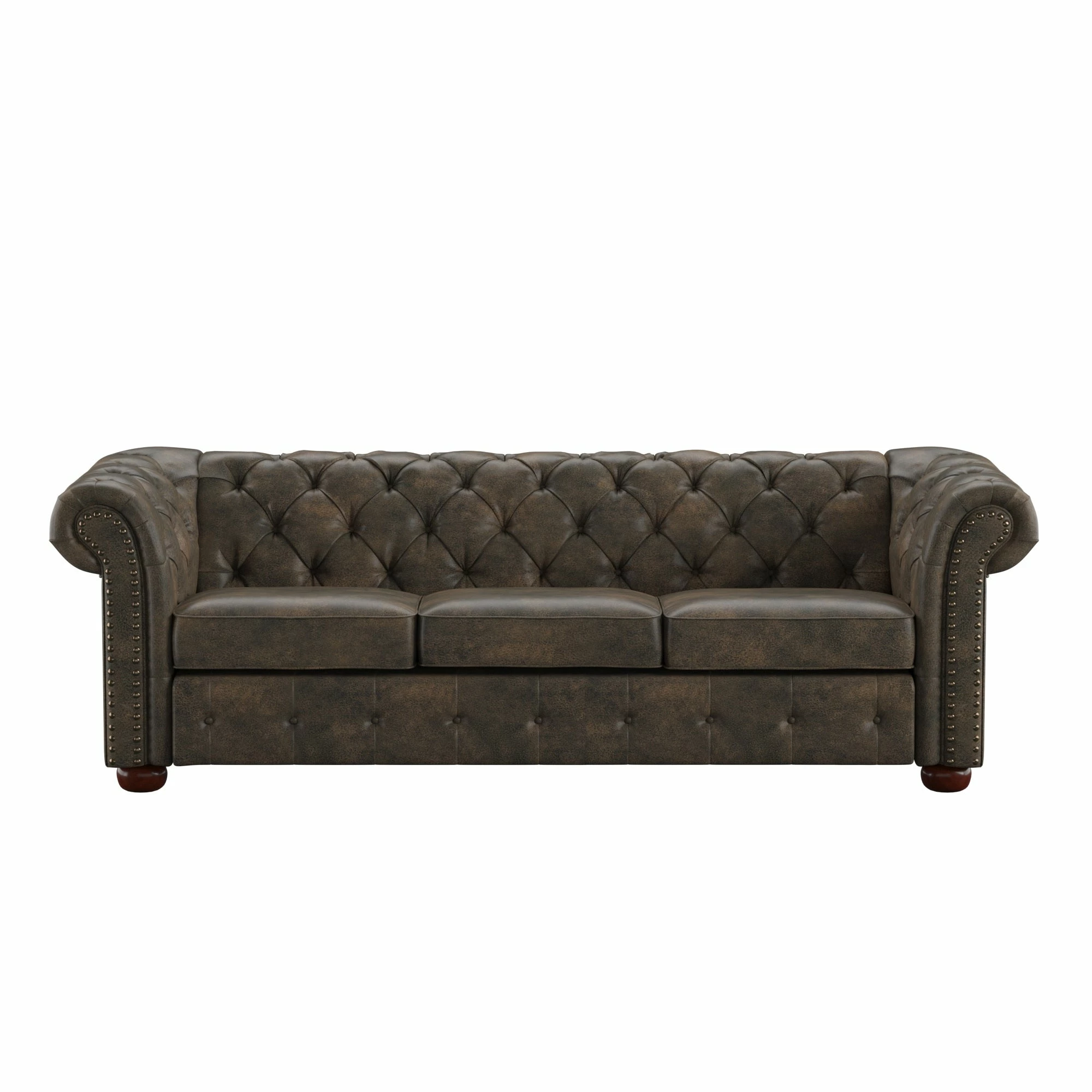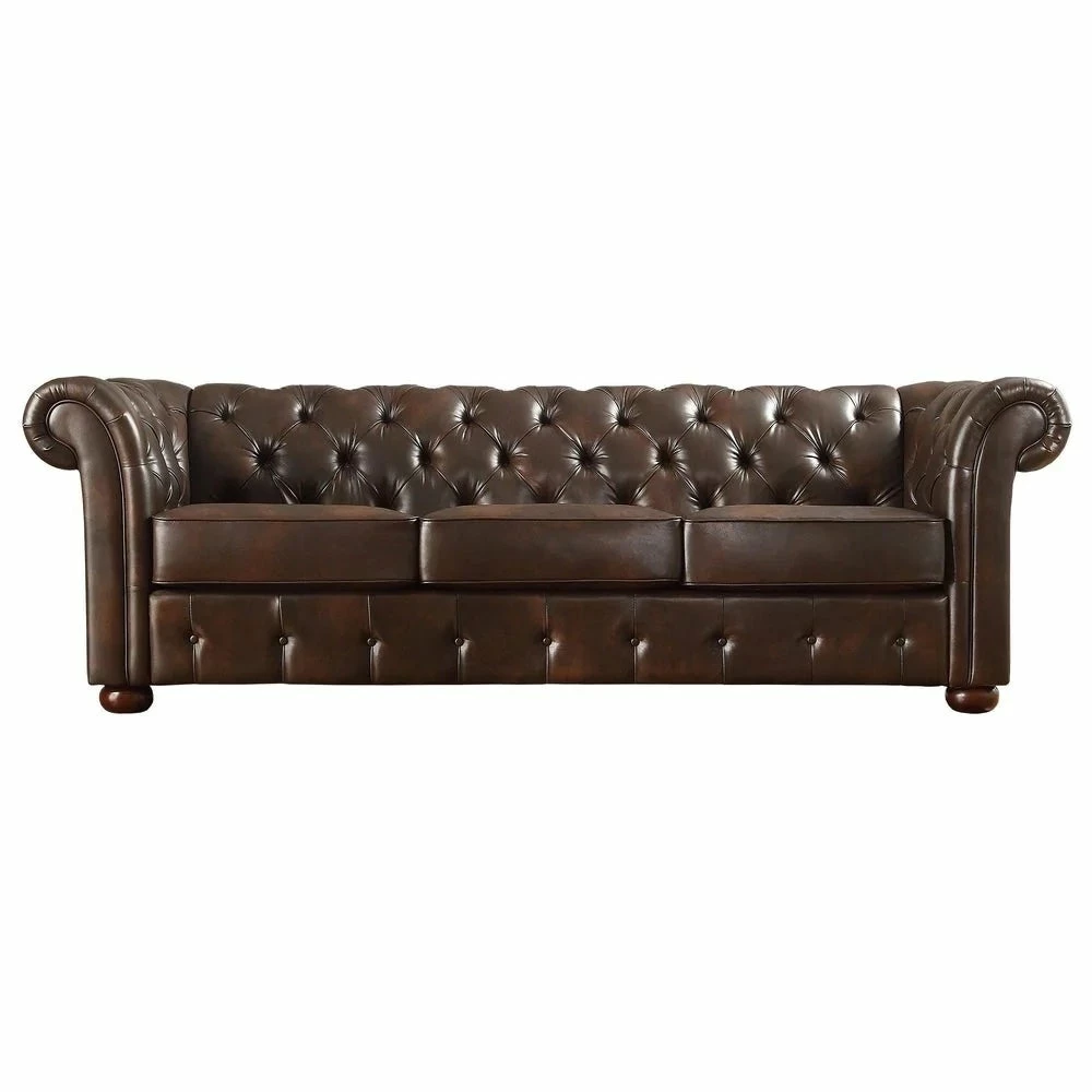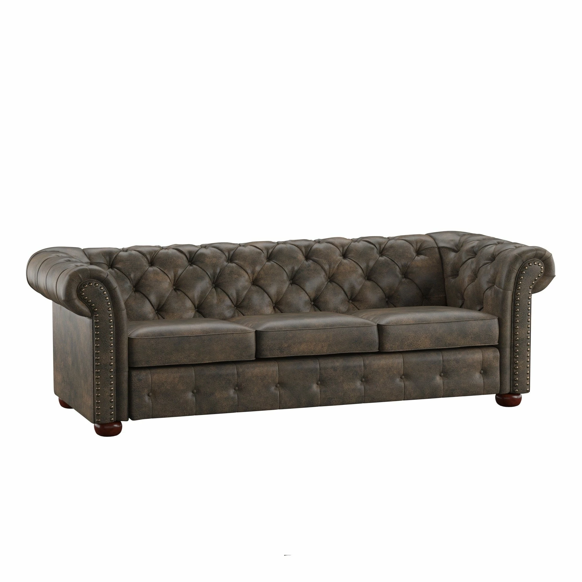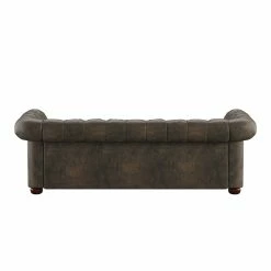 This stylish Knightsbridge brown bonded leather sofa from iNSPIRE Q Artisan is perfect for kicking back and relaxing. This grand sofa reflects a classic aesthetic that adds a distinct dose of sophistication to a spacious living room. The button tufting, rolled arms, and brown bonded leather or microfiber upholstery lend a look of elegance and is a sure complement to traditional design styles.