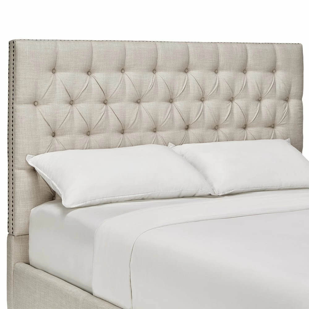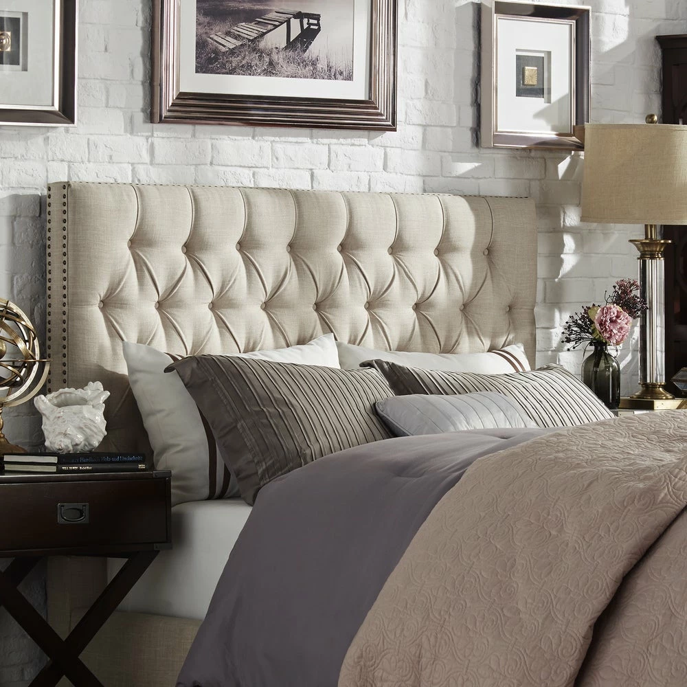 Fashion a dreamy escape that oozes style with this headboard by iNSPIRE Q Artisan. Foam padding and linen upholstery create a soft spot for your back and head, while button tufting makes this headboard stand out. A nailhead trim secures the fabric and rounds out the sophisticated look.
