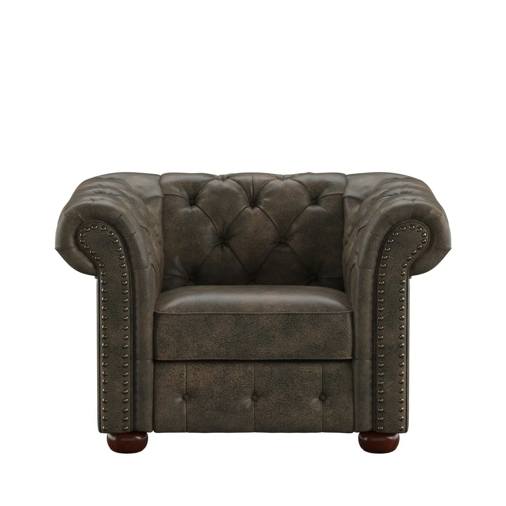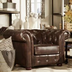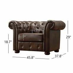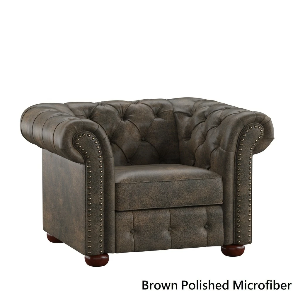 Add graceful seating to you home with the Knightsbridge Chesterfield collection from iNSPIRE Q® Artisan. Showcasing tufted back and rolled arms in bonded leather or microfiber, along with bun feet finished in dark brown, this elegant padded seat sofa can provide plenty of support and comfort in style.