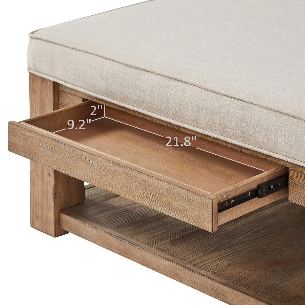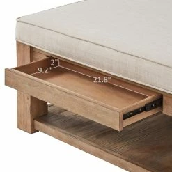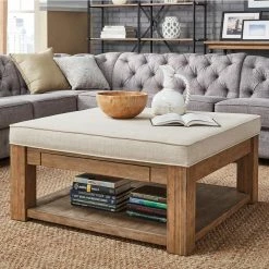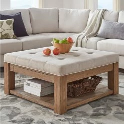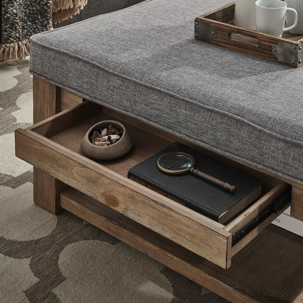 This Lennon ottoman coffee table is sure to be an essential for any home. You’ll have plenty of open storage below, as well as two pull-out drawers. Vintage-inspired details like an antique pine finish deliver rustic elegance. Available in several different upholstery options, so this piece can match your space.