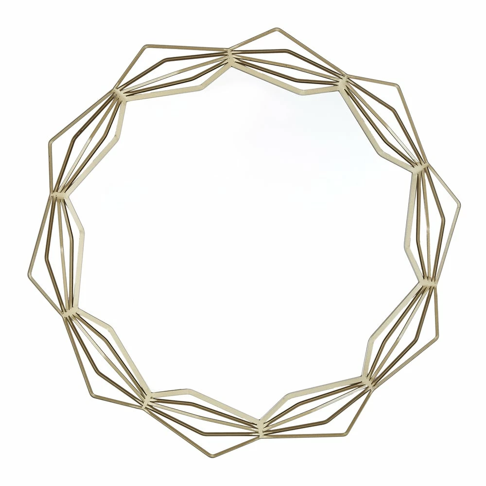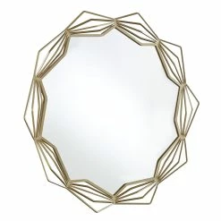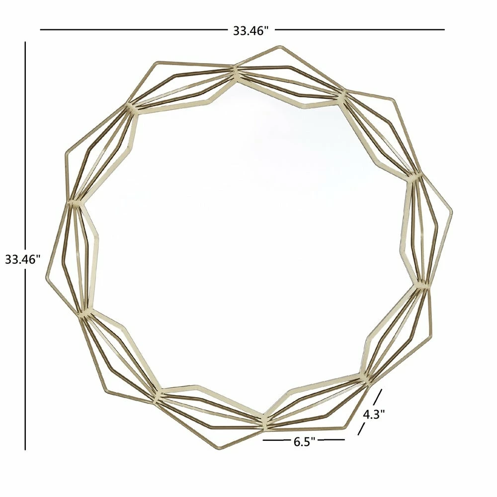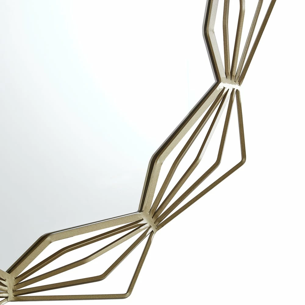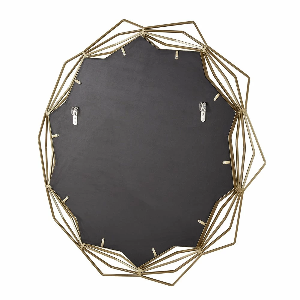 Beyond ordinary, this Lodo Wall Mirror with Star Geometric Metal Frame by iNSPIRE Q Modern, adds major style points to any room in your home. The unique geometrically shaped frame creates a star shaped boarder, while the gold finish metal material adds sharp detail to this dainty styled piece.