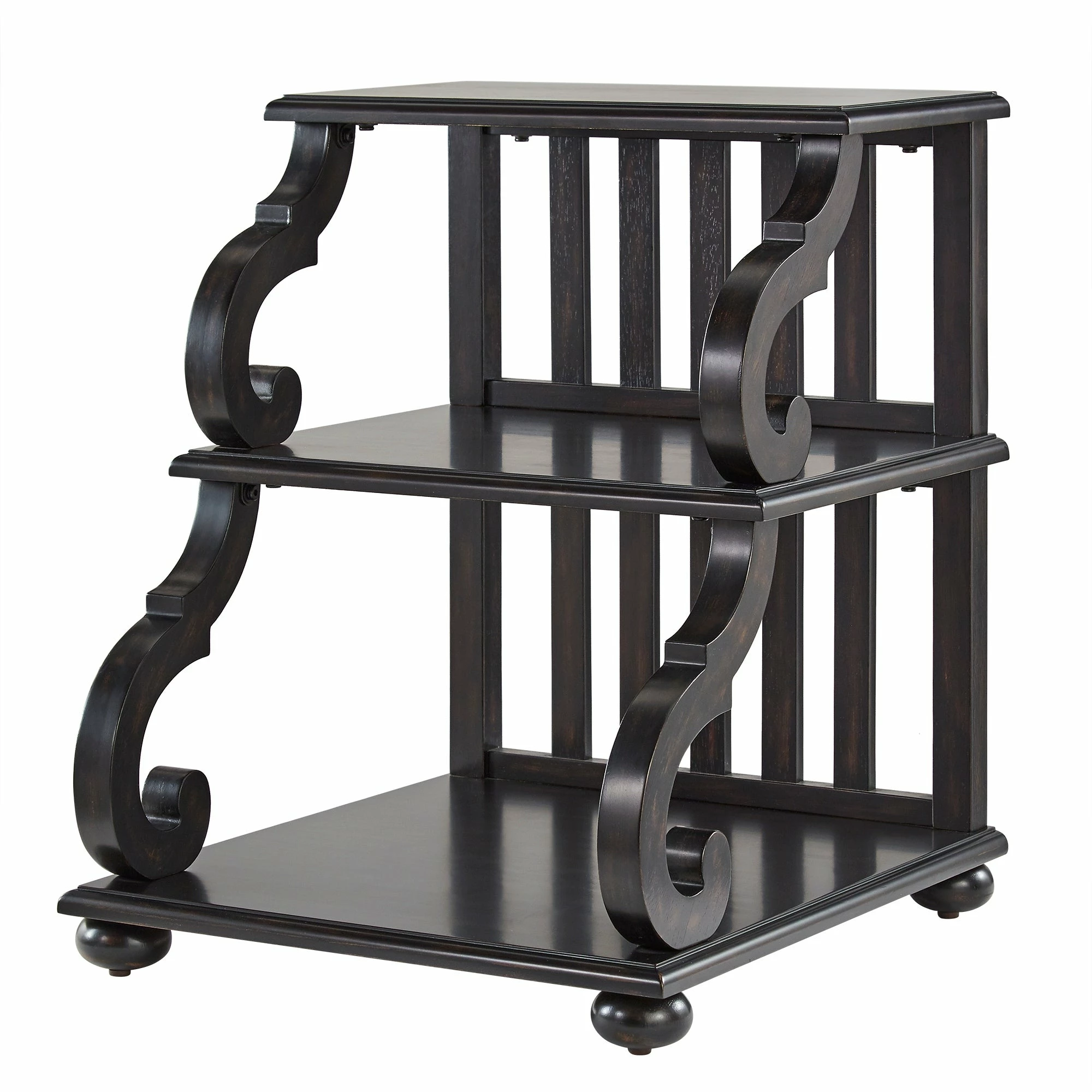 Give your living or family room an elegant and traditional flair with this Lorriane end table from iNSPIRE Q® Classic. The graceful wood scroll work and visible wood grain create rustic touch that’s perfect for any country, vintage, or antique style. With a tiered design, you’ll have plenty of space for books, magazines, remote controls, decorative items, and more. Available in several finishes, so you can easily pair this end table with any existing or preferred color scheme. Enjoy this beautiful piece in your home.