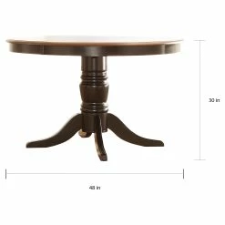 - Round table (overall): 48 inches long x 48 inches wide x 30 inches high