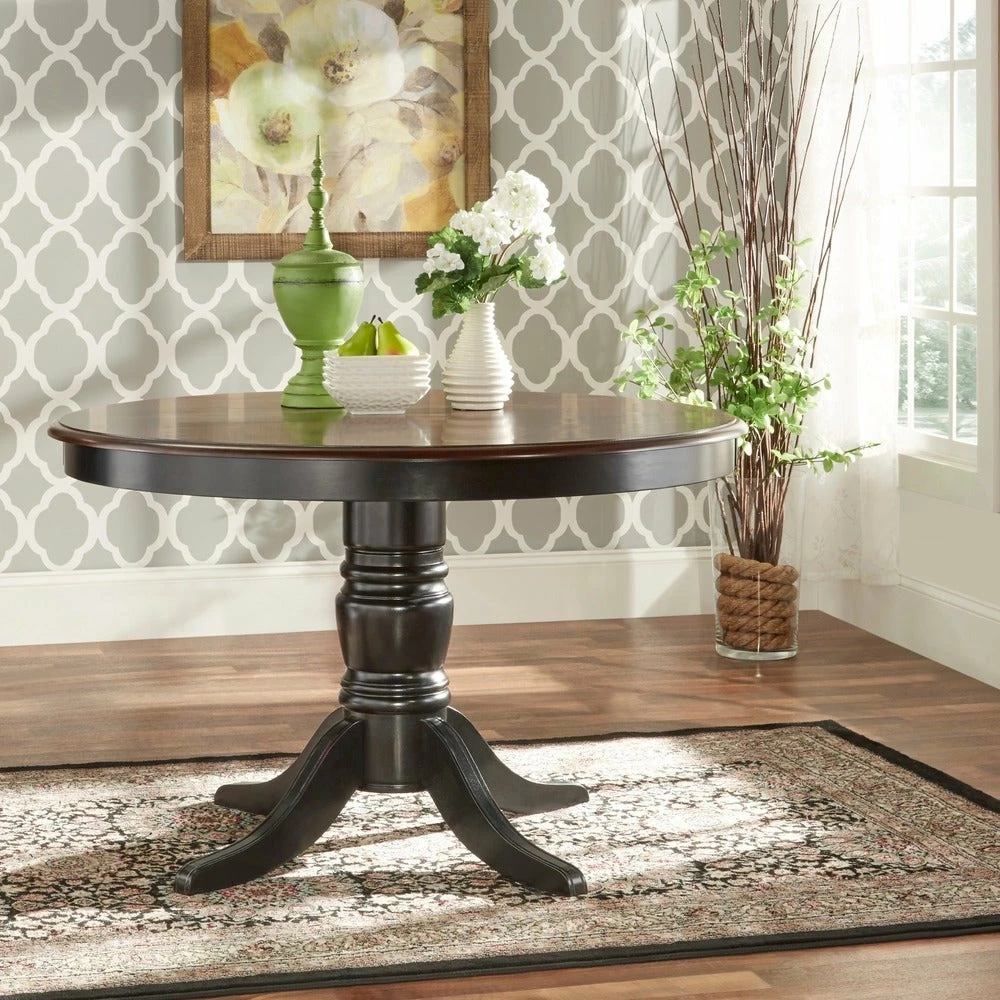 Update the look of your dining room with this country Mackenzie dining table from iNSPIRE Q® Classic. This dining table is constructed of solid Asian rubberwood, and makes a solid and durable addition to even the busiest homes. The compact size makes it perfect for use as a dining table, or place it in other areas for a decorative yet functional touch. This dining table is a perfect place to gather family and friends to share meals. The four-foot diameter makes this table great for small dining rooms.
